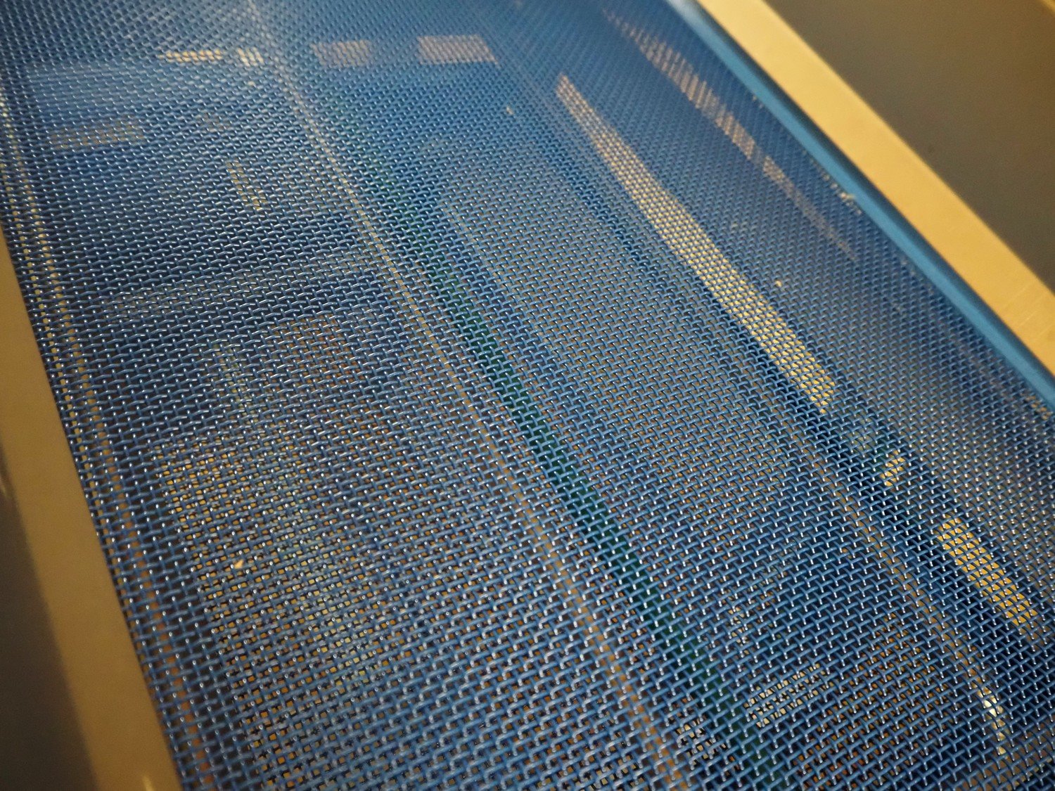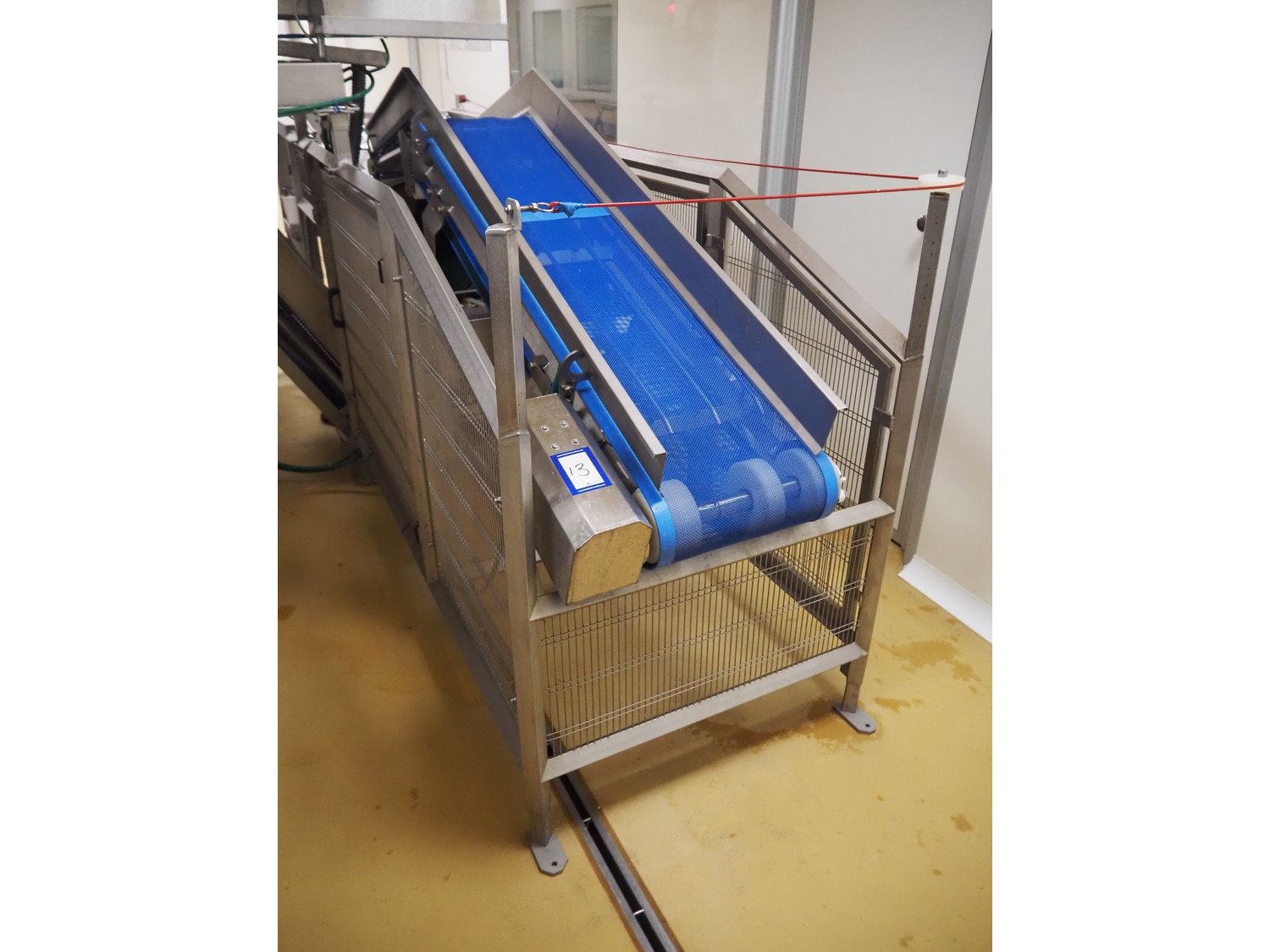 Cosmo Food Machinery s.r.l. transport belt, plastic mesh belt, belt width: 400 mm, total dimensions: 2450 mm x 900 mm x 1500 mm. Kavel locatie: Via Pezze Lunghe di Sotto 11, 36026 Pojana Maggiore, Italië