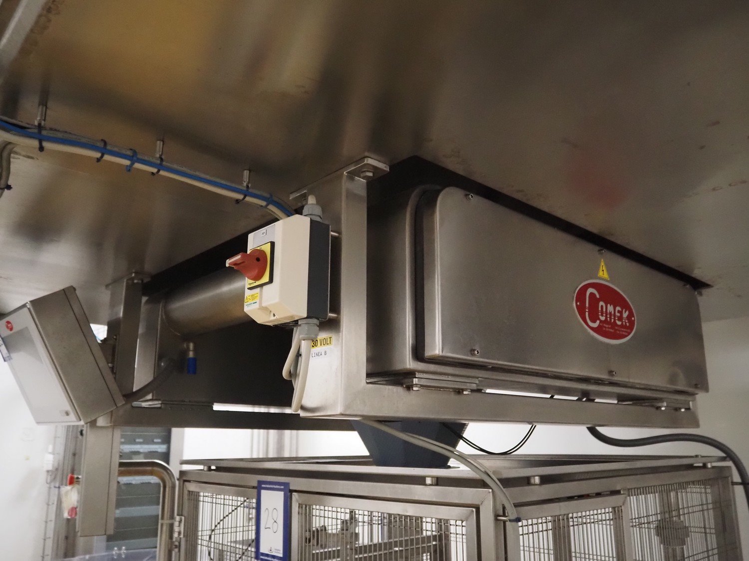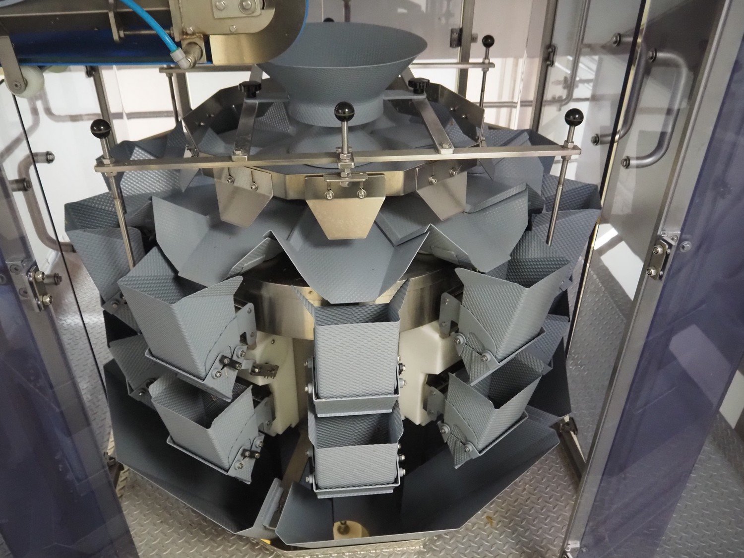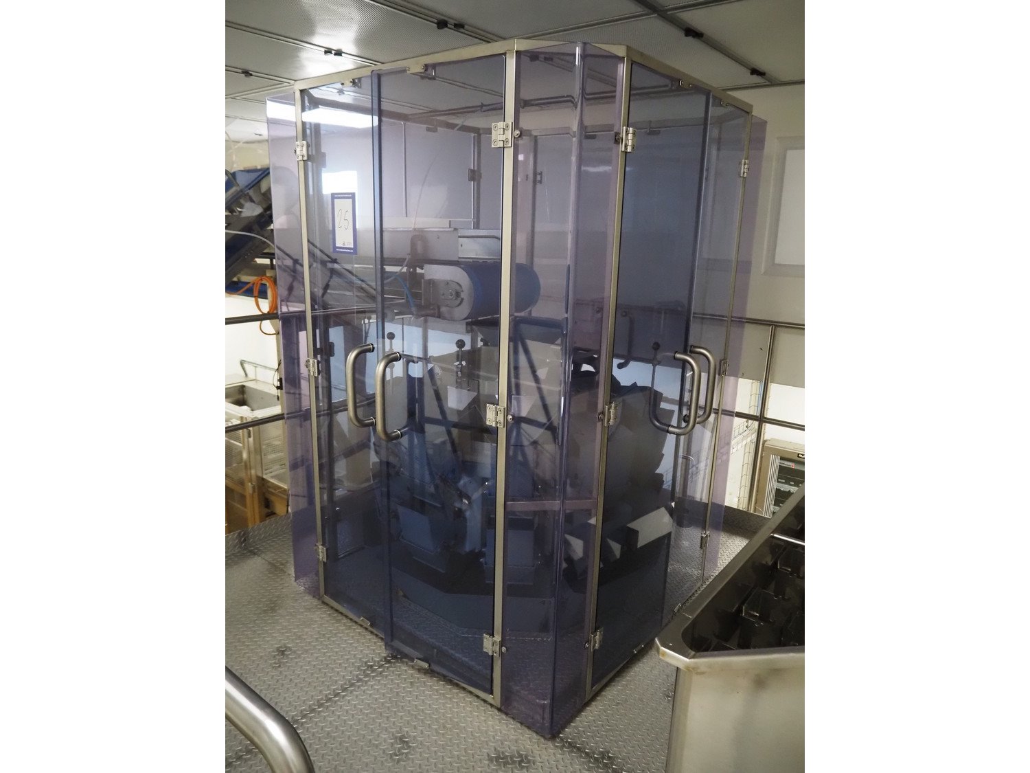 Comek 10-heads multihead weigher, model: CK10ST, type: PESATRICE MULTITESTA, serial number: 0545, year of construction: 2015, 120 V, 50-60 Hz, 2 kW, 8 A, weight: 500 kg, dimensions: 1400 mm x 1350 mm x 2750 mm. Including s/s tub for washing bins. Voor meer informatie klik op de volgende links: MANUALE_COMPLETO_MULTITESTA_0545.pdf MANUALE_PANNELLO_BILANCIA_MHW_PC_FCT_0545.pdf Kavel locatie: Via Pezze Lunghe di Sotto 11, 36026 Pojana Maggiore, Italië