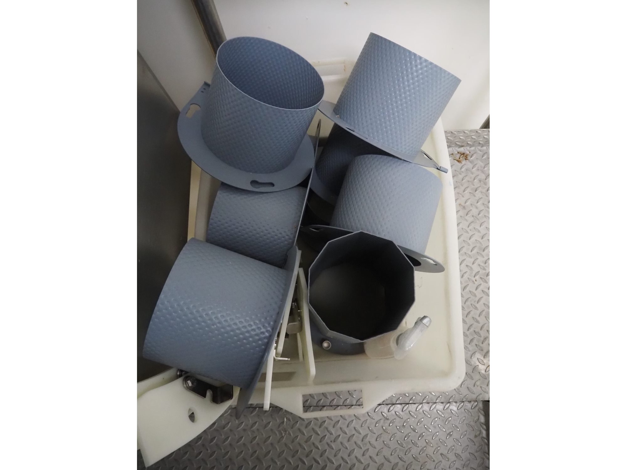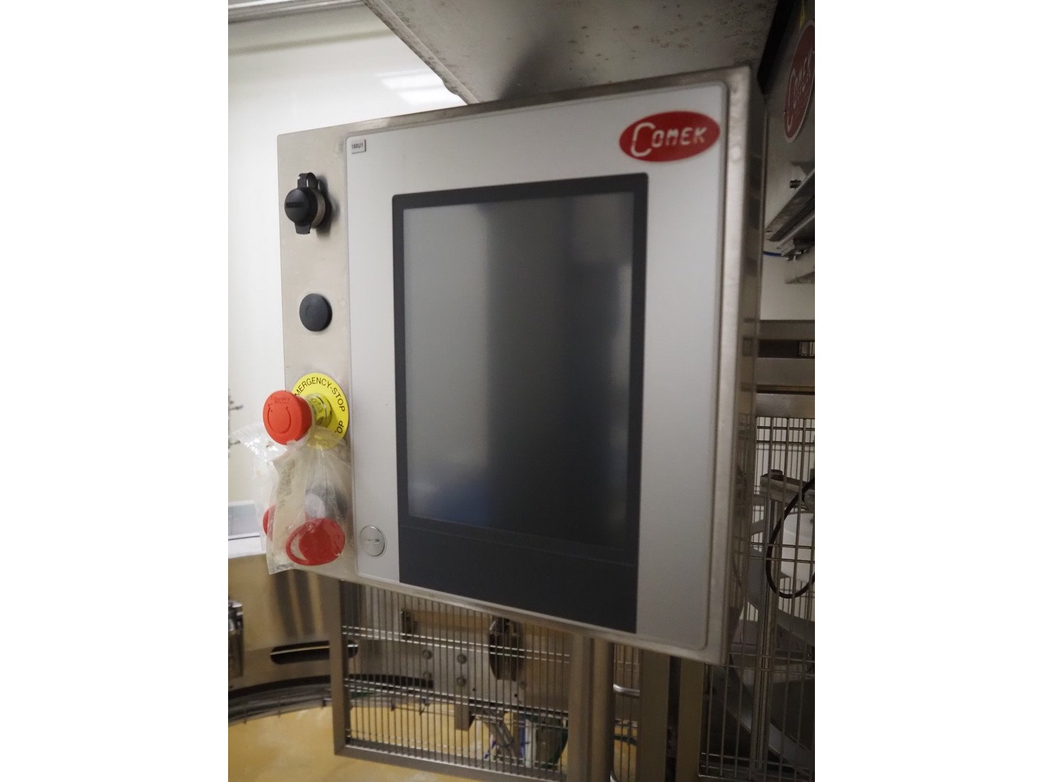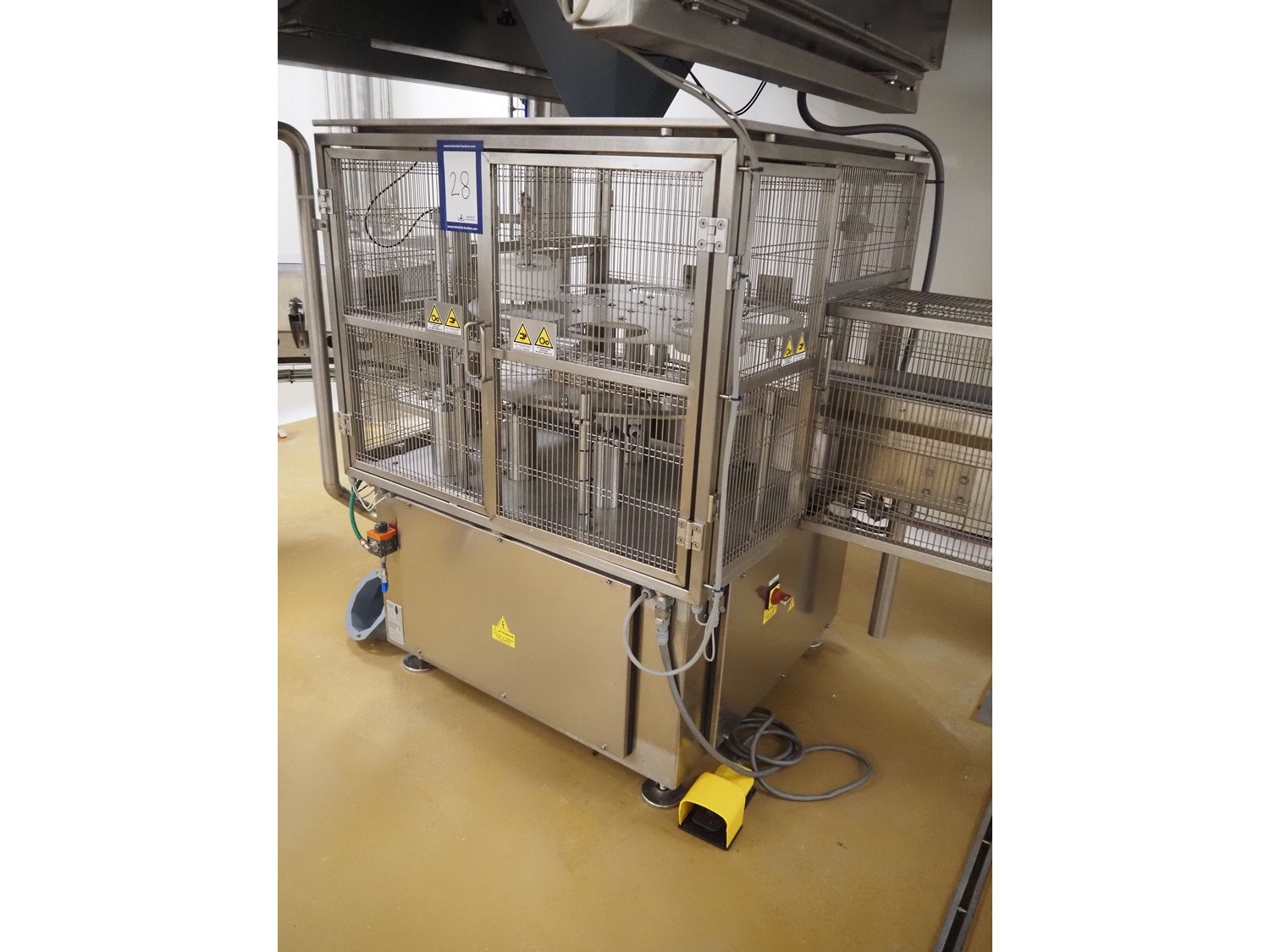 Comek filling machine with infeed- and outfeed belt, model: SIST. ROTATIVO A PASSO, type: RIEMPITRICE, serial number: 0547, year of construction: 2015, 400 V, 3 Ph, 50 Hz, 10 A, 4 kW, 8 stations, diameter cups: 200 mm, total dimensions filling machine: 1200 mm x 1300 mm x 1800 mm, total length belt: 8000 mm. Including plastic bin with parts. Voor meer informatie klik op de volgende link: MANUALE_SISTEMA_ROTATIVO_0547.pdf Kavel locatie: Via Pezze Lunghe di Sotto 11, 36026 Pojana Maggiore, Italië