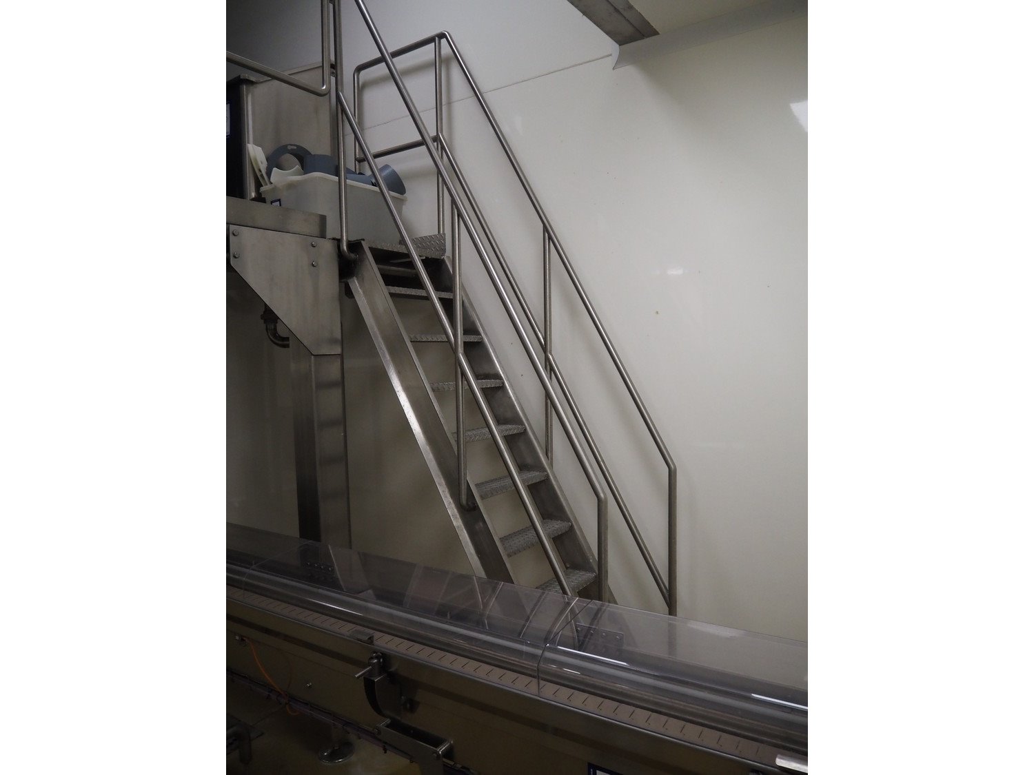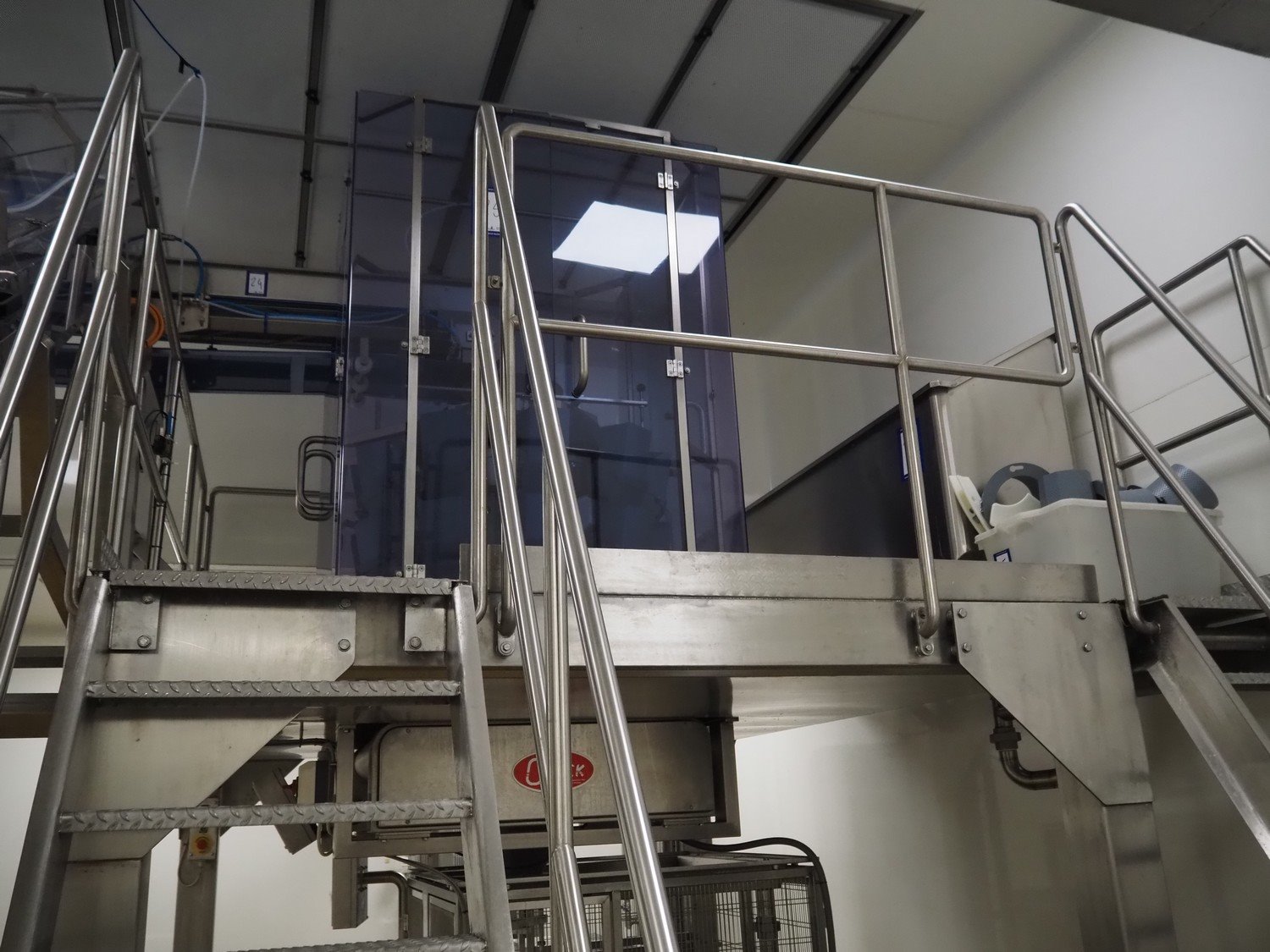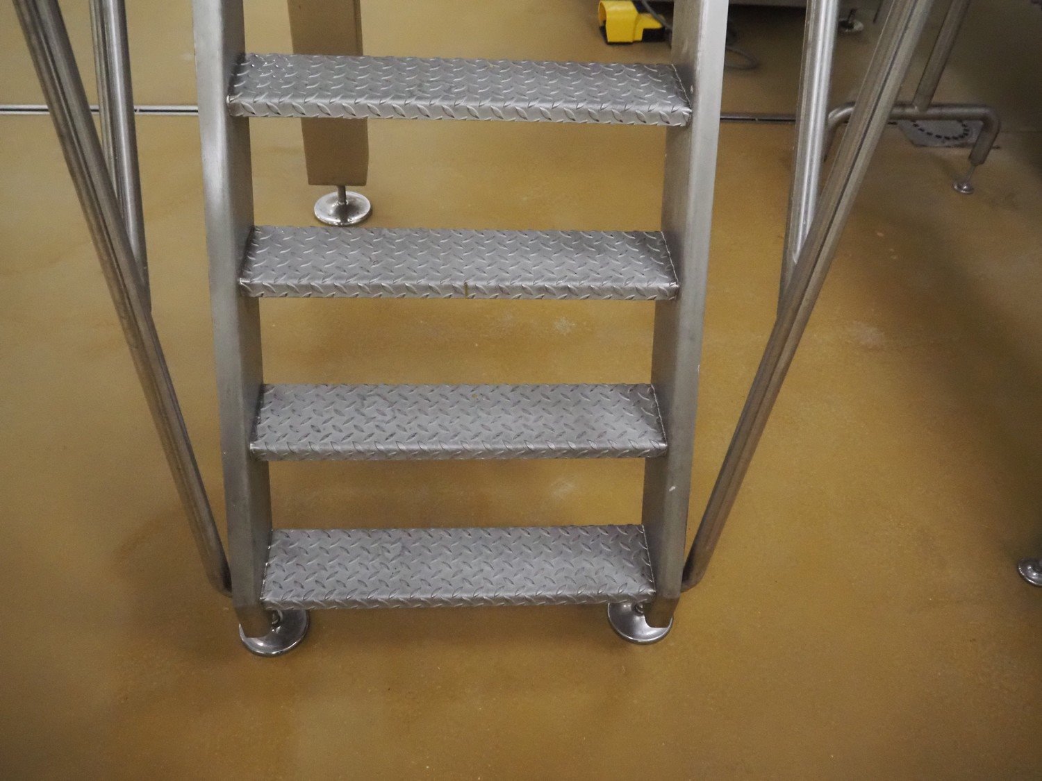 S/s platform with stairs, working height: 2300 mm, total dimensions: 4200 mm x 2300 mm x 3350 mm. Kavel locatie: Via Pezze Lunghe di Sotto 11, 36026 Pojana Maggiore, Italië