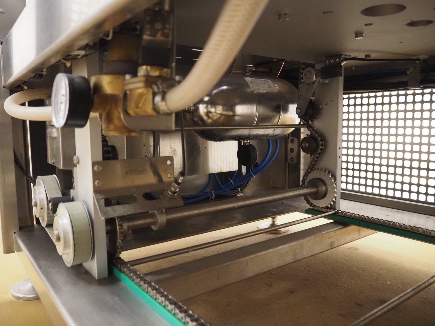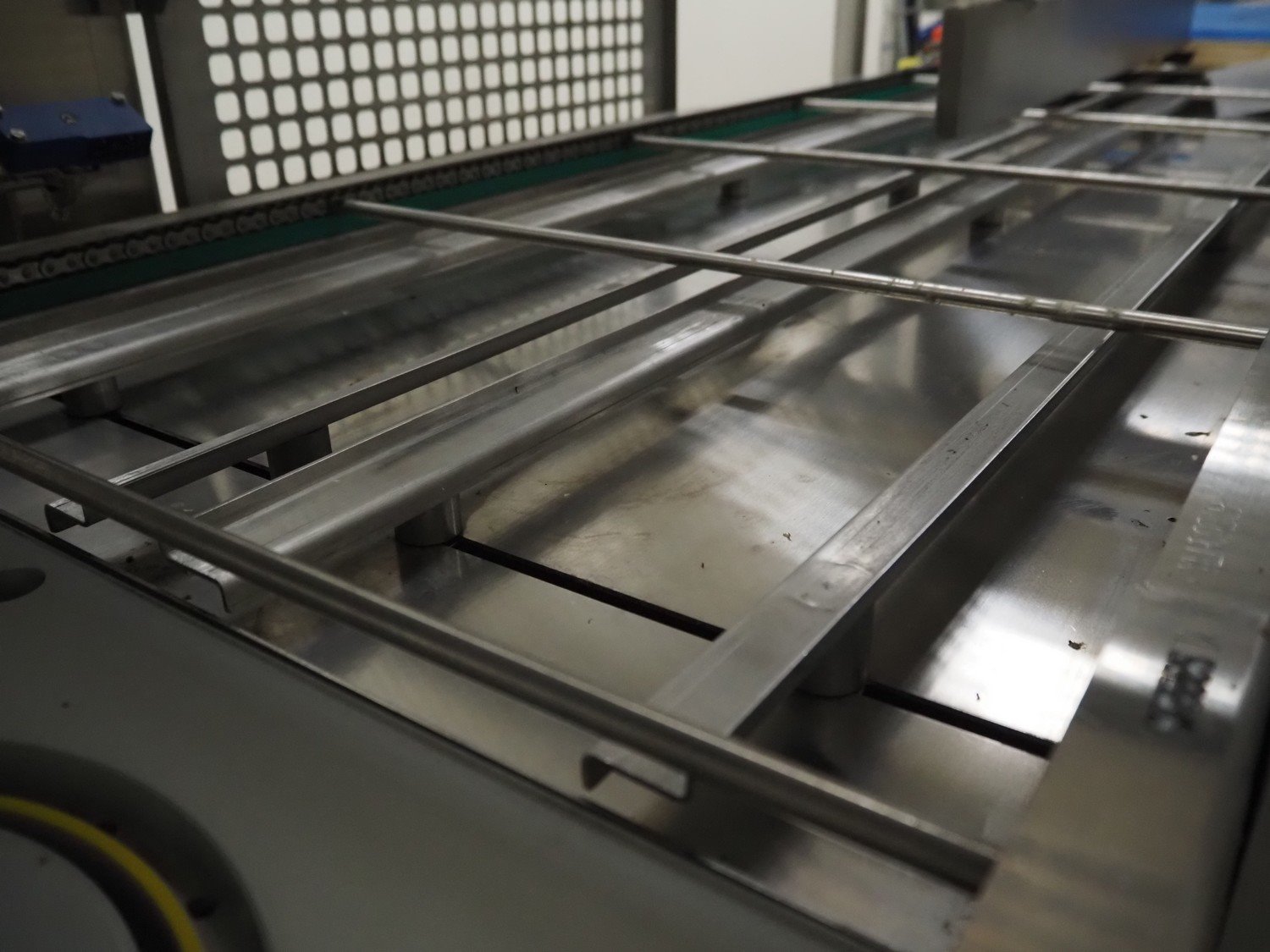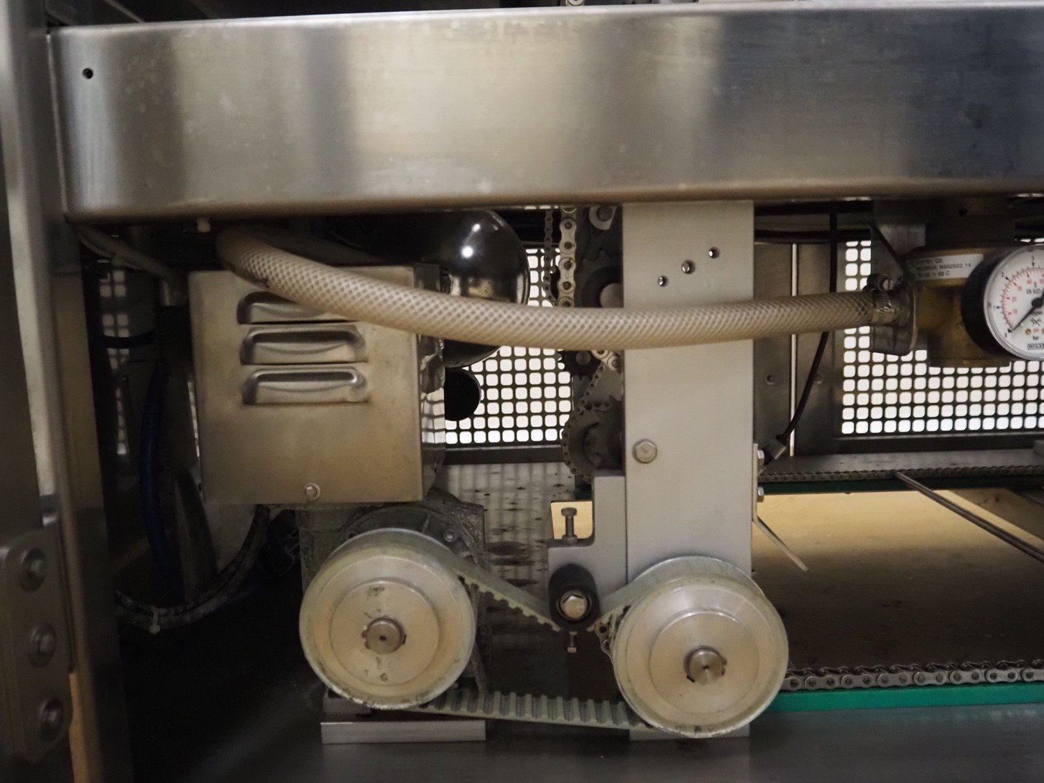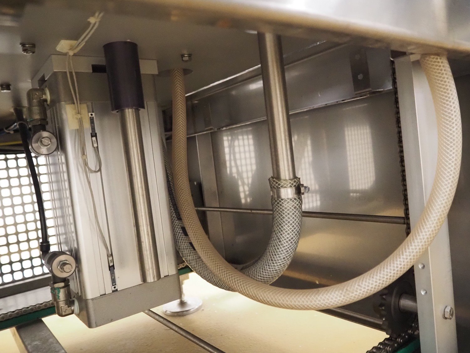 Italian Pack Yang s.r.l. traysealer, type: POLVR300RI2U2MA21BFIFpv5g, serial number: 149108, year of construction: 2014, 400 V, 3 Ph, 50 Hz, 12.1 kW, weight: 900 kg, film width: 490 mm, diameter dye: (2x) 200 mm, plastic outfeed belt, belt width: 550 mm, total dimensions: 4050 mm x 1000 mm x 1750 mm. Voor meer informatie klik op de volgende link: MANUALE_CONFEZIONATRICE_POLARIS_VAC_REVERSE_COMEK_149108.pdf Kavel locatie: Via Pezze Lunghe di Sotto 11, 36026 Pojana Maggiore, Italië