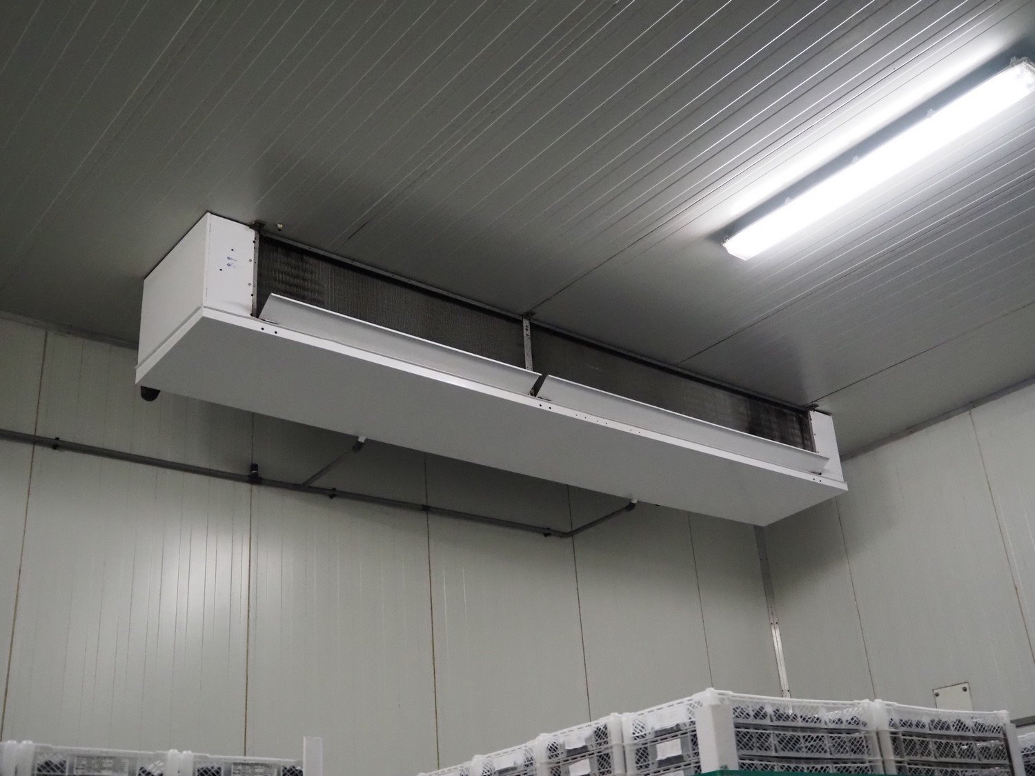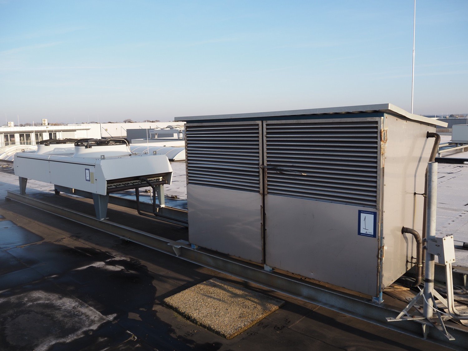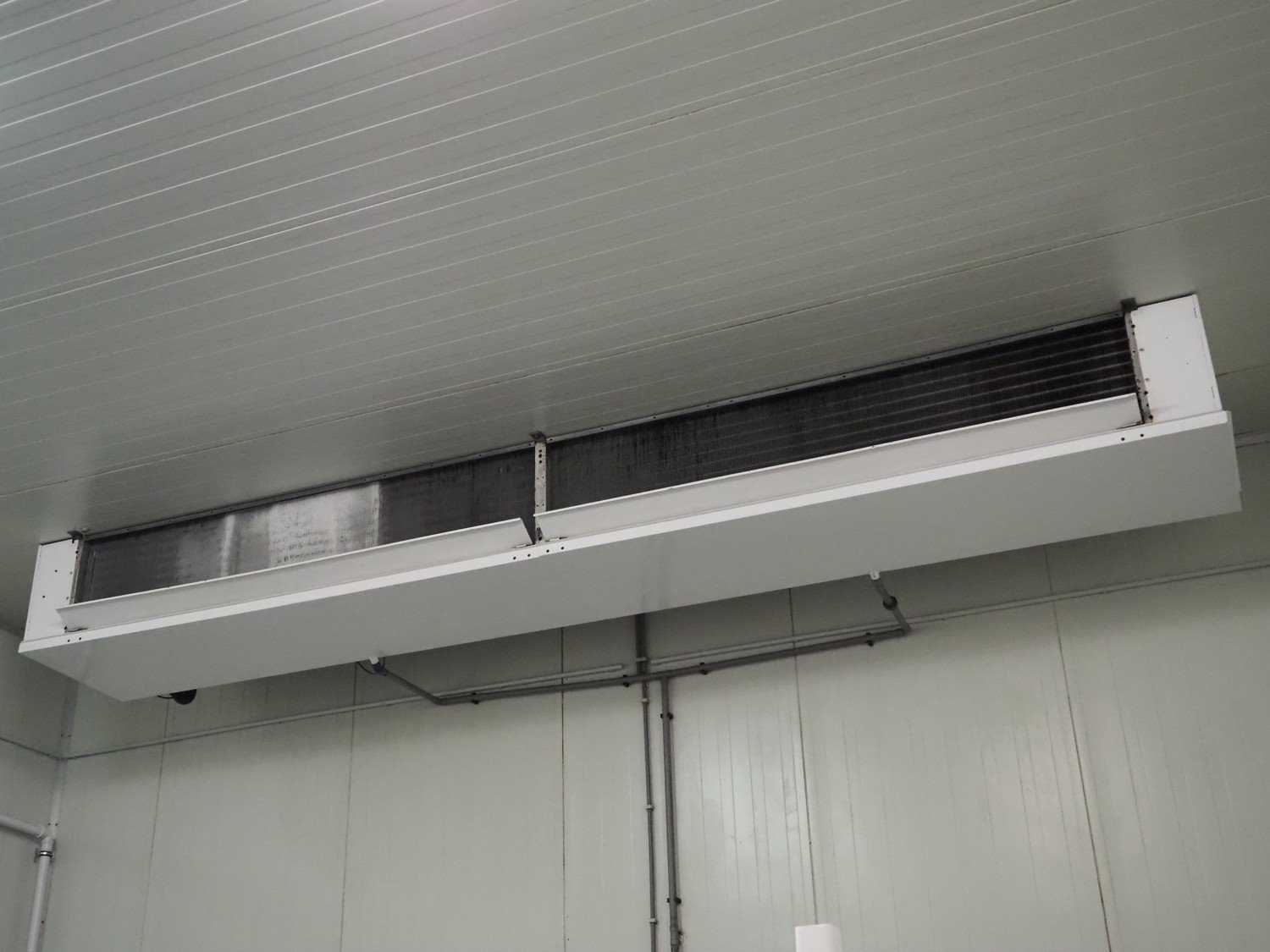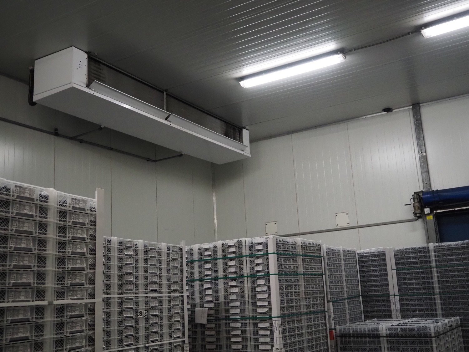 Complete cold store consisting of: 6 compartments, dimensions compartments: (2x) 7000 mm x 12500 mm x 5000 mm, (1x) 4500 mm x 6800 mm x 5000 mm and (3x) 2500 mm x 4500 mm x 5000 mm, total dimensions coldstore: 15000 mm x 17200 mm x 5300 mm, 6 pcs. Salco refrigerated sliding doors, dimensions: (3x) 3100 mm x 3050 mm / thickness: 120 mm and (3x) 1500 mm x 4100 mm / thickness: 120 mm, 2 pcs. Hӧrmann electric shutter doors, type: V5015SE, year of construction: 2005, dimensions: (2x) 3000 mm x 3000 mm, 9 pcs. evaporators, brands: Güntner / Helpman and ECO, Bock compressor rack with 2 cooling compressor, type: (1x) HGX4/650-4 S, number: AG04695-008, year of construction: 2000, capacity: 56.6 m³ per hour and (1x) HGX5/830-4 S, number: AG03608-006, year of construction: 2000, capacity: 72.2 m³ per hour, refrigerant: R404A, total dimensions compressor rack: 2350 mm x 1400 mm x 1500 mm, Helpman roof condenser, 2 fans, dimensions: 4200 mm x 1300 mm x 1300 mm, Switch cabinet for complete cooling installation. Compressor rack / roof condenser need to be removed by crane. Kavel locatie: Ferdinand-Porsche-Straße 7, 52525 Heinsberg, Duitsland