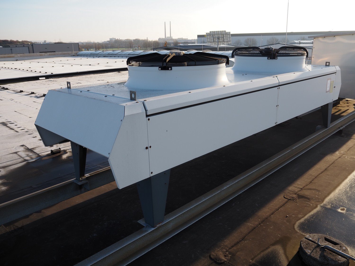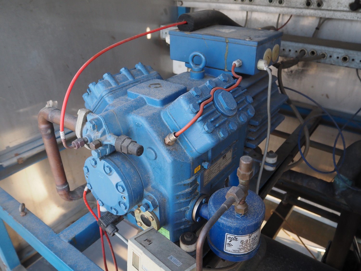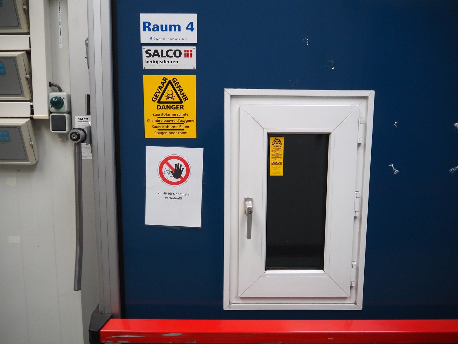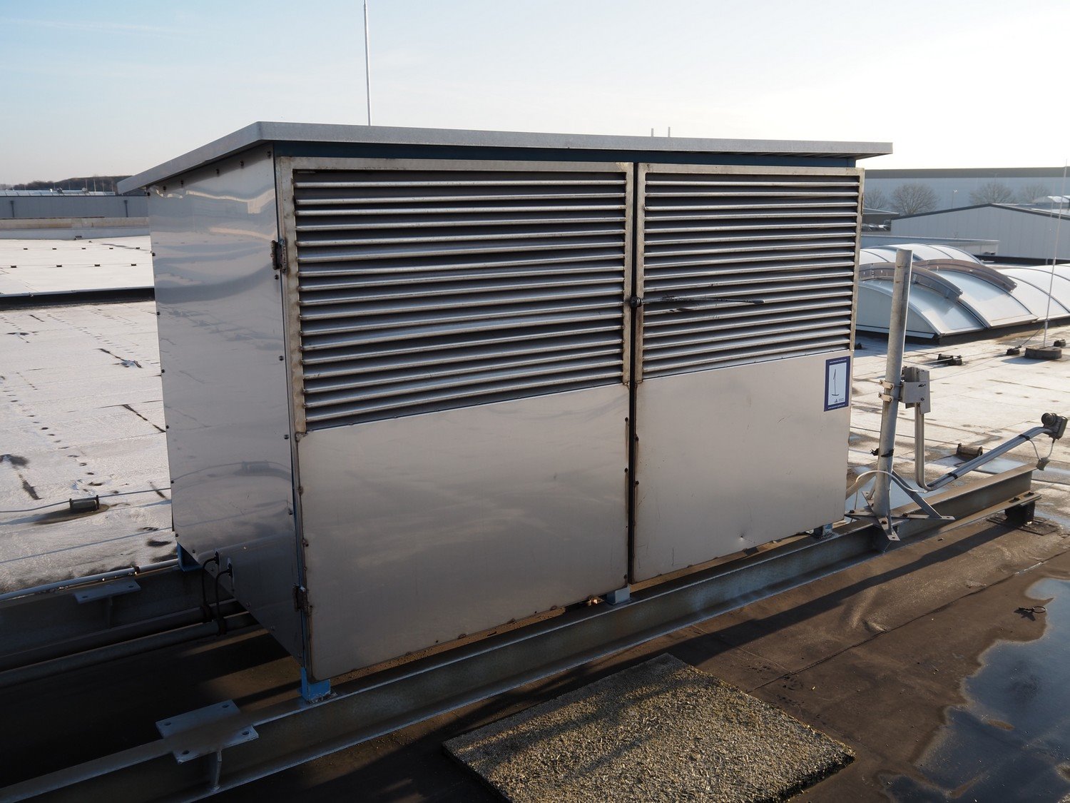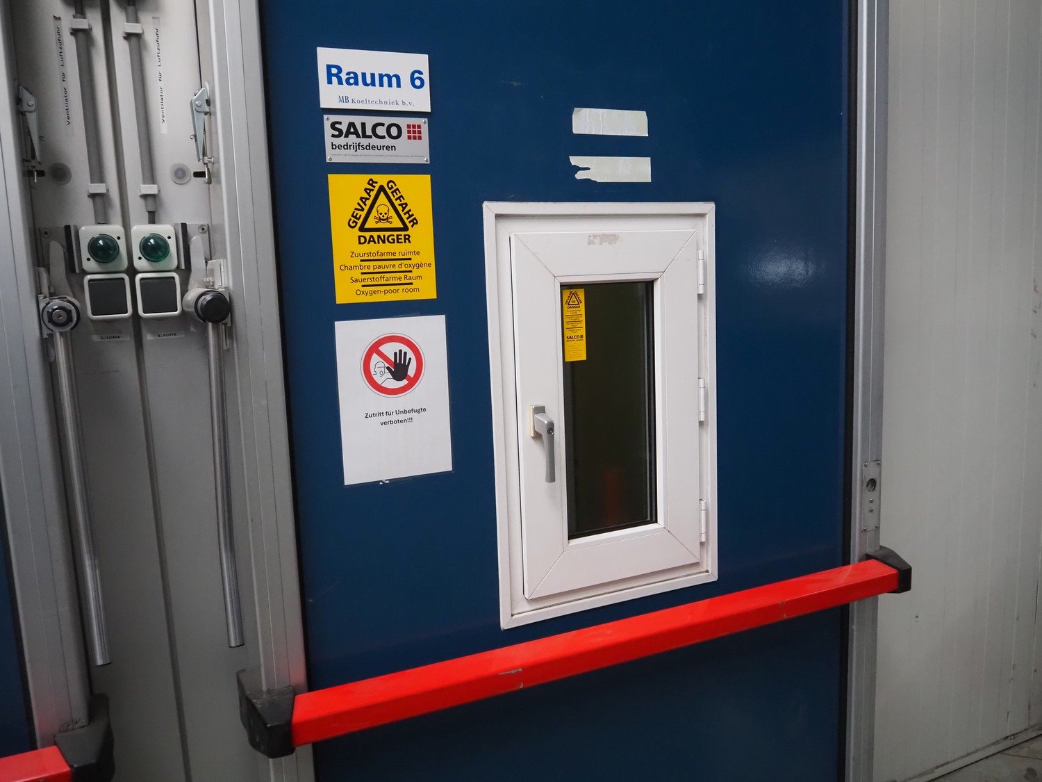 Complete cold store consisting of: 6 compartments, dimensions compartments: (2x) 7000 mm x 12500 mm x 5000 mm, (1x) 4500 mm x 6800 mm x 5000 mm and (3x) 2500 mm x 4500 mm x 5000 mm, total dimensions coldstore: 15000 mm x 17200 mm x 5300 mm, 6 pcs. Salco refrigerated sliding doors, dimensions: (3x) 3100 mm x 3050 mm / thickness: 120 mm and (3x) 1500 mm x 4100 mm / thickness: 120 mm, 2 pcs. Hӧrmann electric shutter doors, type: V5015SE, year of construction: 2005, dimensions: (2x) 3000 mm x 3000 mm, 9 pcs. evaporators, brands: Güntner / Helpman and ECO, Bock compressor rack with 2 cooling compressor, type: (1x) HGX4/650-4 S, number: AG04695-008, year of construction: 2000, capacity: 56.6 m³ per hour and (1x) HGX5/830-4 S, number: AG03608-006, year of construction: 2000, capacity: 72.2 m³ per hour, refrigerant: R404A, total dimensions compressor rack: 2350 mm x 1400 mm x 1500 mm, Helpman roof condenser, 2 fans, dimensions: 4200 mm x 1300 mm x 1300 mm, Switch cabinet for complete cooling installation. Compressor rack / roof condenser need to be removed by crane. Kavel locatie: Ferdinand-Porsche-Straße 7, 52525 Heinsberg, Duitsland