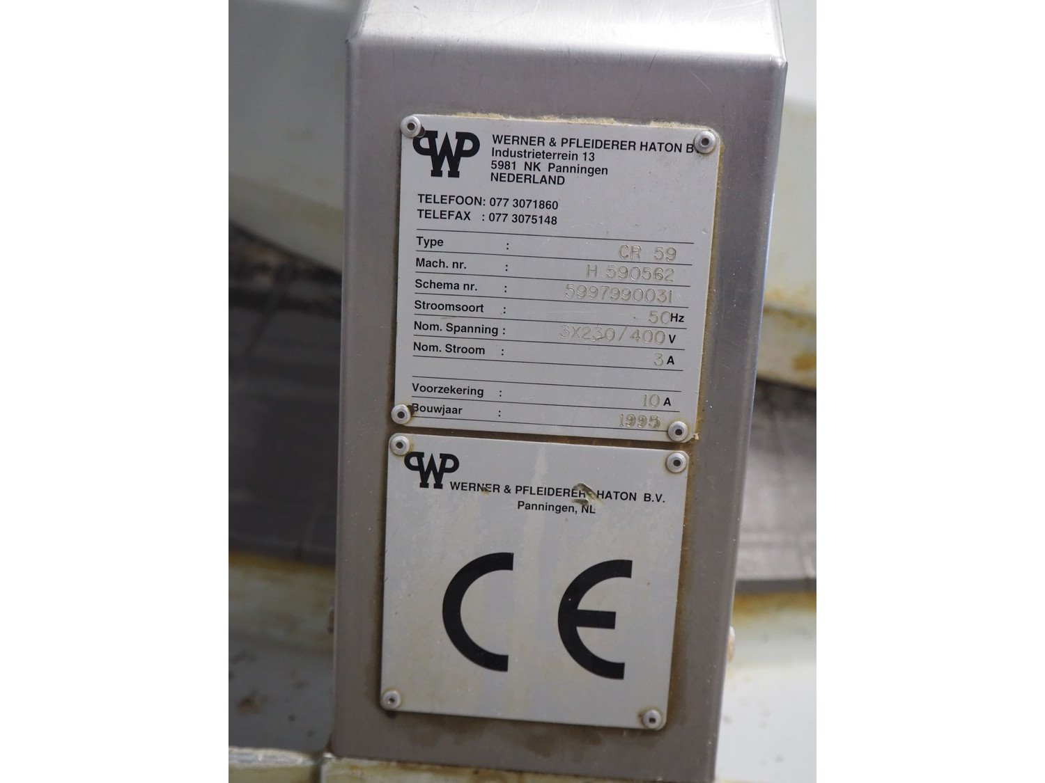Werner & Pfleiderer Haton BV mobile conical rounding machine, type: CR 59, machine number: H. 590562, year of construction: 1995, 230/400 V, 3 Ph, 50 Hz, 3/10 A, dimensions: 1100 mm x 1100 mm x 1500 mm. Kavel locatie: Looyenbeemd 11, 5652 BH Eindhoven, Nederland
