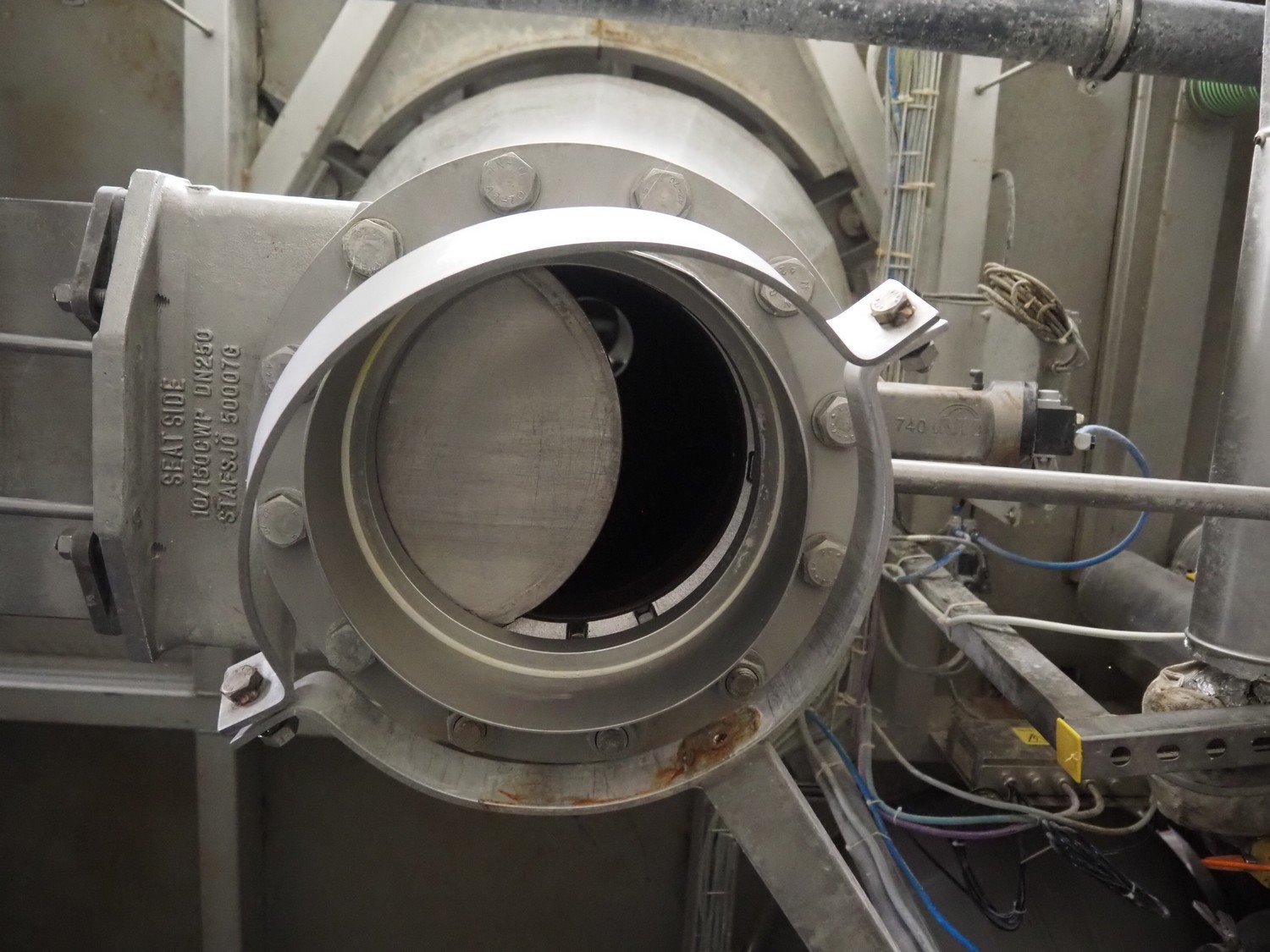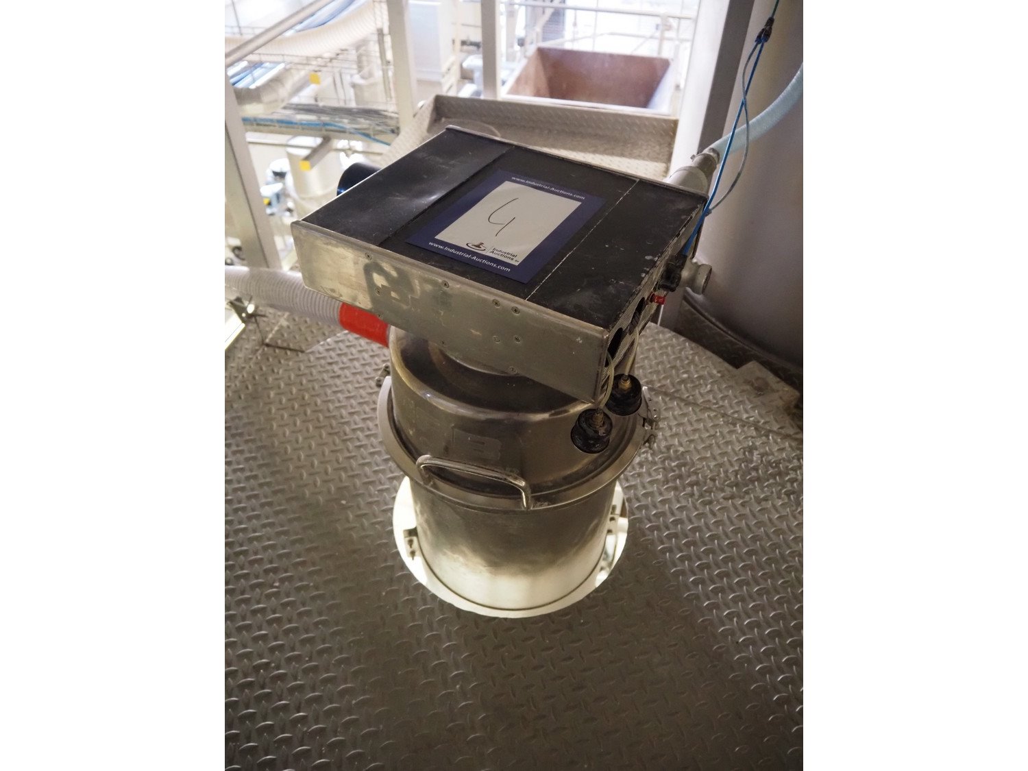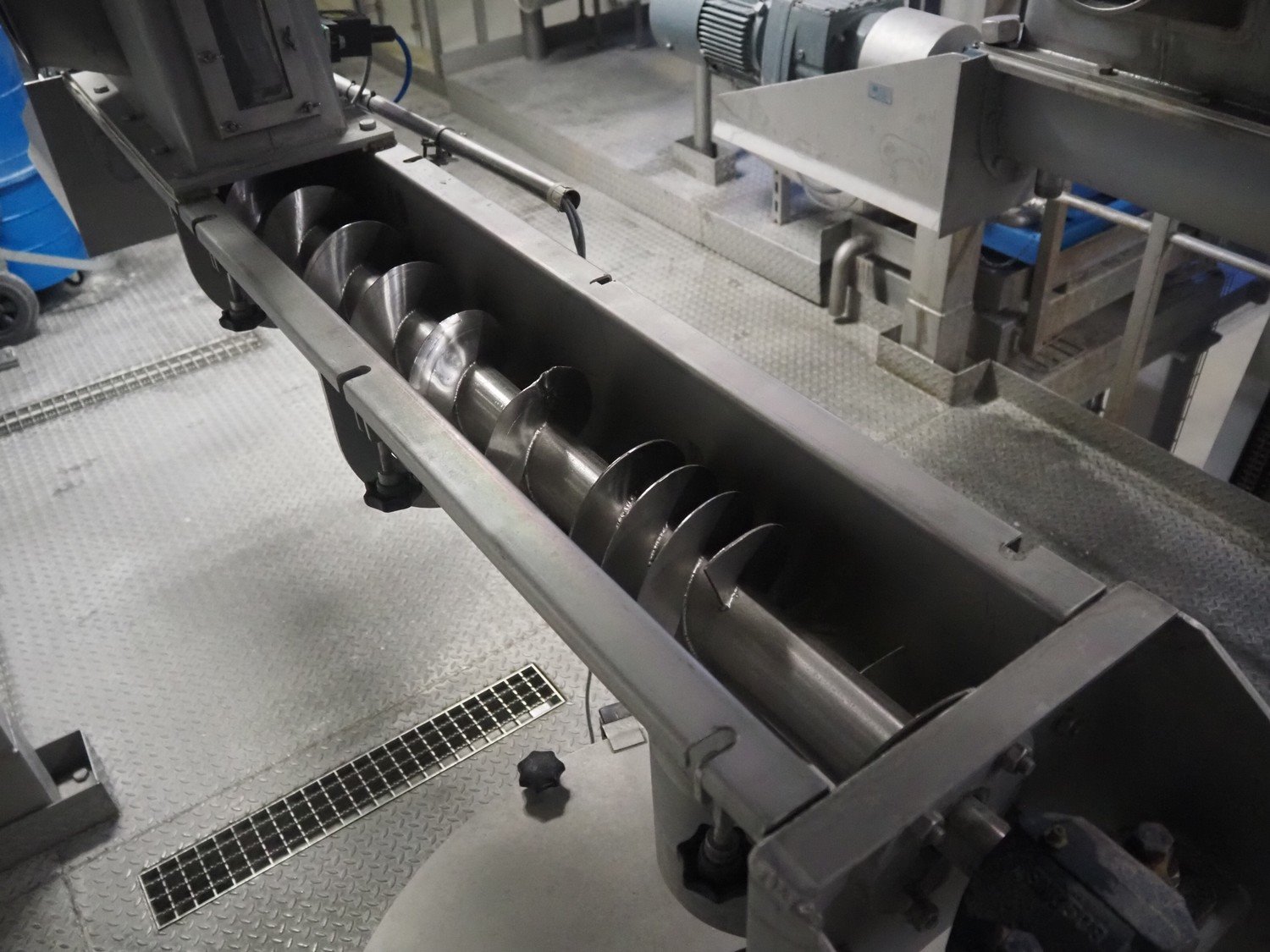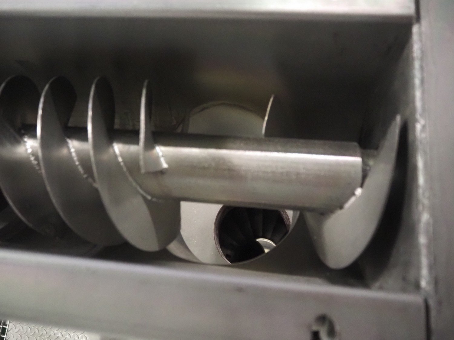 Eima GmbH infeed hopper with transport screw and outfeed hopper on weighing cells with valve, s/s screw, diameter: 180 mm, tier: 120 mm, dimensions infeed hopper with transport screw: 2500 mm x 800 mm x 2500 mm, dimensions outfeed hopper: 1300 mm x 1300 mm x 2000 mm. Kavel locatie: Schultetusstraße 37, 17153 Stavenhagen, Duitsland