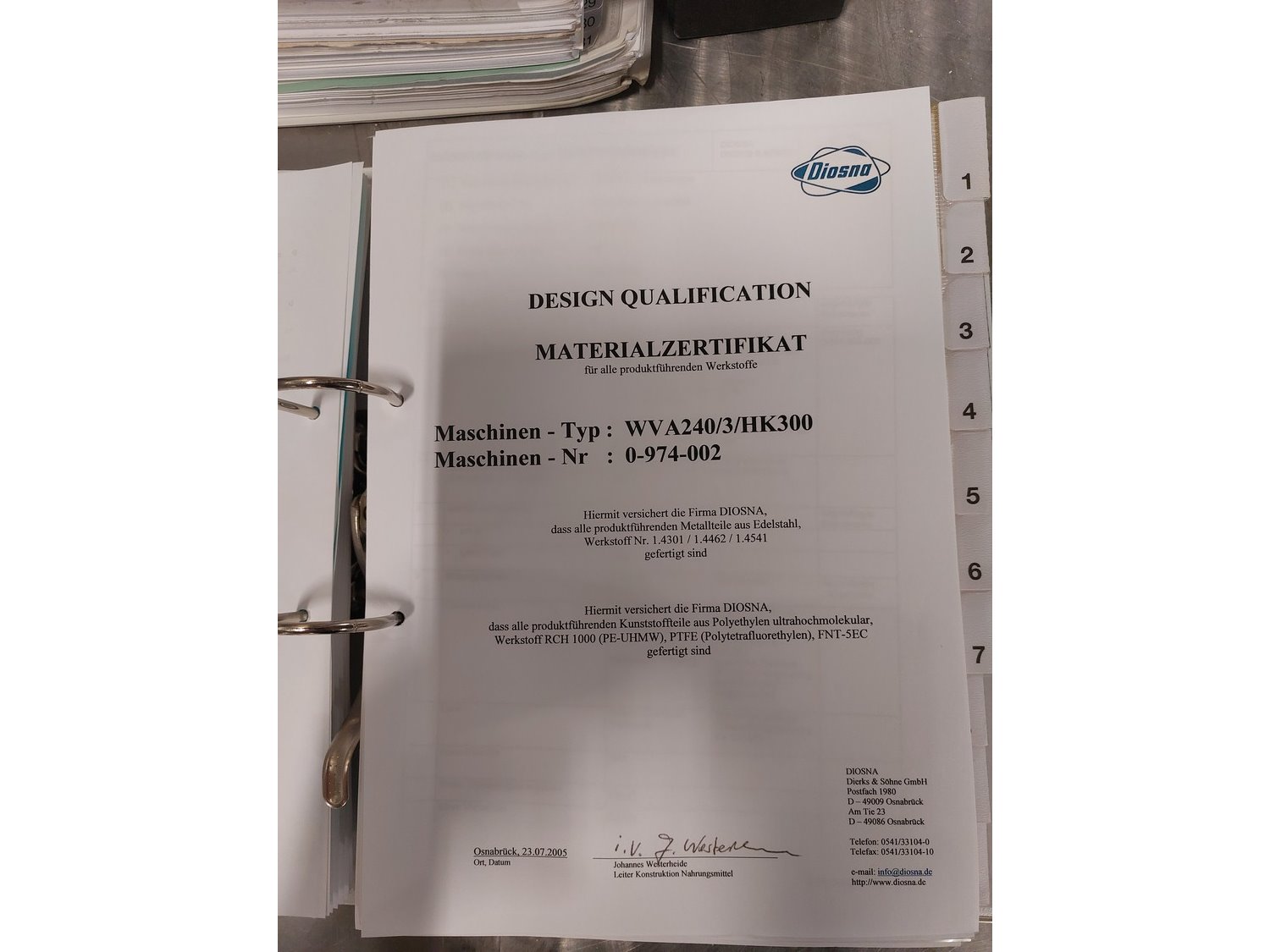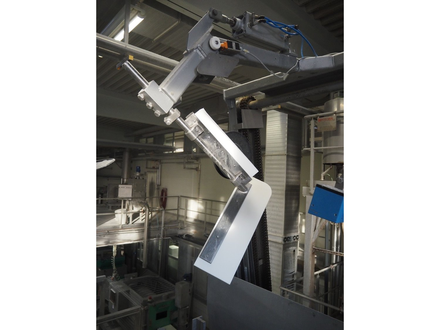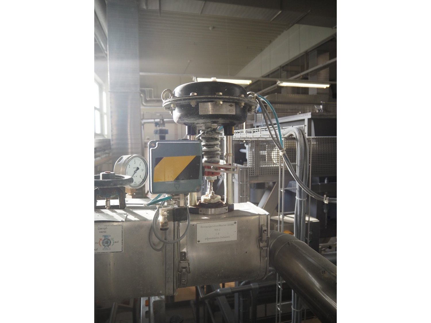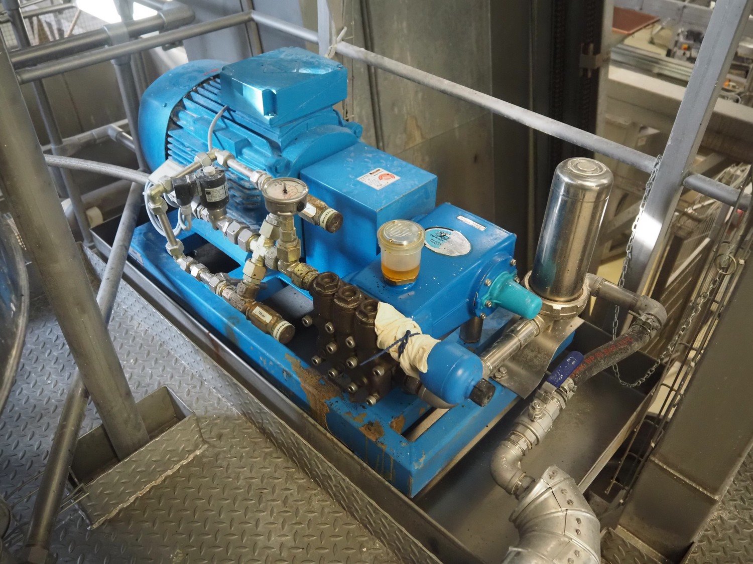 Diosna Dierks & Söhne GmbH carousel dough kneading installation consisting of: Diosna Dierks & Söhne GmbH wendel mixer with rotating carousel, type: WV 240 A, number: 974-056, 400 V, 3 Ph, 50 Hz, 34 kW, 63 A, 4 s/s tubs, inside dimensions: (4x) Ø 1000 mm x 500 mm, volume each tub: 370 liter / 240 kg, total dimensions: 3900 mm x 3100 mm x 2550 mm, Diosna Dierks & Söhne GmbH lifter with mobile outfeed hopper, type: HK 300, number: 3400-286, year of construction: 2006, 400 V, 3 Ph, 50 Hz, 7.9 A, 3.15 kW, dimensions: 2100 mm x 2300 mm x 7000 mm, Diosna Dierks & Söhne GmbH washing station, type: HK-300, number: 3400-291, year of construction: 2006, 400 V, 3 Ph, 50 Hz, 4.4 A, 2.8 kW, dimensions: 2700 mm x 2400 mm x 2900 mm, Rosoma water preparation unit for washing station, Diosna Dierks & Söhne GmbH outfeed belt, plastic belt, belt width: 850 mm, total dimensions: 6500 mm x 900 mm x 400 mm, Diosna Dierks & Söhne GmbH mobile outfeed dividing belt, plastic belt, belt width: 850 mm, total dimensions: 3500 mm x 1350 mm x 900 mm, S/s platform, dimensions: 11000 mm x 11000 mm x 7150 mm, S/s switch cabinet, dimensions: 3650 mm x 550 mm x 2300 mm. Kavel locatie: Schultetusstraße 37, 17153 Stavenhagen, Duitsland