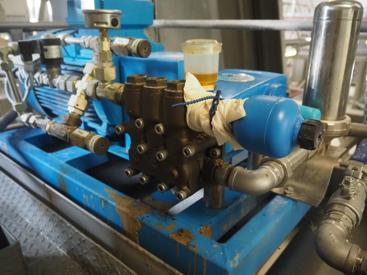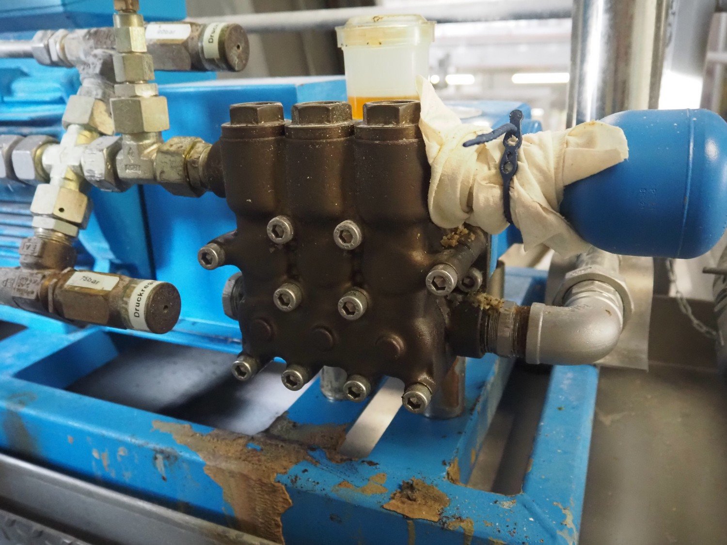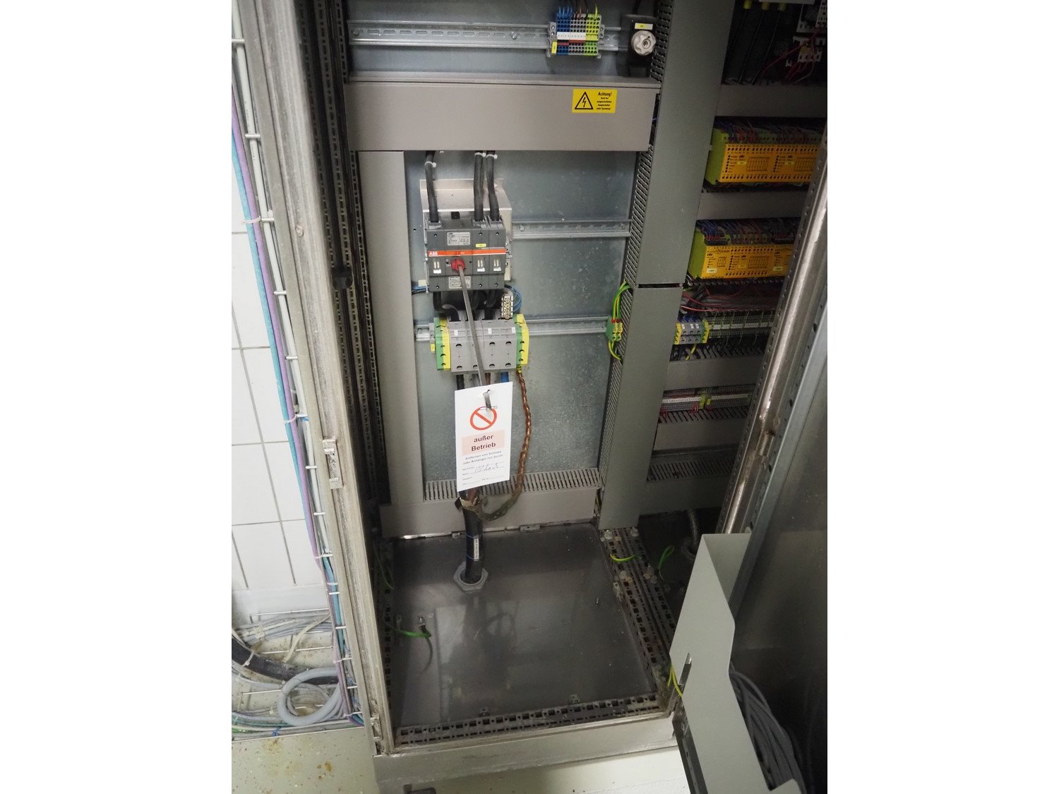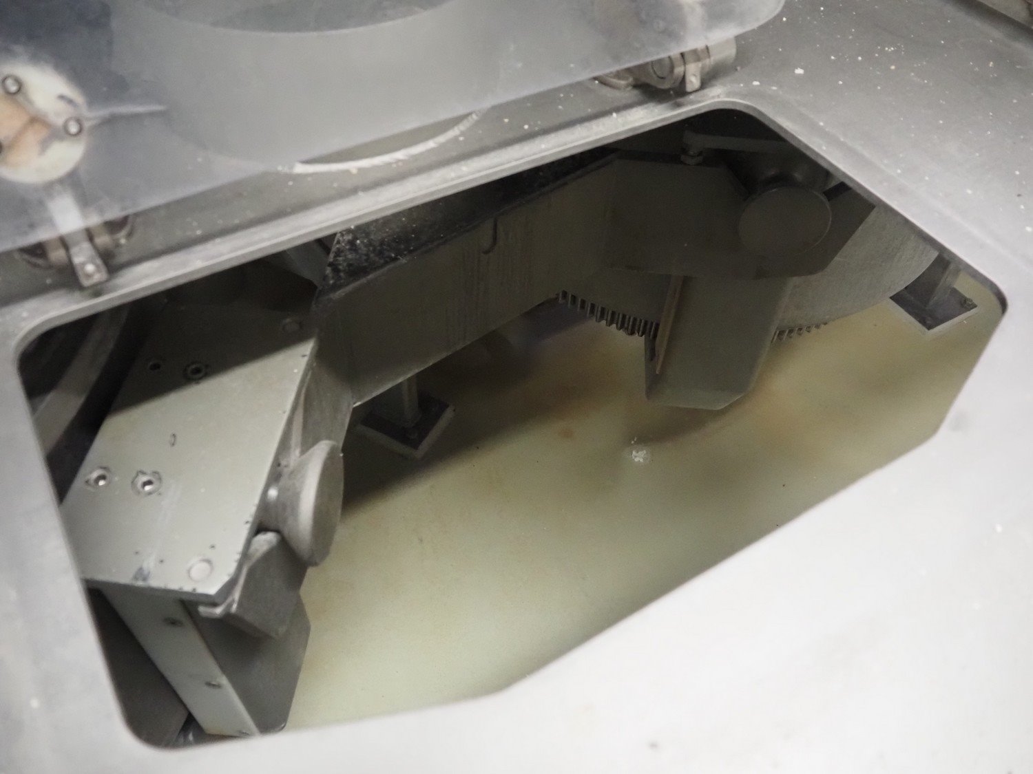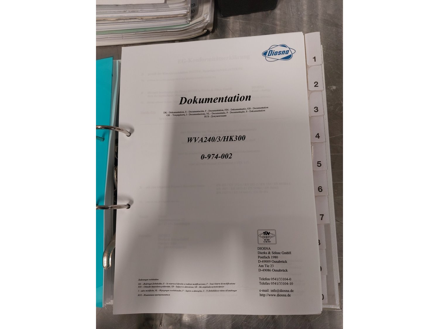 Diosna Dierks & Söhne GmbH carousel dough kneading installation consisting of: Diosna Dierks & Söhne GmbH wendel mixer with rotating carousel, type: WV 240 A, number: 974-056, 400 V, 3 Ph, 50 Hz, 34 kW, 63 A, 4 s/s tubs, inside dimensions: (4x) Ø 1000 mm x 500 mm, volume each tub: 370 liter / 240 kg, total dimensions: 3900 mm x 3100 mm x 2550 mm, Diosna Dierks & Söhne GmbH lifter with mobile outfeed hopper, type: HK 300, number: 3400-286, year of construction: 2006, 400 V, 3 Ph, 50 Hz, 7.9 A, 3.15 kW, dimensions: 2100 mm x 2300 mm x 7000 mm, Diosna Dierks & Söhne GmbH washing station, type: HK-300, number: 3400-291, year of construction: 2006, 400 V, 3 Ph, 50 Hz, 4.4 A, 2.8 kW, dimensions: 2700 mm x 2400 mm x 2900 mm, Rosoma water preparation unit for washing station, Diosna Dierks & Söhne GmbH outfeed belt, plastic belt, belt width: 850 mm, total dimensions: 6500 mm x 900 mm x 400 mm, Diosna Dierks & Söhne GmbH mobile outfeed dividing belt, plastic belt, belt width: 850 mm, total dimensions: 3500 mm x 1350 mm x 900 mm, S/s platform, dimensions: 11000 mm x 11000 mm x 7150 mm, S/s switch cabinet, dimensions: 3650 mm x 550 mm x 2300 mm. Kavel locatie: Schultetusstraße 37, 17153 Stavenhagen, Duitsland