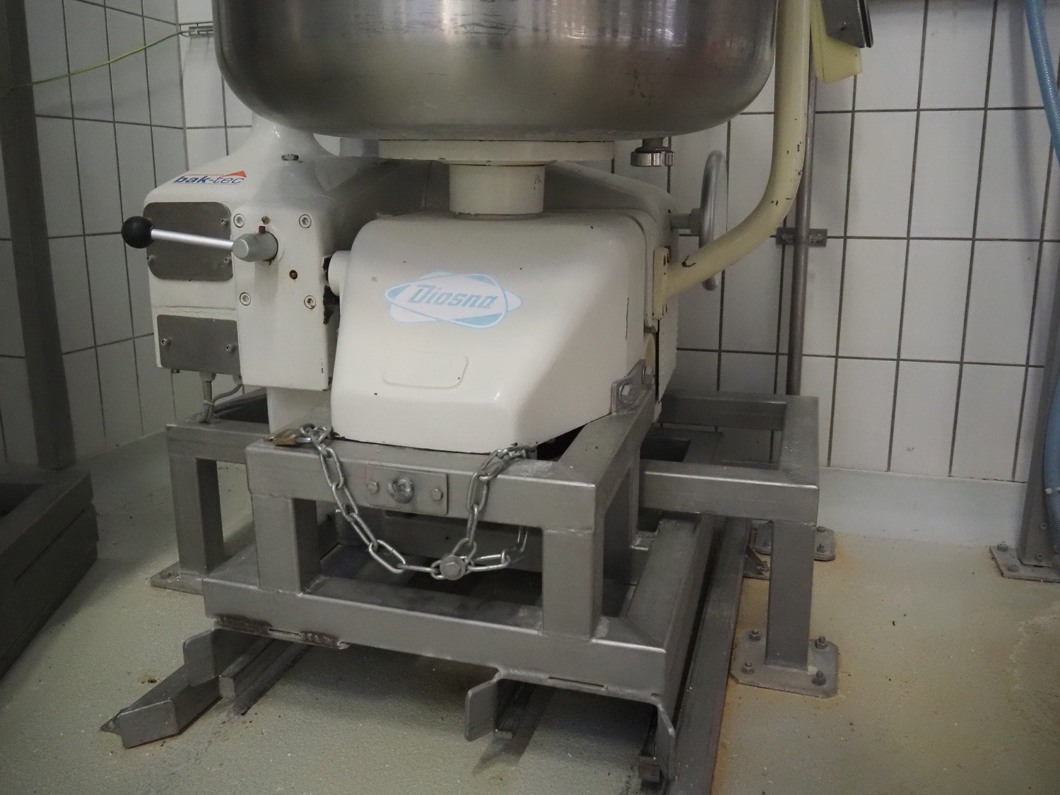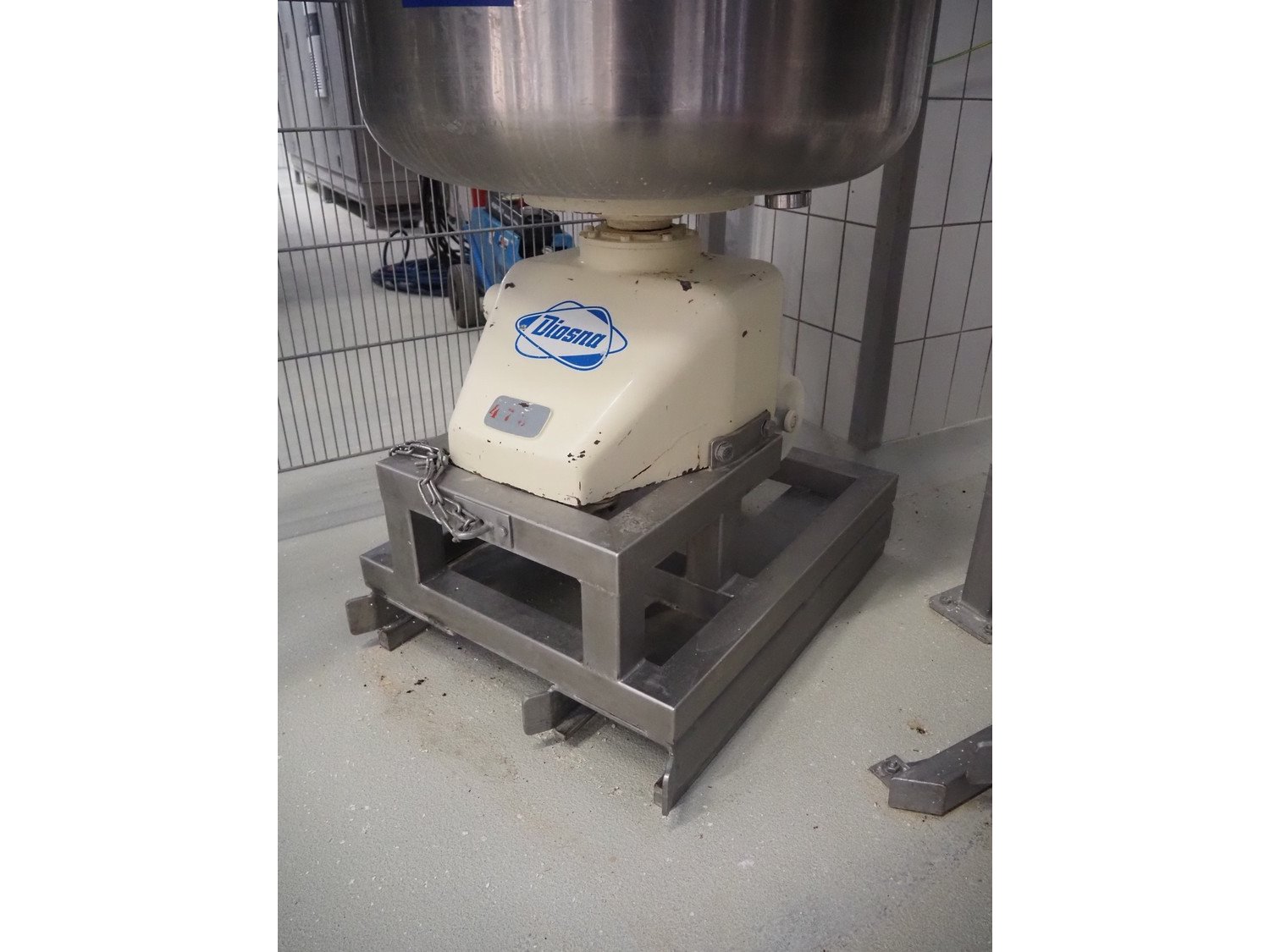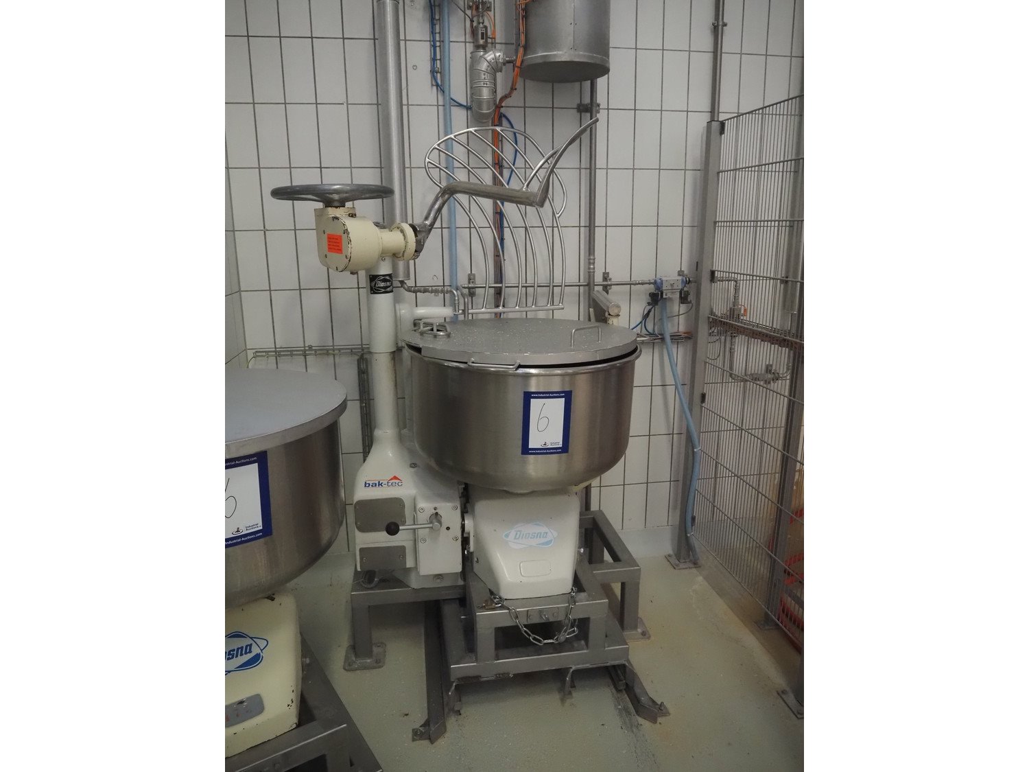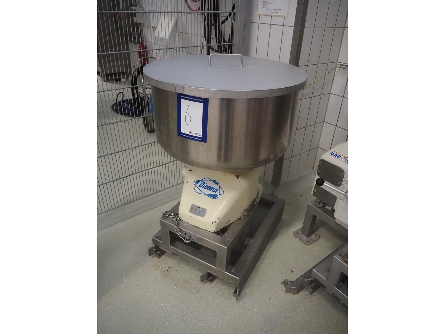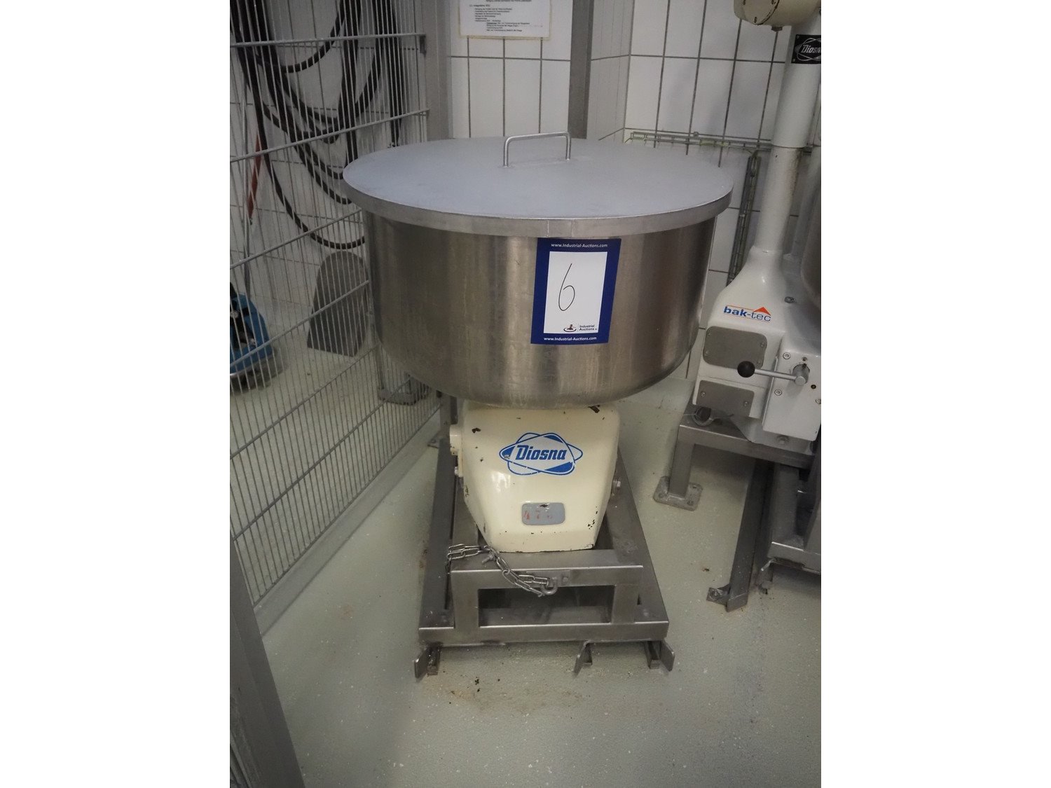 Diosna Dierks & Söhne GmbH dough kneading machine, inside dimensions: Ø 800 mm x 400 mm, total dimensions: 1200 mm x 1100 mm x 1900 mm, additional tub, inside dimensions: Ø 800 mm x 400 mm, total dimensions: 650 mm x 850 mm x 1150 mm, s/s fences with 2 s/s switch cabinets, dimensions switch cabinets: (2x) 500 mm x 250 mm x 700 mm. Kavel locatie: Schultetusstraße 37, 17153 Stavenhagen, Duitsland