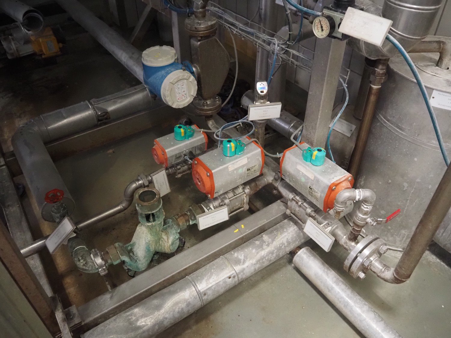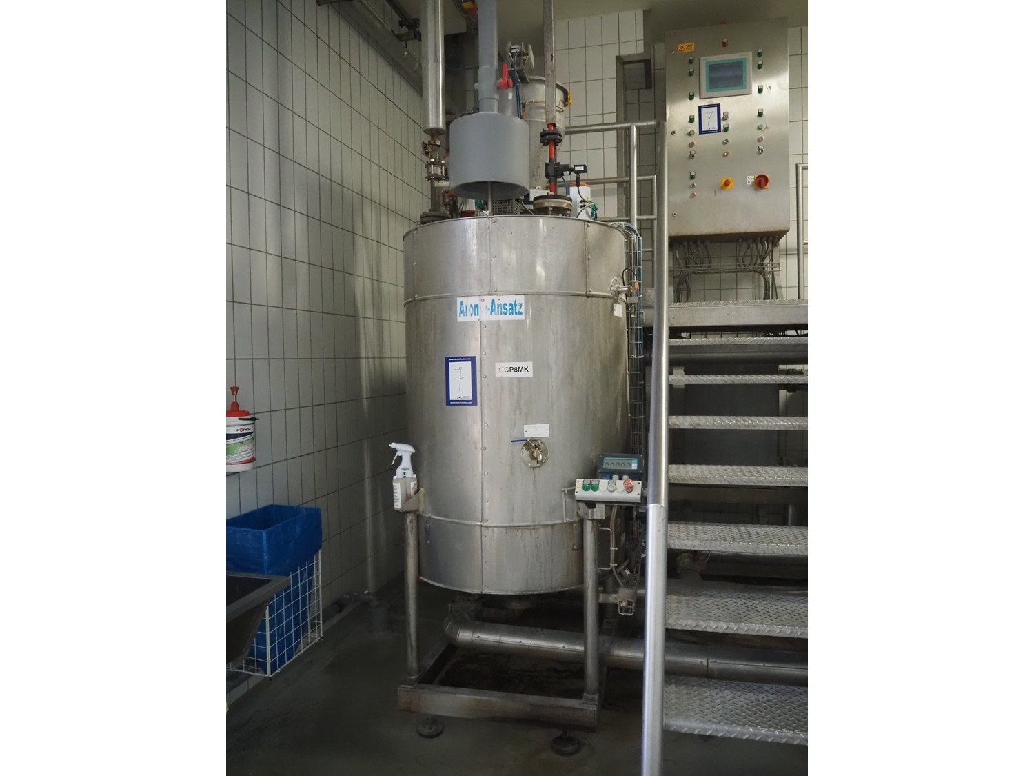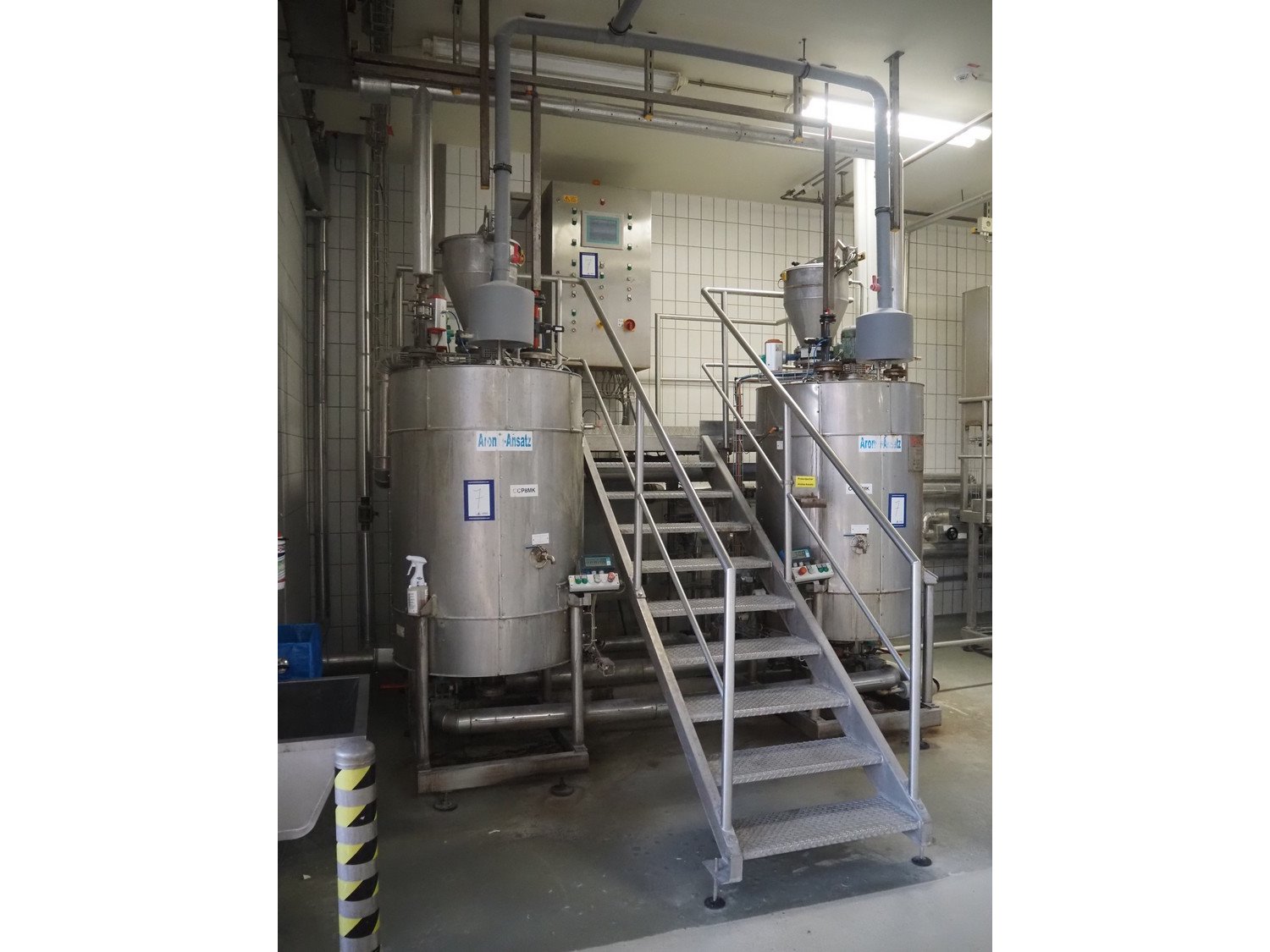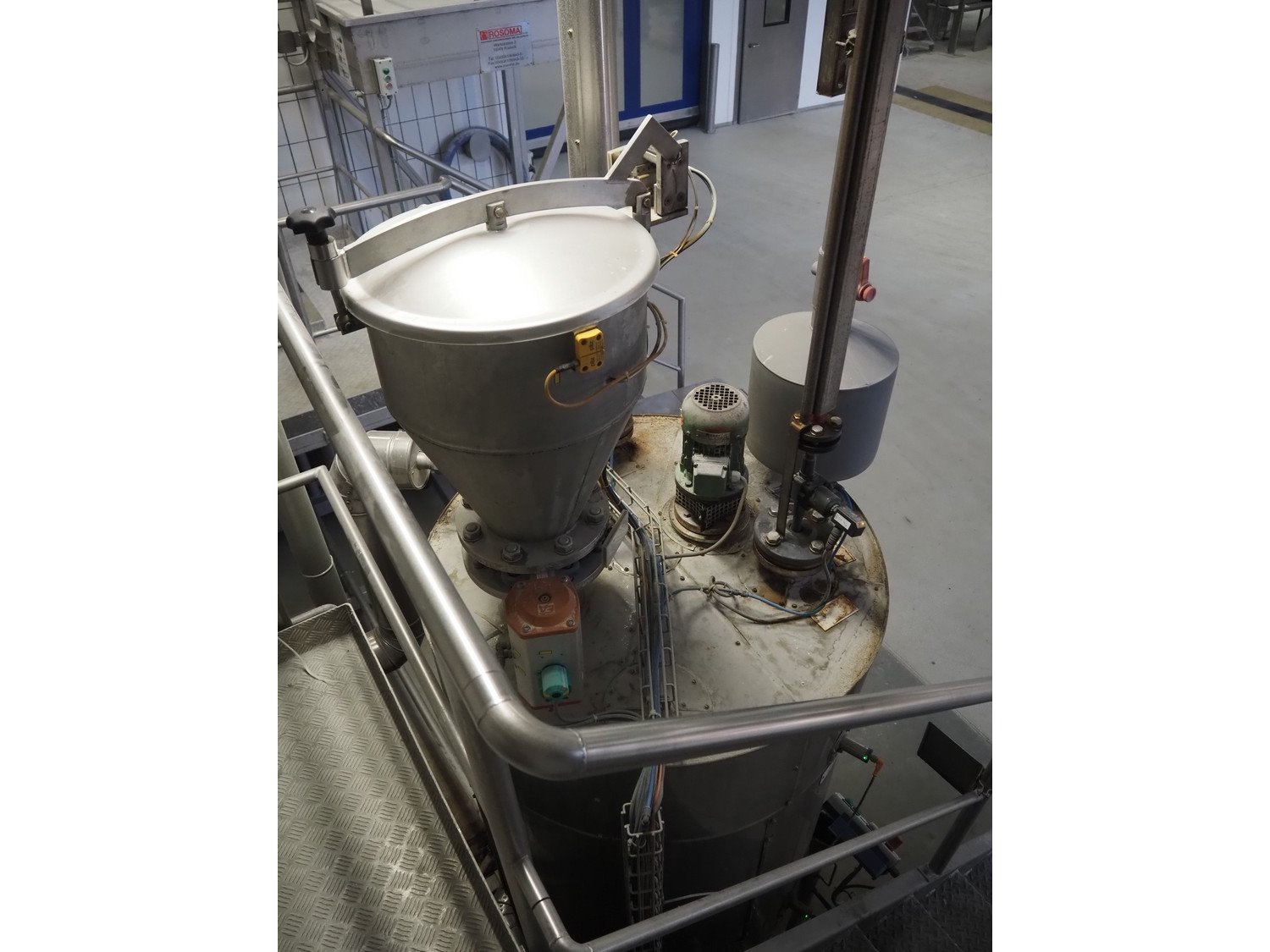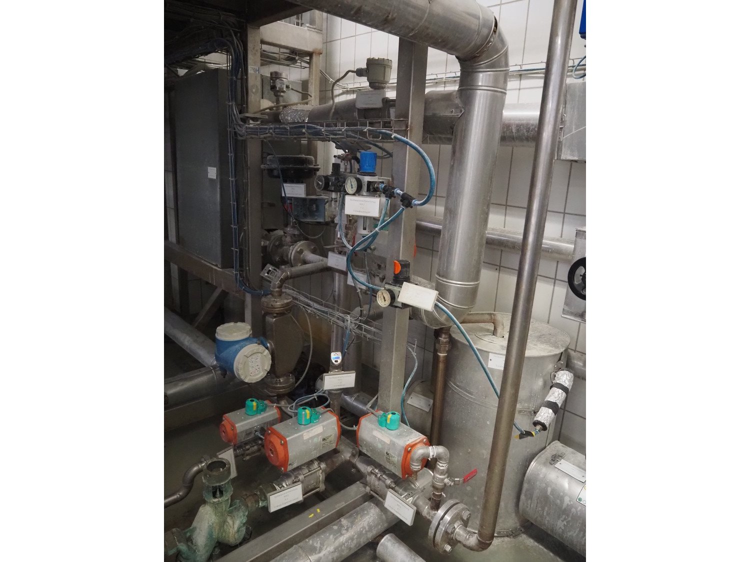 Rosoma GmbH hot water installation consisting of: 2 hot water tanks, dimensions: (2x) Ø 1050 mm x 3000 mm, s/s switch cabinet, dimensions: 800 mm x 450 mm x 1350 mm, s/s platform, dimensions: 3500 mm x 3000 mm x 3800 mm, various valves. Kavel locatie: Schultetusstraße 37, 17153 Stavenhagen, Duitsland