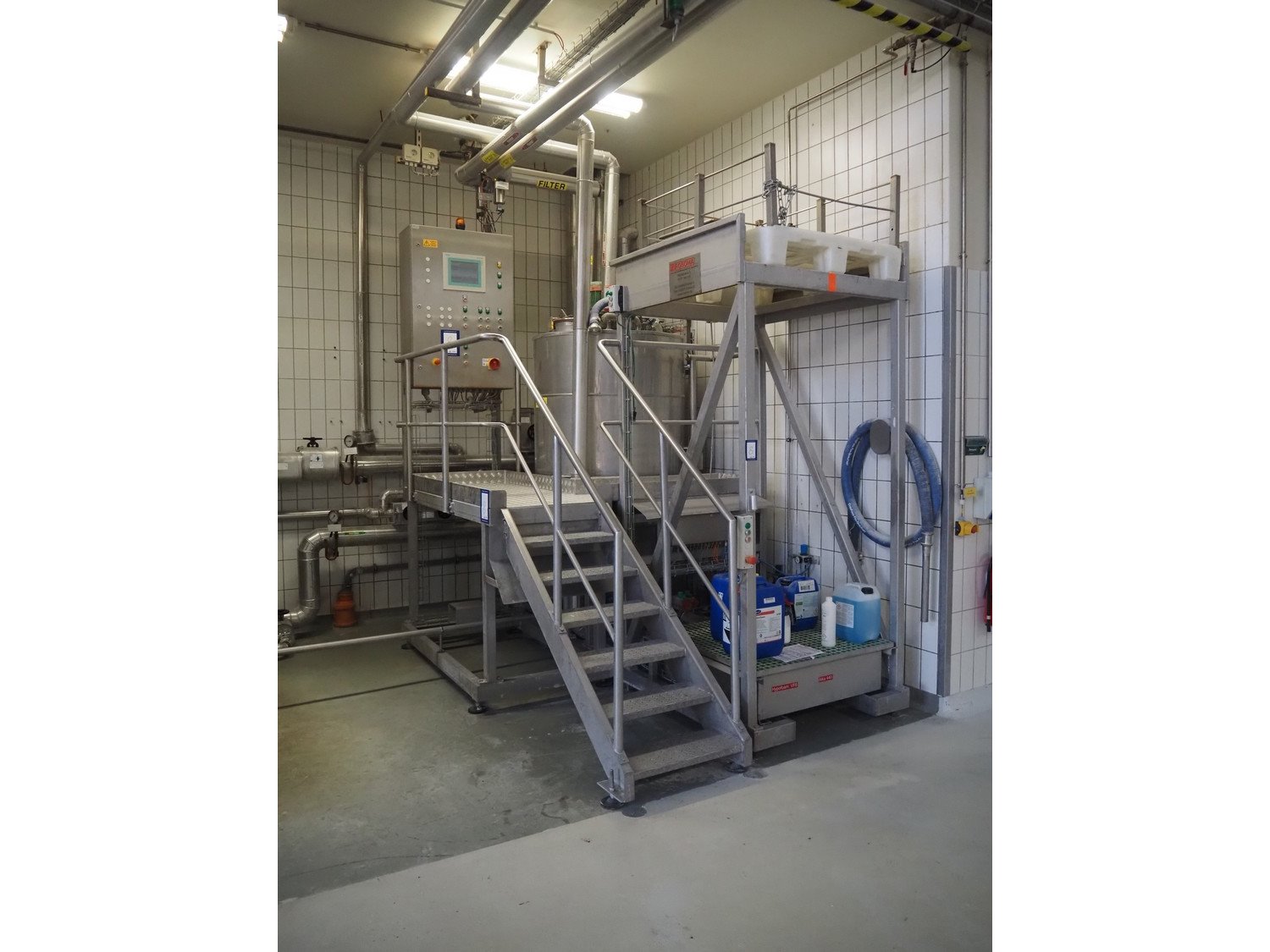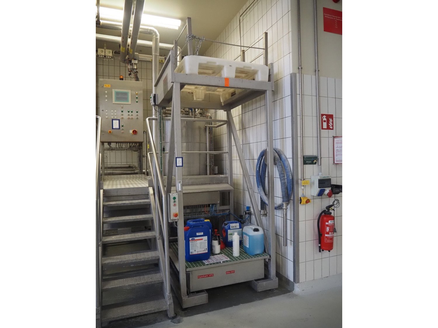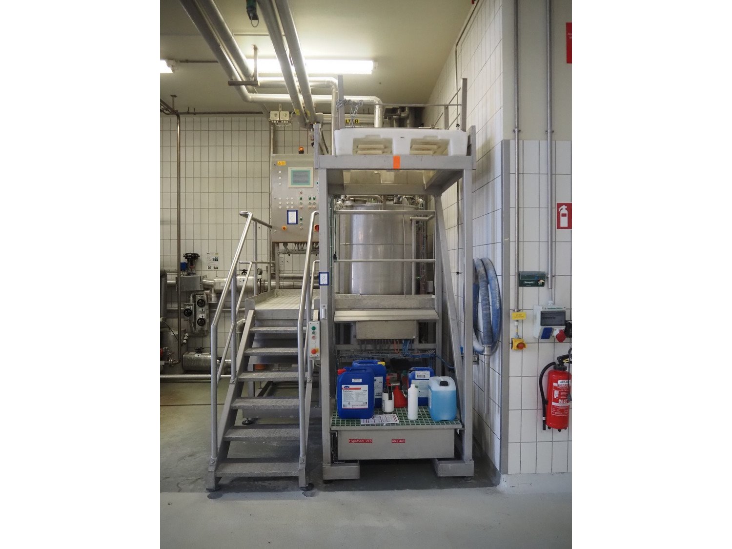 Rosoma GmbH liquid grease dosing installation consisting of: s/s mixing tank, dimensions: Ø 1200 mm x 2700 mm, s/s switch cabinet, dimensions: 800 mm x 350 mm x 1200 mm, s/s frame, dimensions: 3200 mm x 2100 mm x 3100 mm. Kavel locatie: Schultetusstraße 37, 17153 Stavenhagen, Duitsland