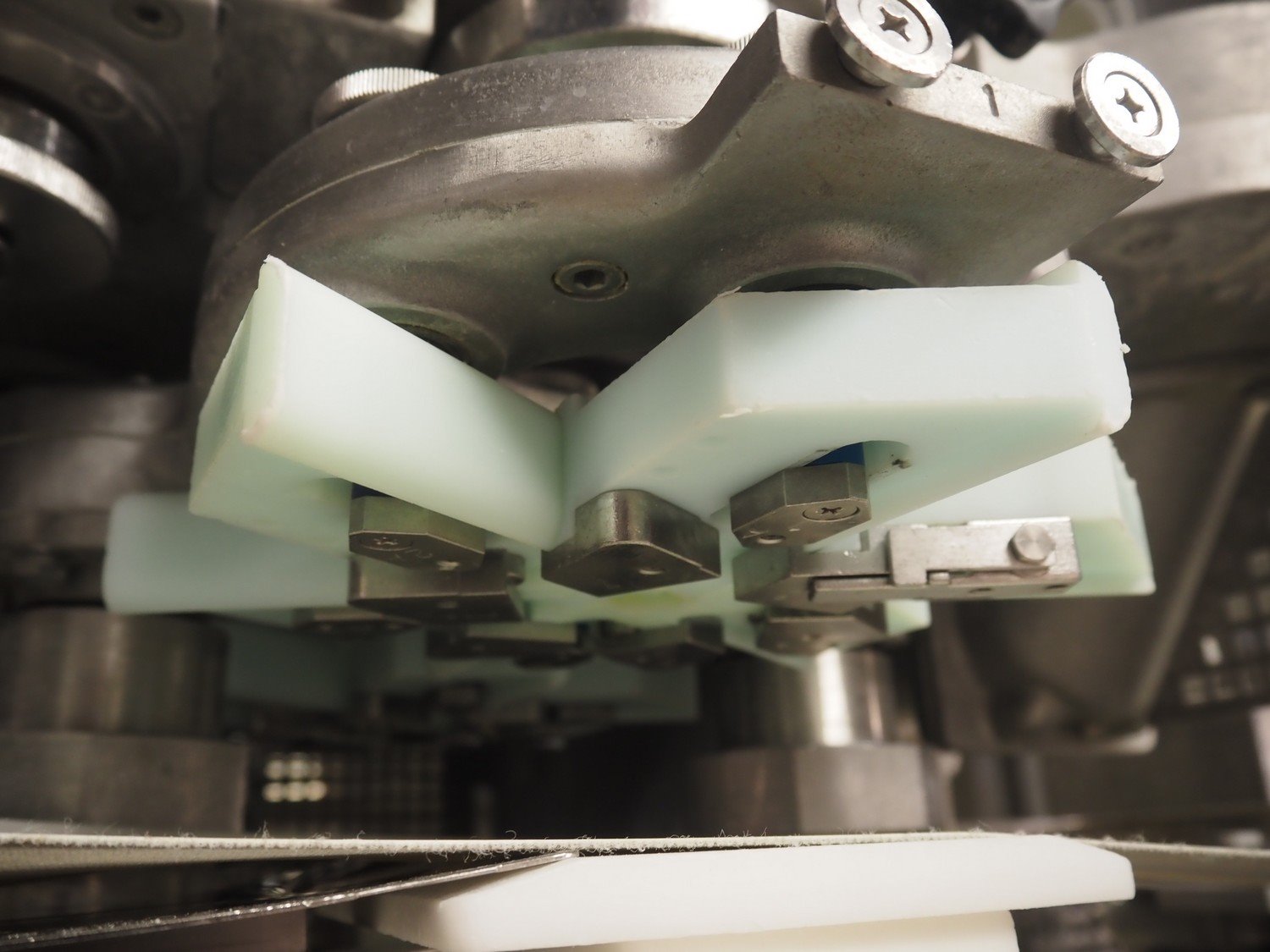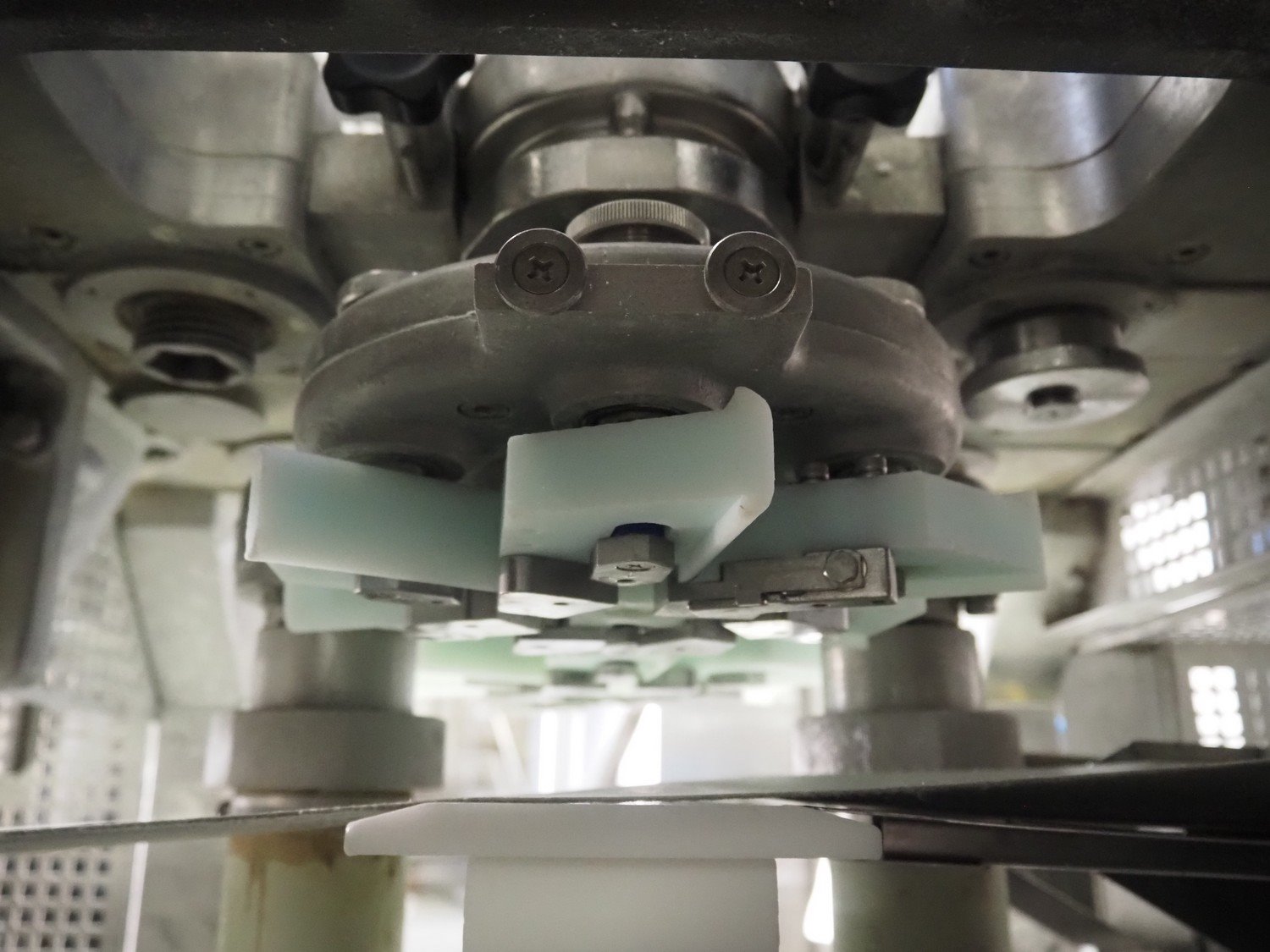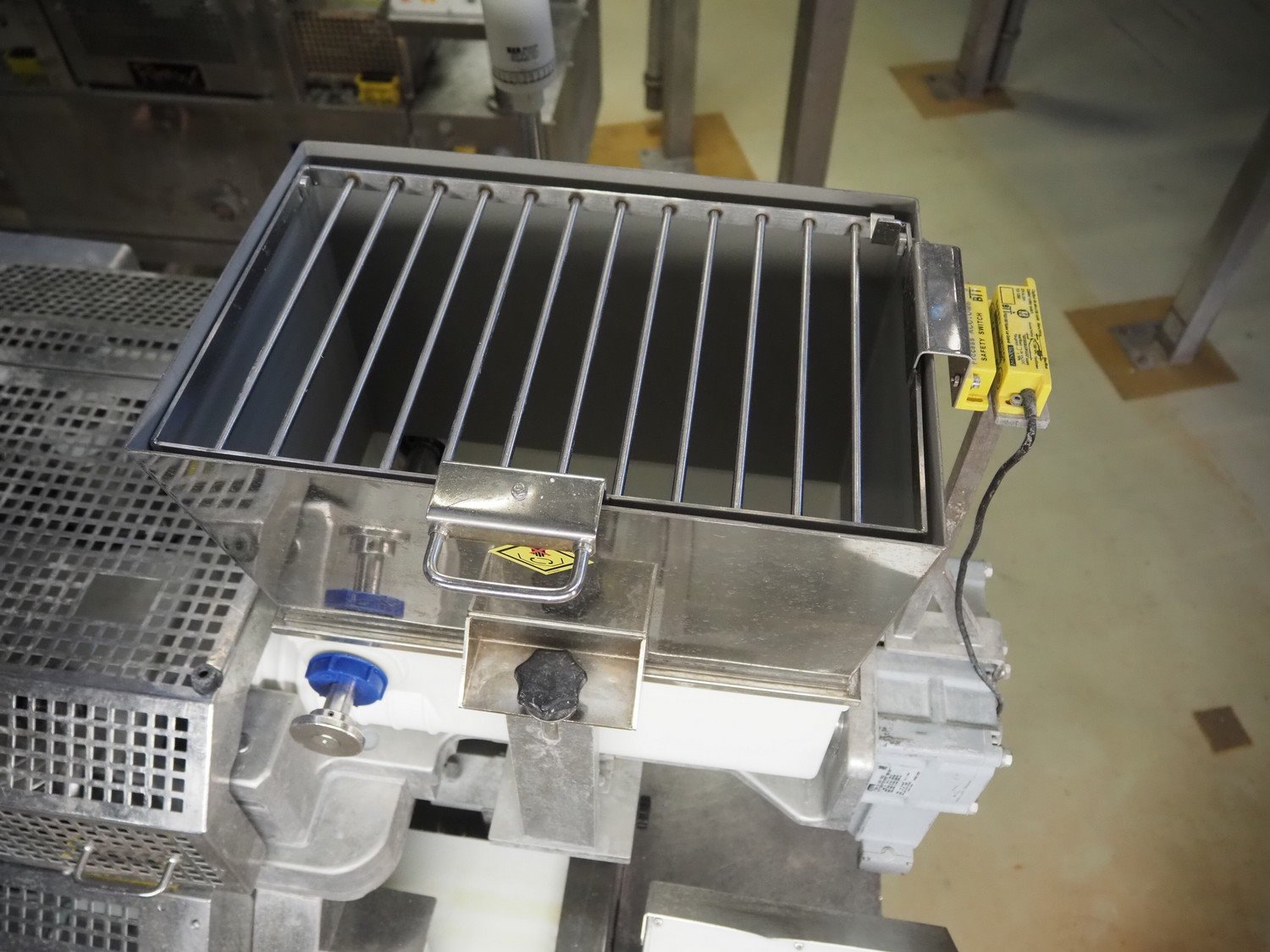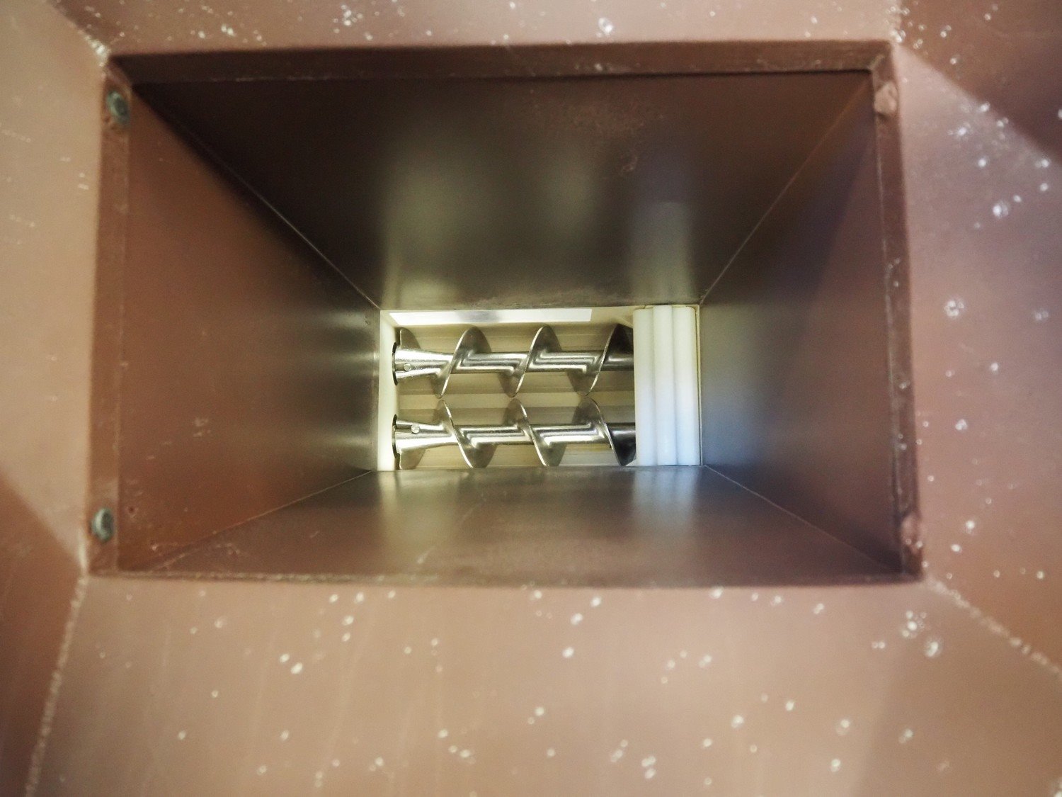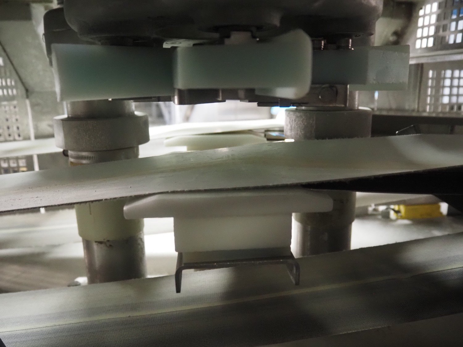 Rheon double lane encrusting machine with flour covering device, model encrusting machine: WN055, serial number: 125, year of construction: sep. 2006, 380 V, 3 Ph, 50/60 Hz, 11.3 A, 4.3 kW, plastic belt, belt width: (2x) 130 mm, total dimensions: 1700 mm x 1000 mm x 2750 mm, model flour covering device: DU220, serial number: 220, year of construction: oct. 2008, 200 V, 3 Ph, 50 Hz, 2.6 A, 0.28 kW, plastic belt, belt width: (2x) 100 mm, total dimensions: 1600 mm x 900 mm x 1750 mm. Kavel locatie: Schultetusstraße 37, 17153 Stavenhagen, Duitsland