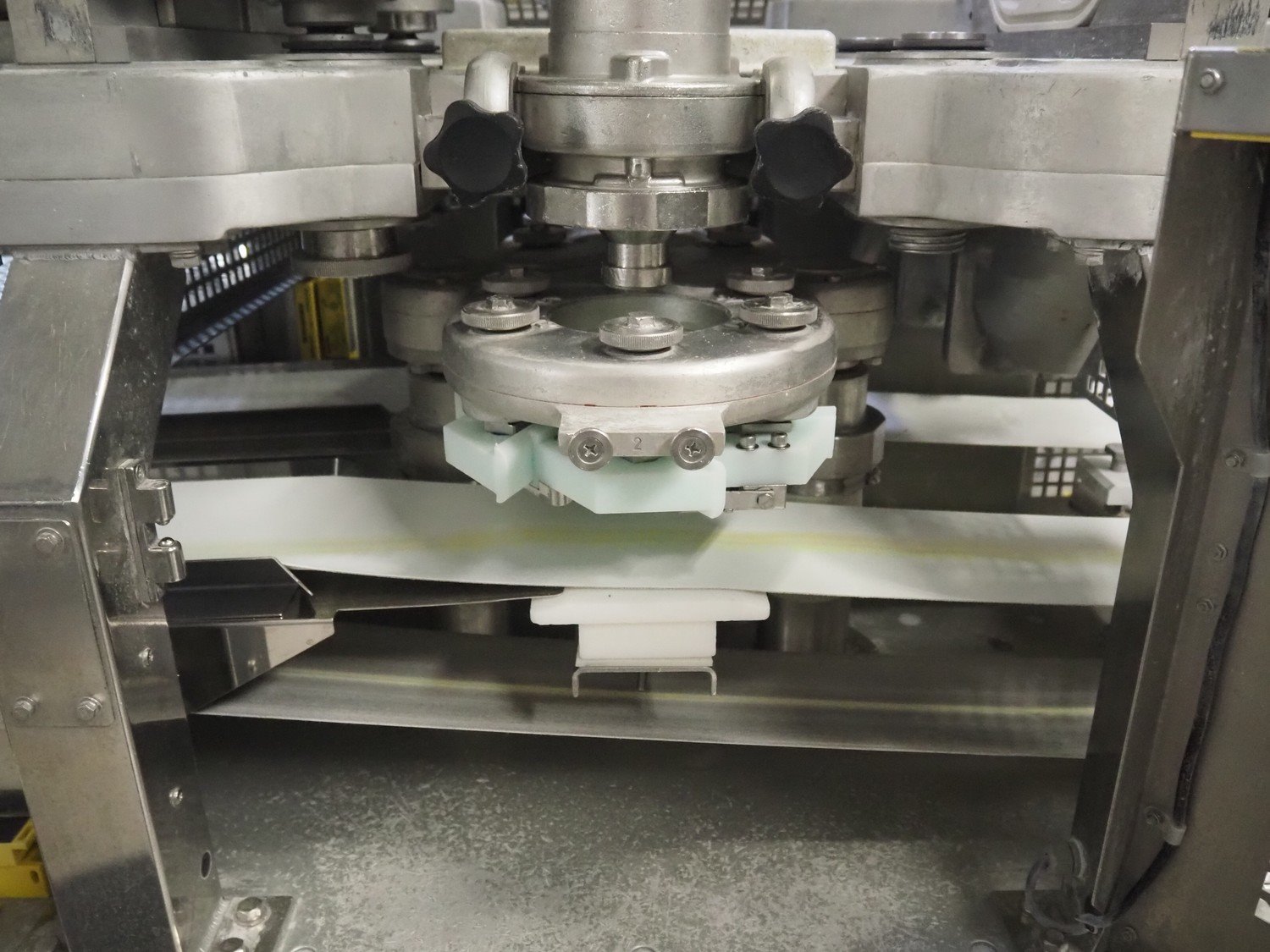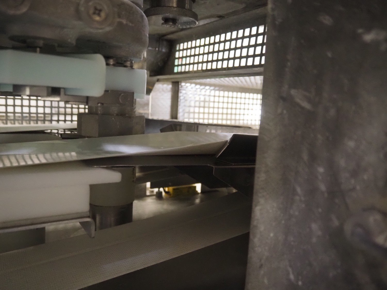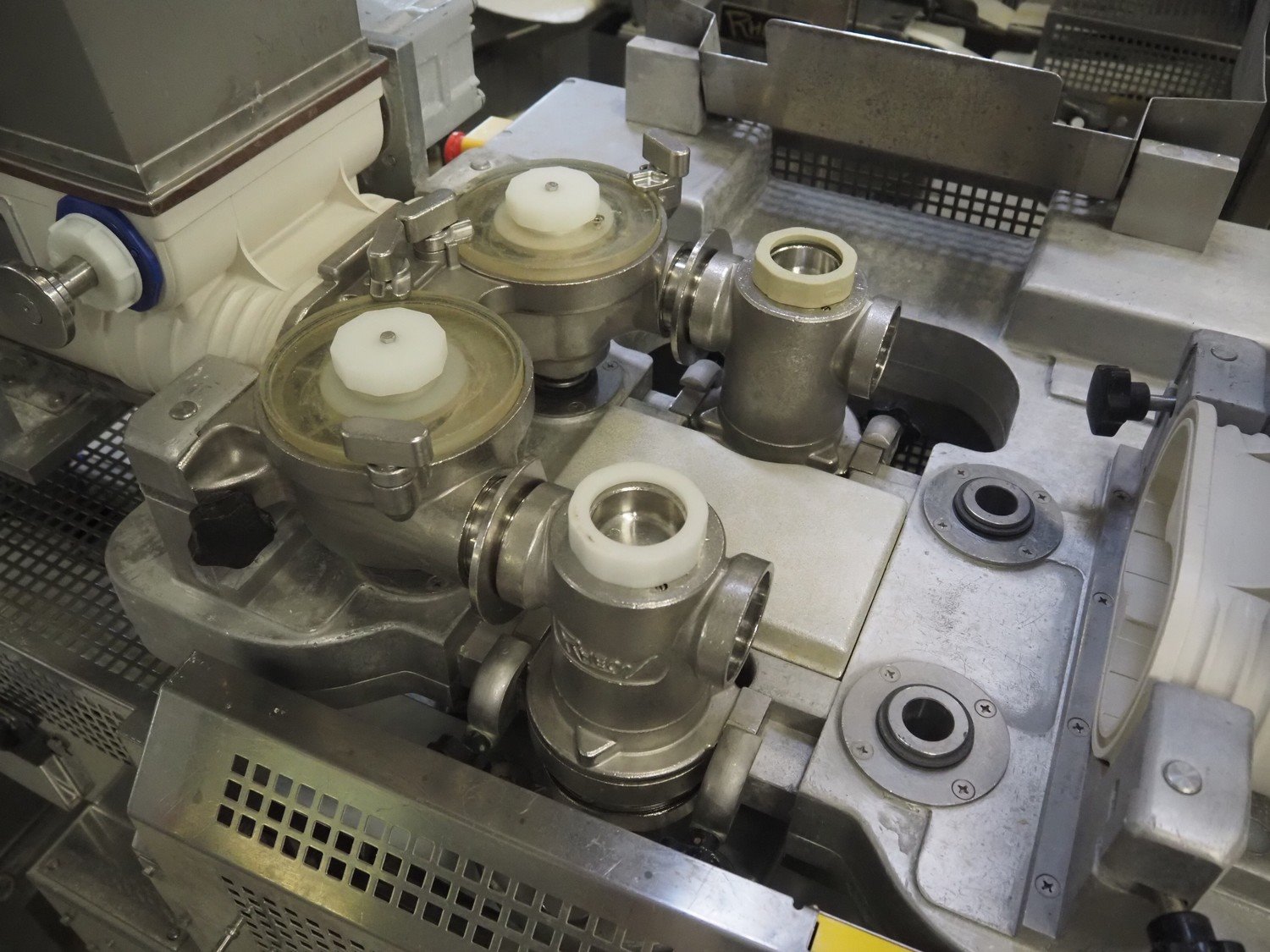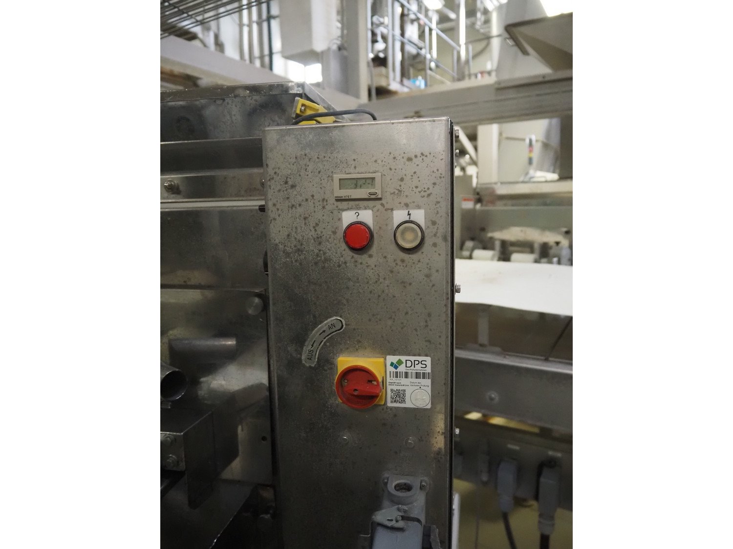 Rheon double lane encrusting machine with flour covering device, model encrusting machine: WN055, serial number: 172, year of construction: oct. 2008, 380 V, 3 Ph, 50/60 Hz, 11.3 A, 4.3 kW, plastic belt, belt width: (2x) 130 mm, total dimensions: 1700 mm x 1000 mm x 2750 mm, model flour covering device: DU220, serial number: 041, year of construction: sep. 2006, 200 V, 3 Ph, 50 Hz, 2.6 A, 0.28 kW, plastic belt, belt width: (2x) 100 mm, total dimensions: 1600 mm x 900 mm x 1750 mm. Kavel locatie: Schultetusstraße 37, 17153 Stavenhagen, Duitsland