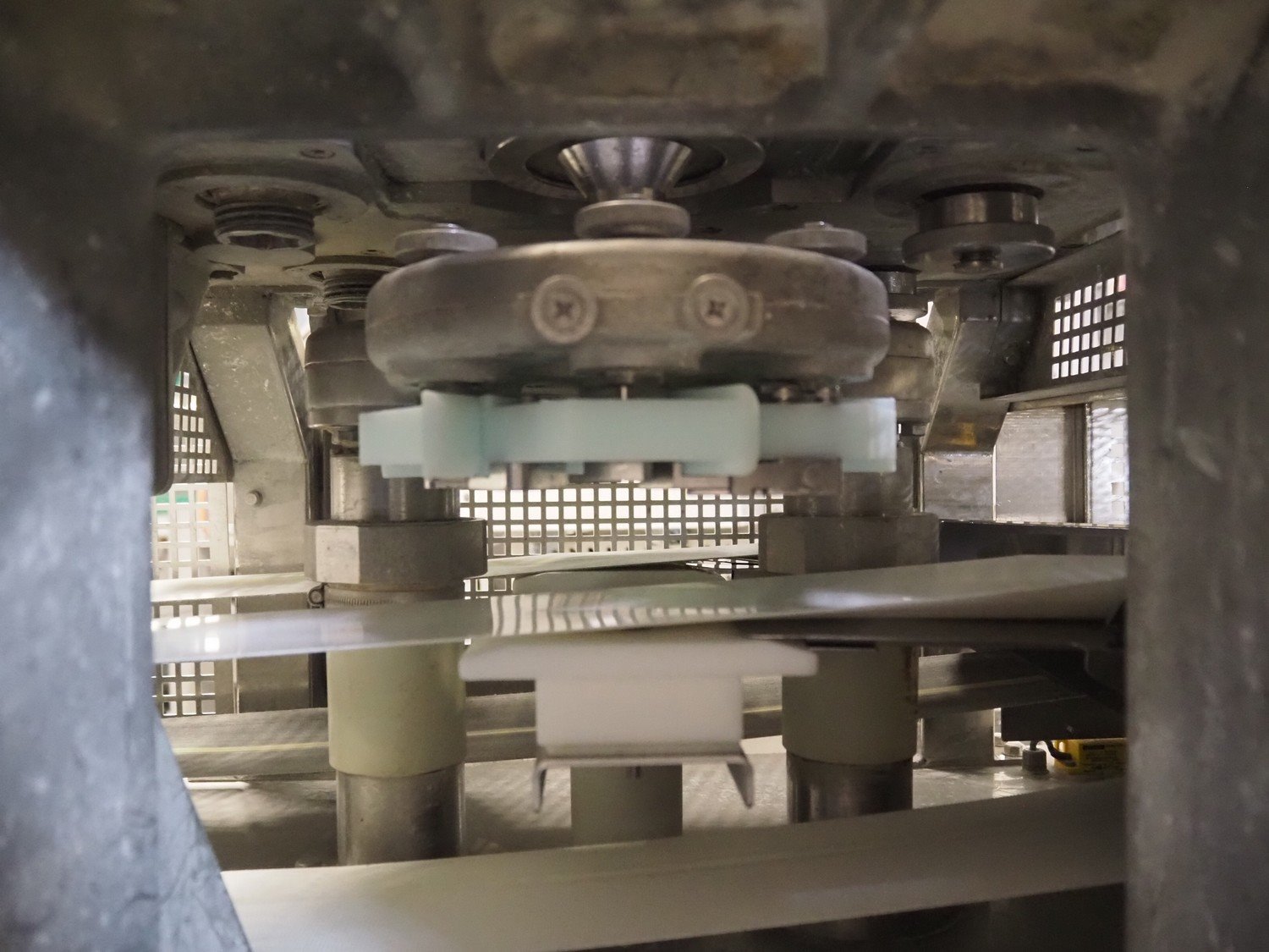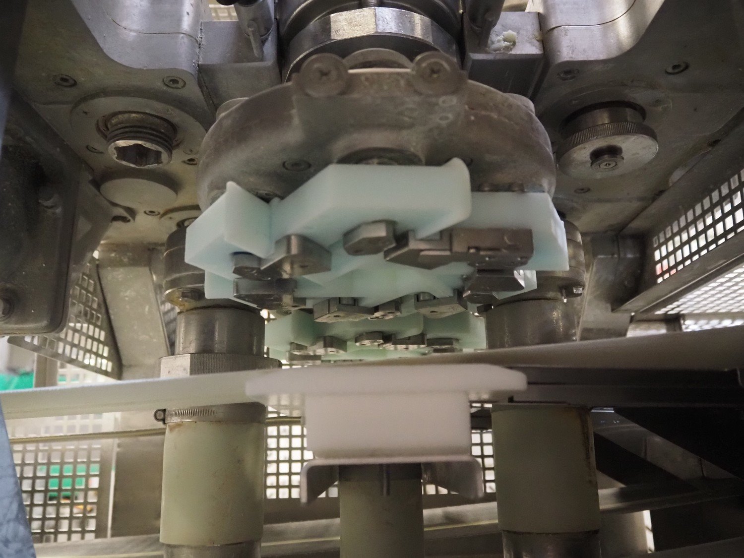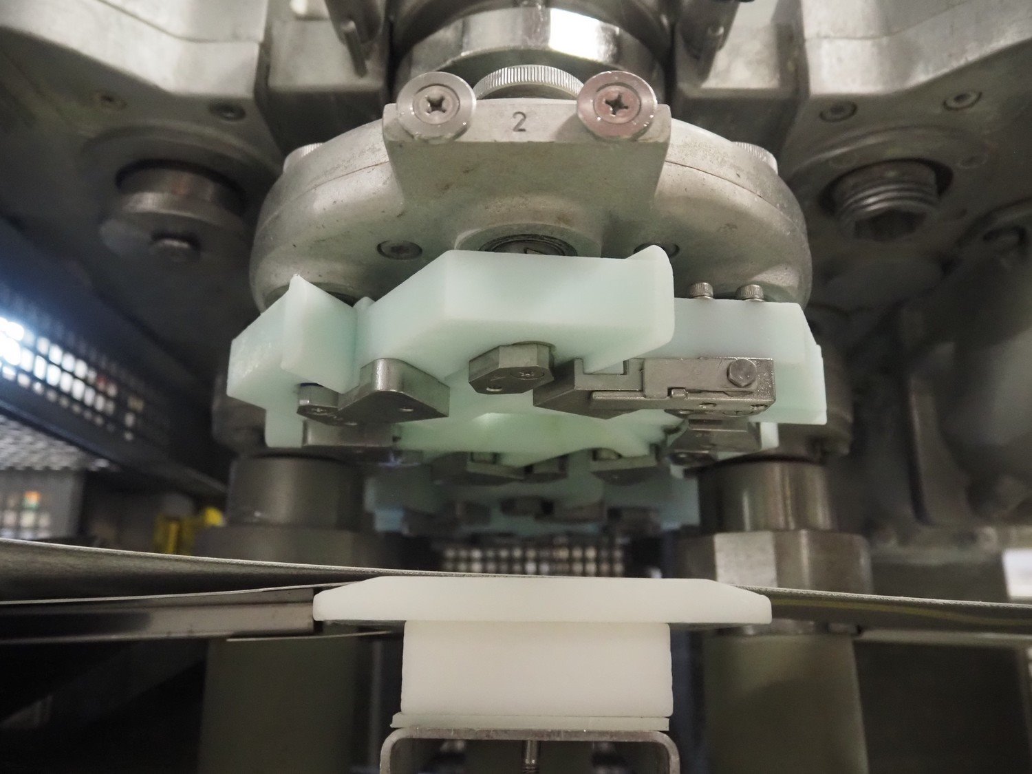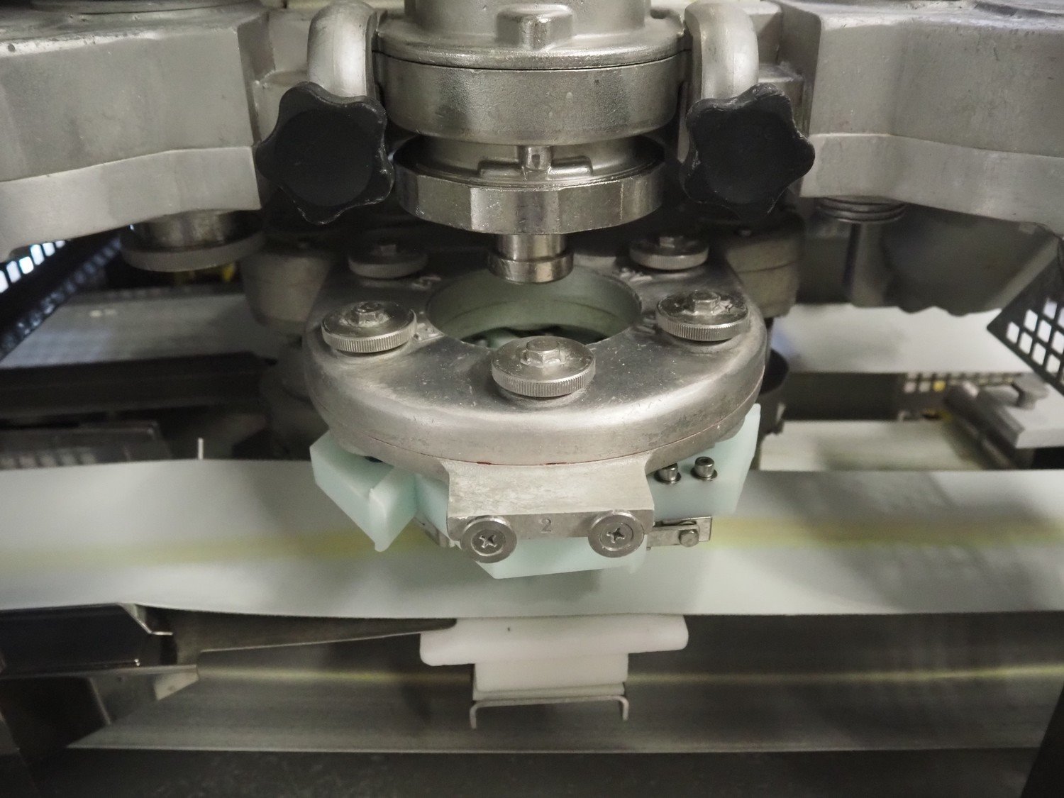 Rheon double lane encrusting machine with flour covering device, model encrusting machine: WN055, serial number: 172, year of construction: oct. 2008, 380 V, 3 Ph, 50/60 Hz, 11.3 A, 4.3 kW, plastic belt, belt width: (2x) 130 mm, total dimensions: 1700 mm x 1000 mm x 2750 mm, model flour covering device: DU220, serial number: 041, year of construction: sep. 2006, 200 V, 3 Ph, 50 Hz, 2.6 A, 0.28 kW, plastic belt, belt width: (2x) 100 mm, total dimensions: 1600 mm x 900 mm x 1750 mm. Kavel locatie: Schultetusstraße 37, 17153 Stavenhagen, Duitsland