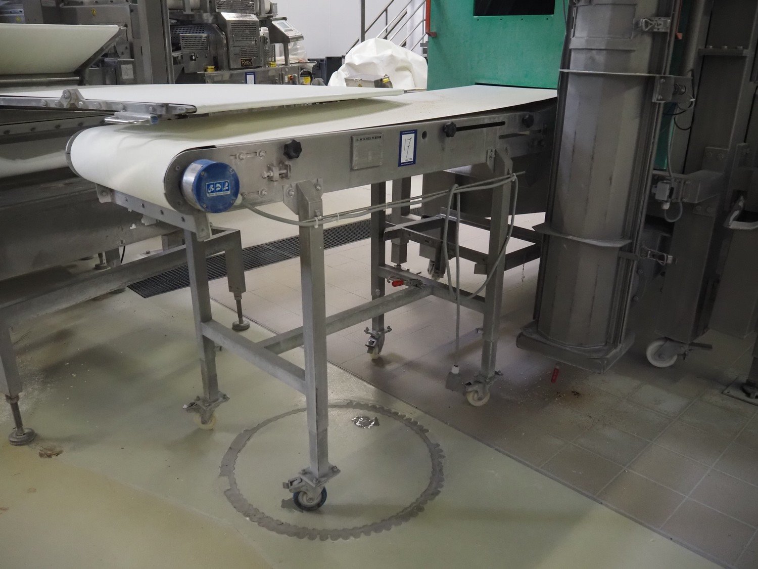 H. Wichelmann mobile transport belt, type: FTB, machine number: 06-1350, year of construction: 2008, 1 kW, plastic belt, belt width: 500 mm, total dimensions: 1800 mm x 650 mm x 1100 mm. Kavel locatie: Schultetusstraße 37, 17153 Stavenhagen, Duitsland