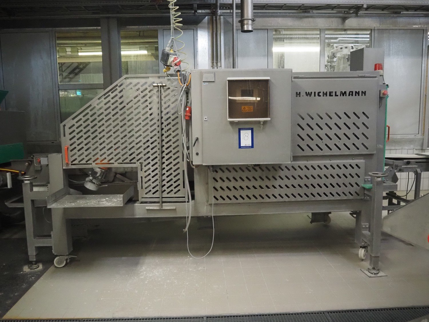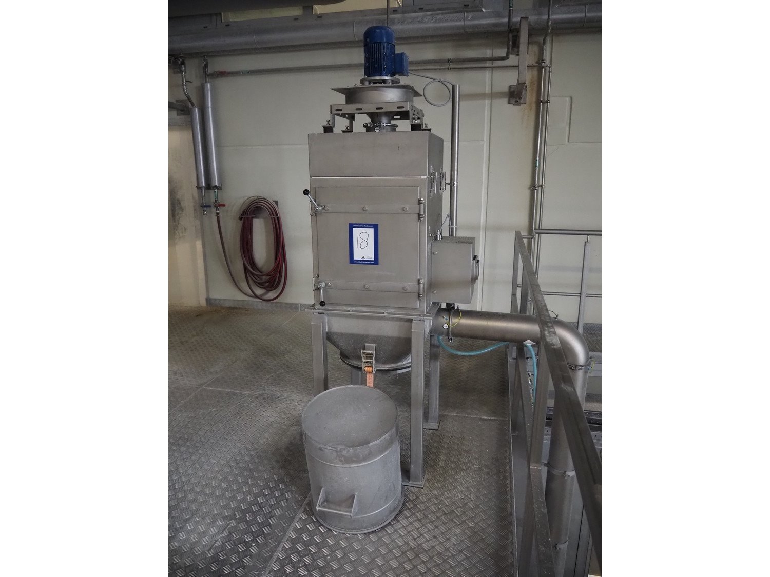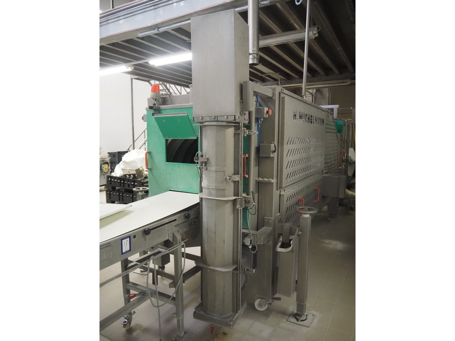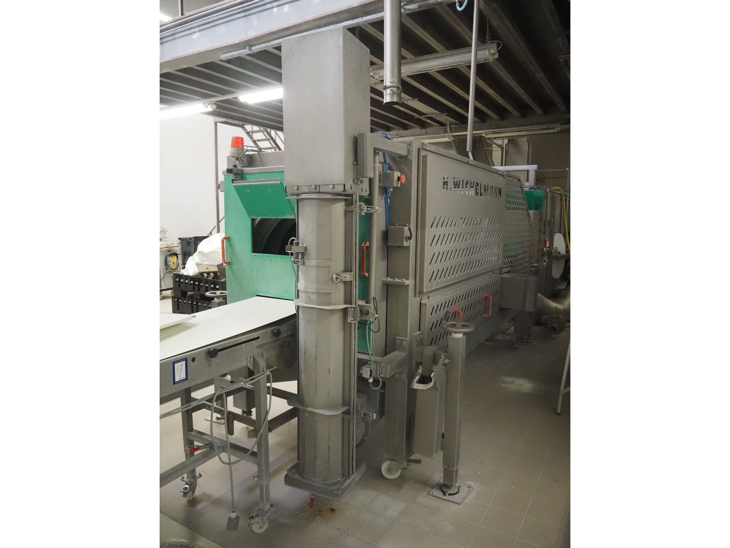 H. Wichelmann mobile coating machine with outfeed vibrating gutter, type: BMA, machine number: 06/838, year of construction: 2006, 10 kW, drum dimensions: Ø 950 mm x 2300 mm, gutter width: 500 mm, s/s screw, diameter: 350 mm, tier: 240 mm, total dimensions: 4500 mm x 2000 mm x 2550 mm, H. Wichelmann filter unit, dimensions: 600 mm x 600 mm x 2000 mm. Kavel locatie: Schultetusstraße 37, 17153 Stavenhagen, Duitsland