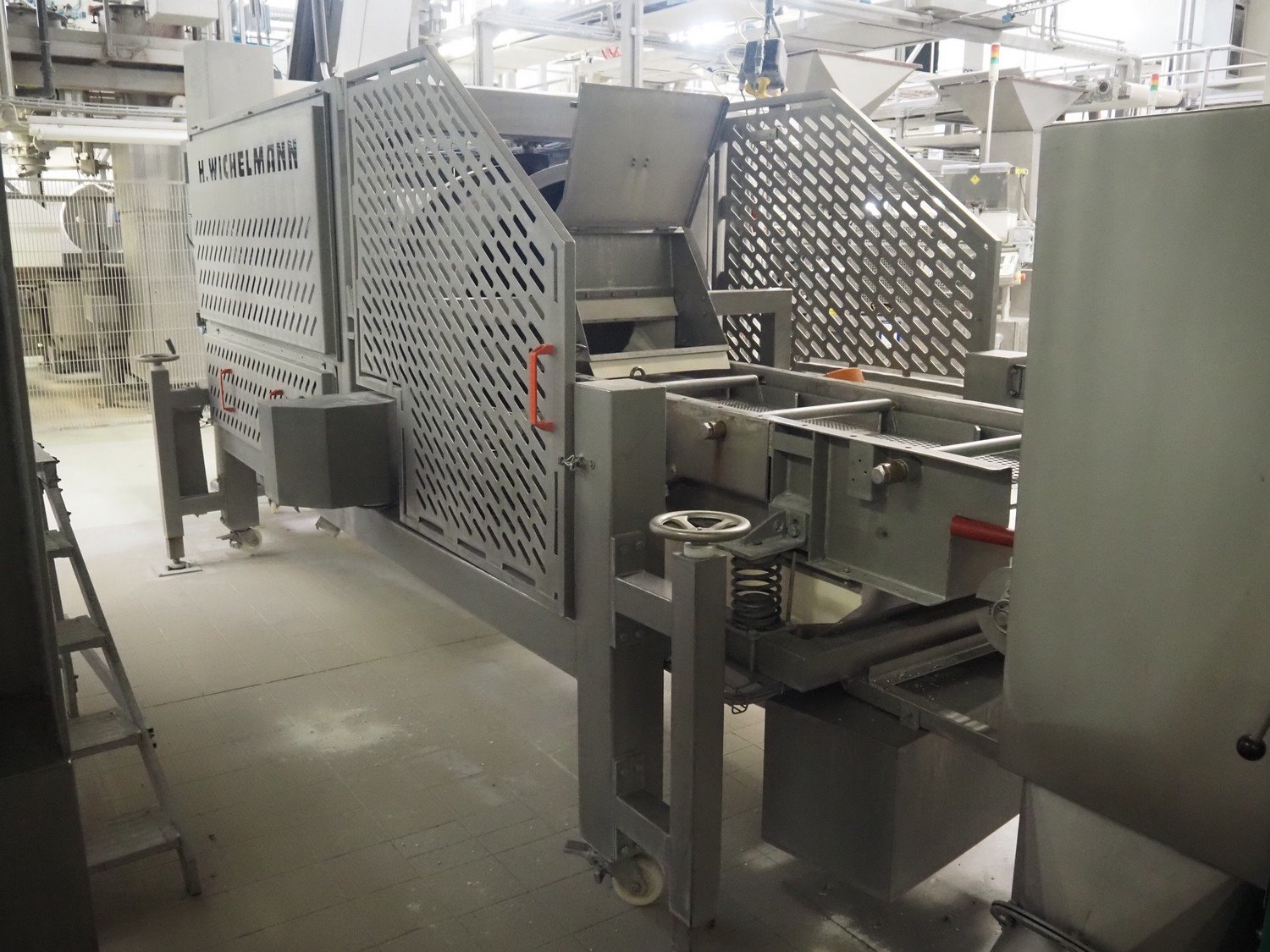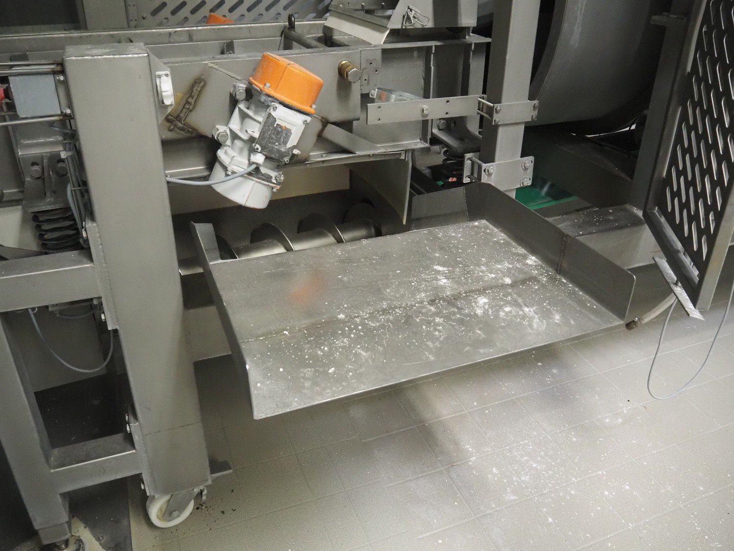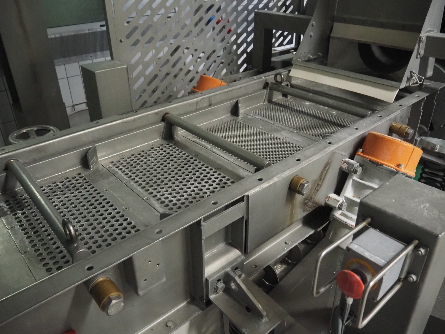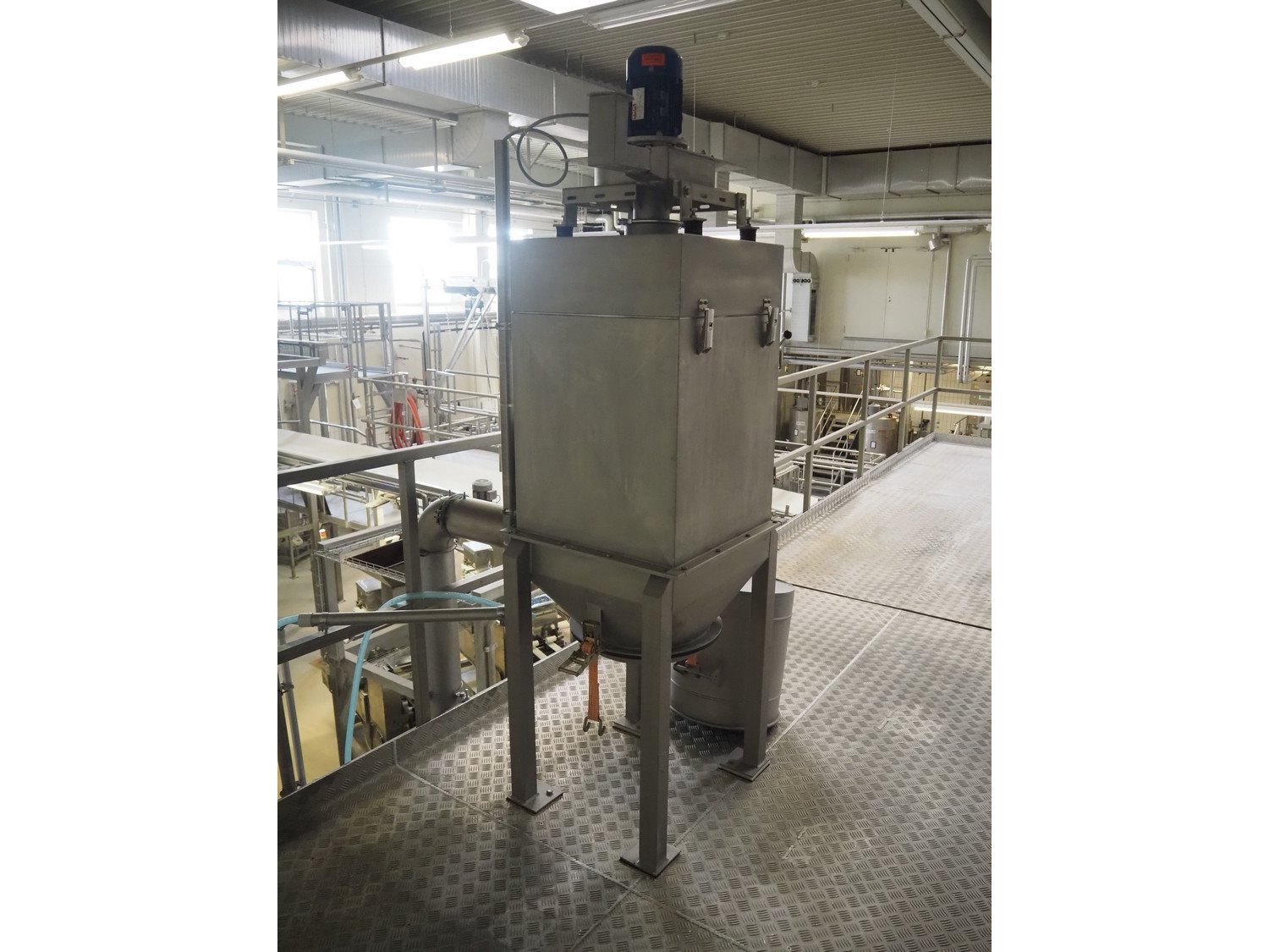H. Wichelmann mobile coating machine with outfeed vibrating gutter, type: BMA, machine number: 06/838, year of construction: 2006, 10 kW, drum dimensions: Ø 950 mm x 2300 mm, gutter width: 500 mm, s/s screw, diameter: 350 mm, tier: 240 mm, total dimensions: 4500 mm x 2000 mm x 2550 mm, H. Wichelmann filter unit, dimensions: 600 mm x 600 mm x 2000 mm. Kavel locatie: Schultetusstraße 37, 17153 Stavenhagen, Duitsland