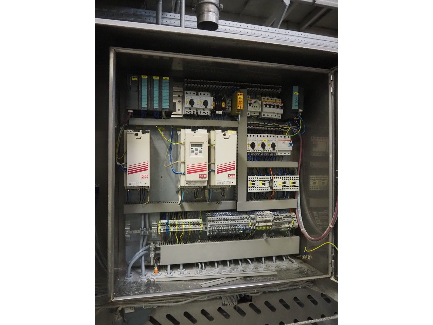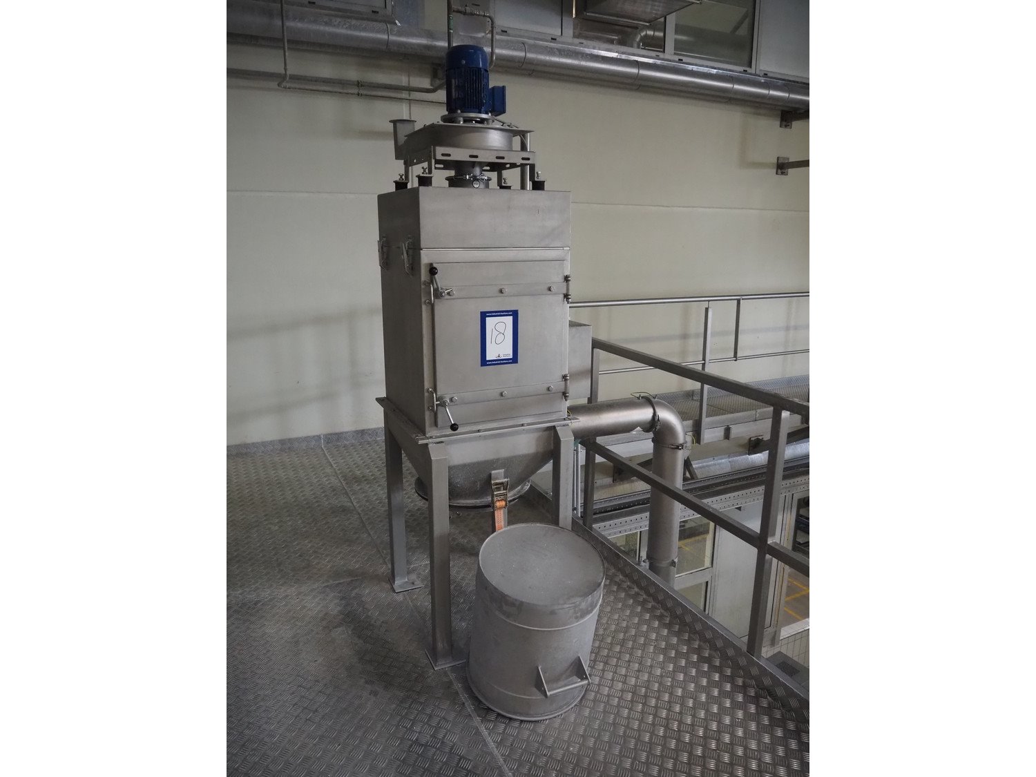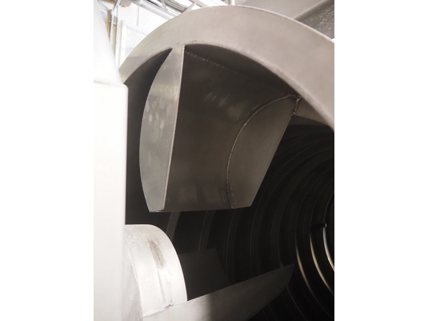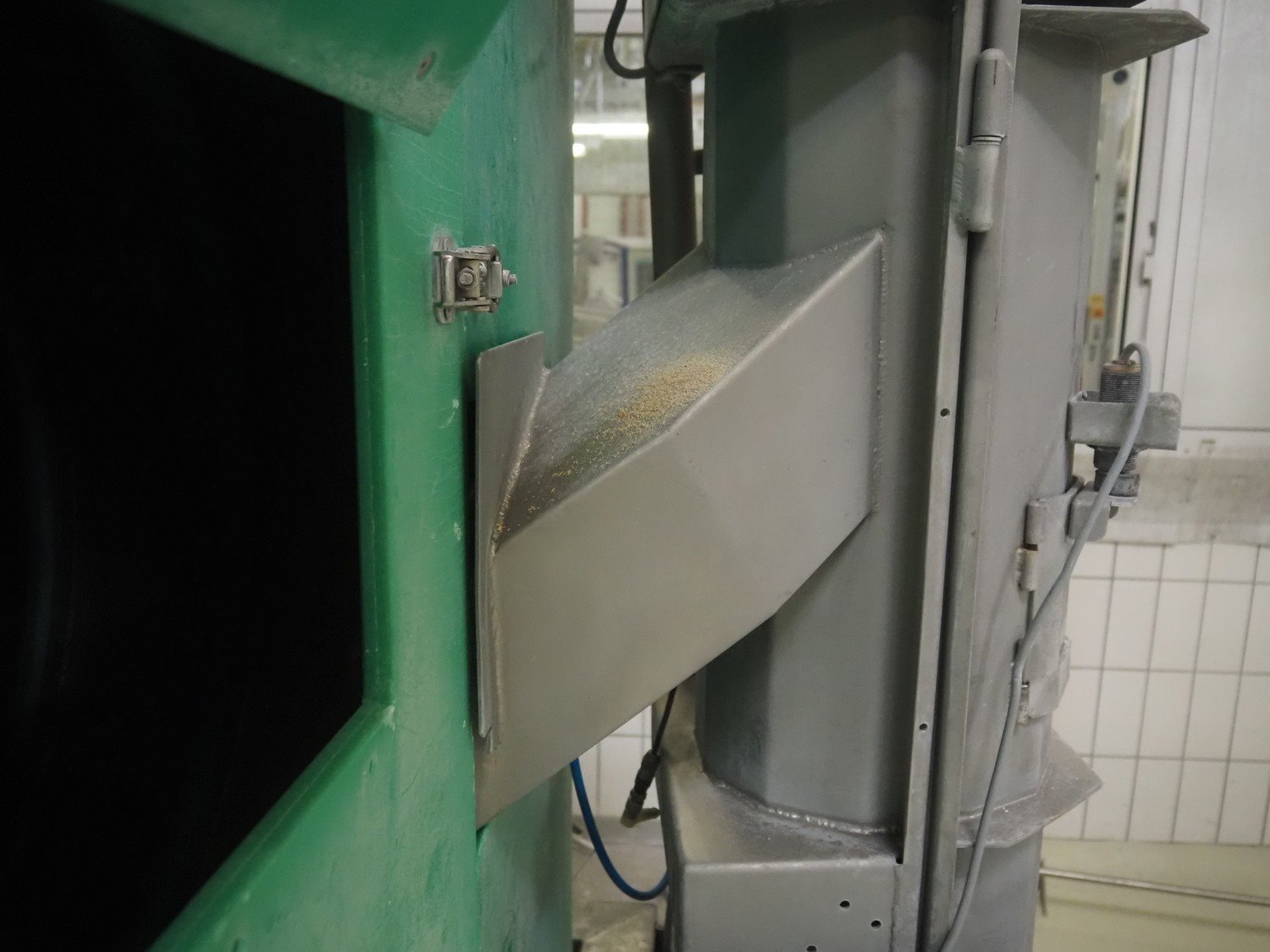 H. Wichelmann mobile coating machine with outfeed vibrating gutter, type: BMA, machine number: 06/838, year of construction: 2006, 10 kW, drum dimensions: Ø 950 mm x 2300 mm, gutter width: 500 mm, s/s screw, diameter: 350 mm, tier: 240 mm, total dimensions: 4500 mm x 2000 mm x 2550 mm, H. Wichelmann filter unit, dimensions: 600 mm x 600 mm x 2000 mm. Kavel locatie: Schultetusstraße 37, 17153 Stavenhagen, Duitsland