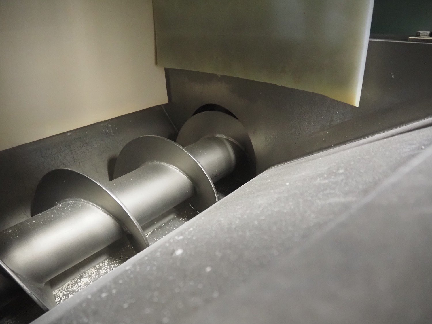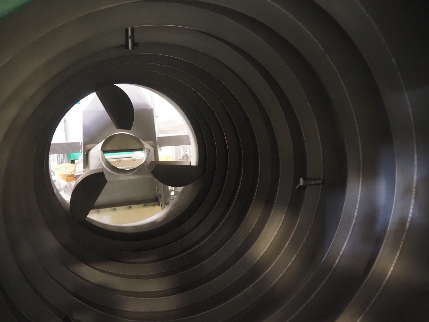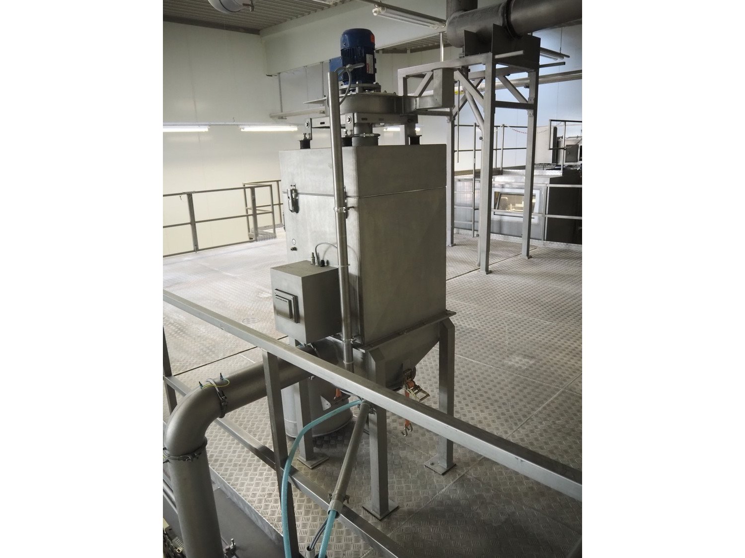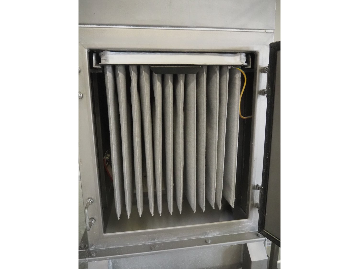 H. Wichelmann mobile coating machine with outfeed vibrating gutter, type: BMA, machine number: 06/838, year of construction: 2006, 10 kW, drum dimensions: Ø 950 mm x 2300 mm, gutter width: 500 mm, s/s screw, diameter: 350 mm, tier: 240 mm, total dimensions: 4500 mm x 2000 mm x 2550 mm, H. Wichelmann filter unit, dimensions: 600 mm x 600 mm x 2000 mm. Kavel locatie: Schultetusstraße 37, 17153 Stavenhagen, Duitsland