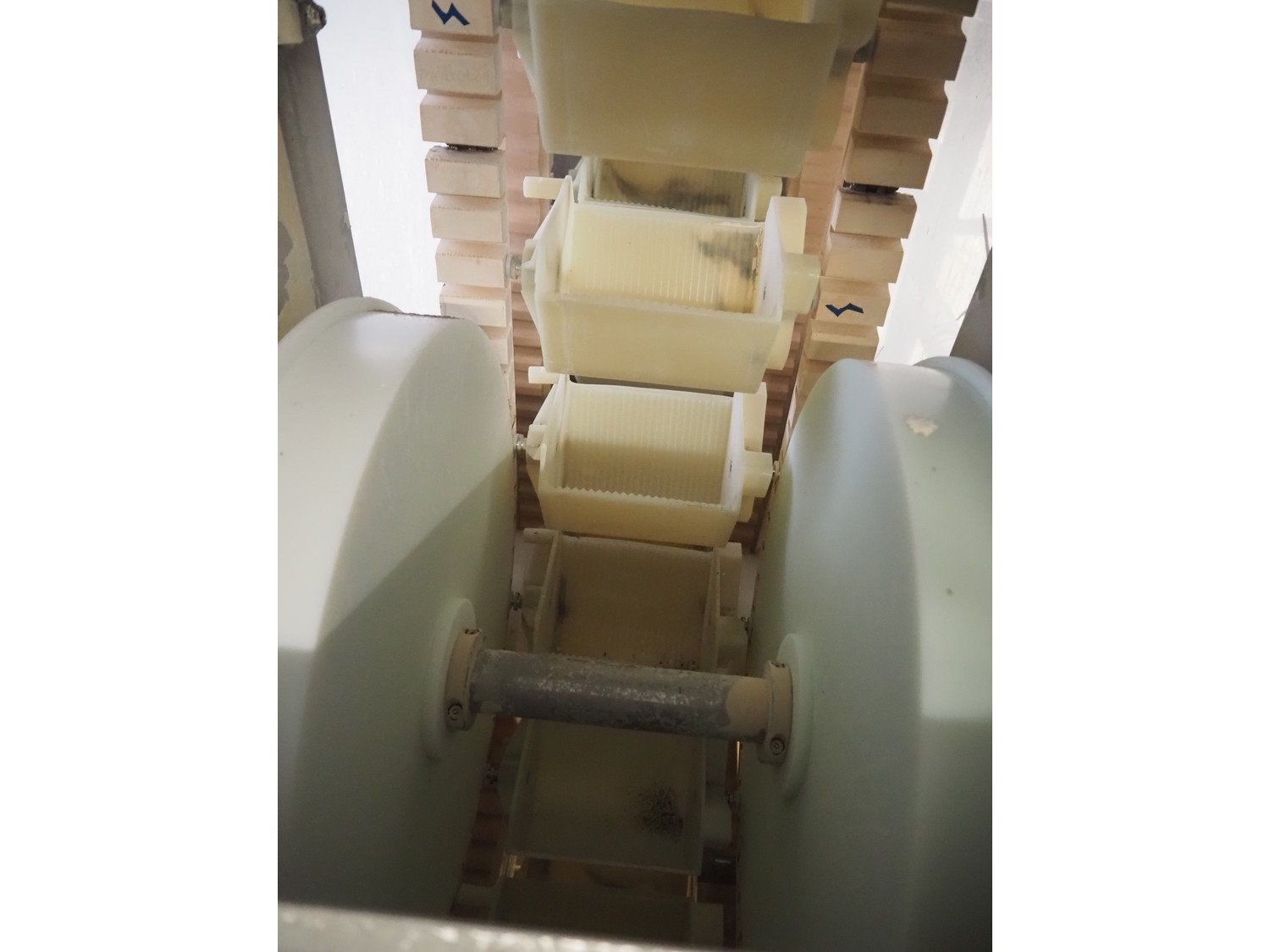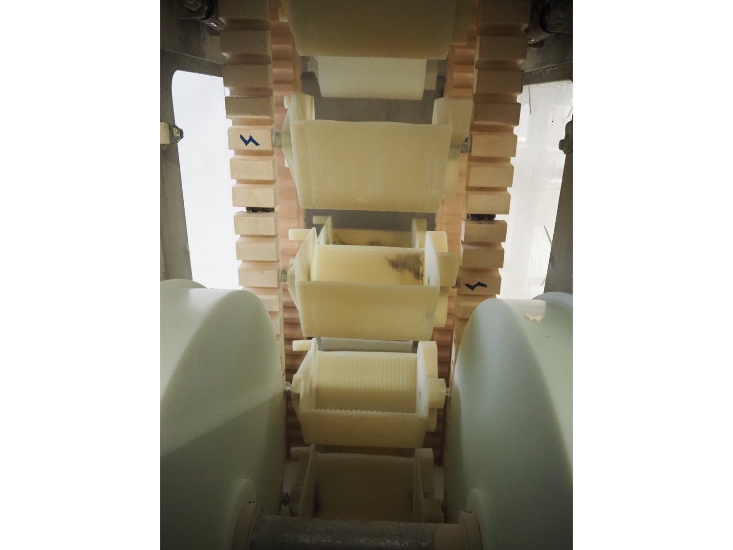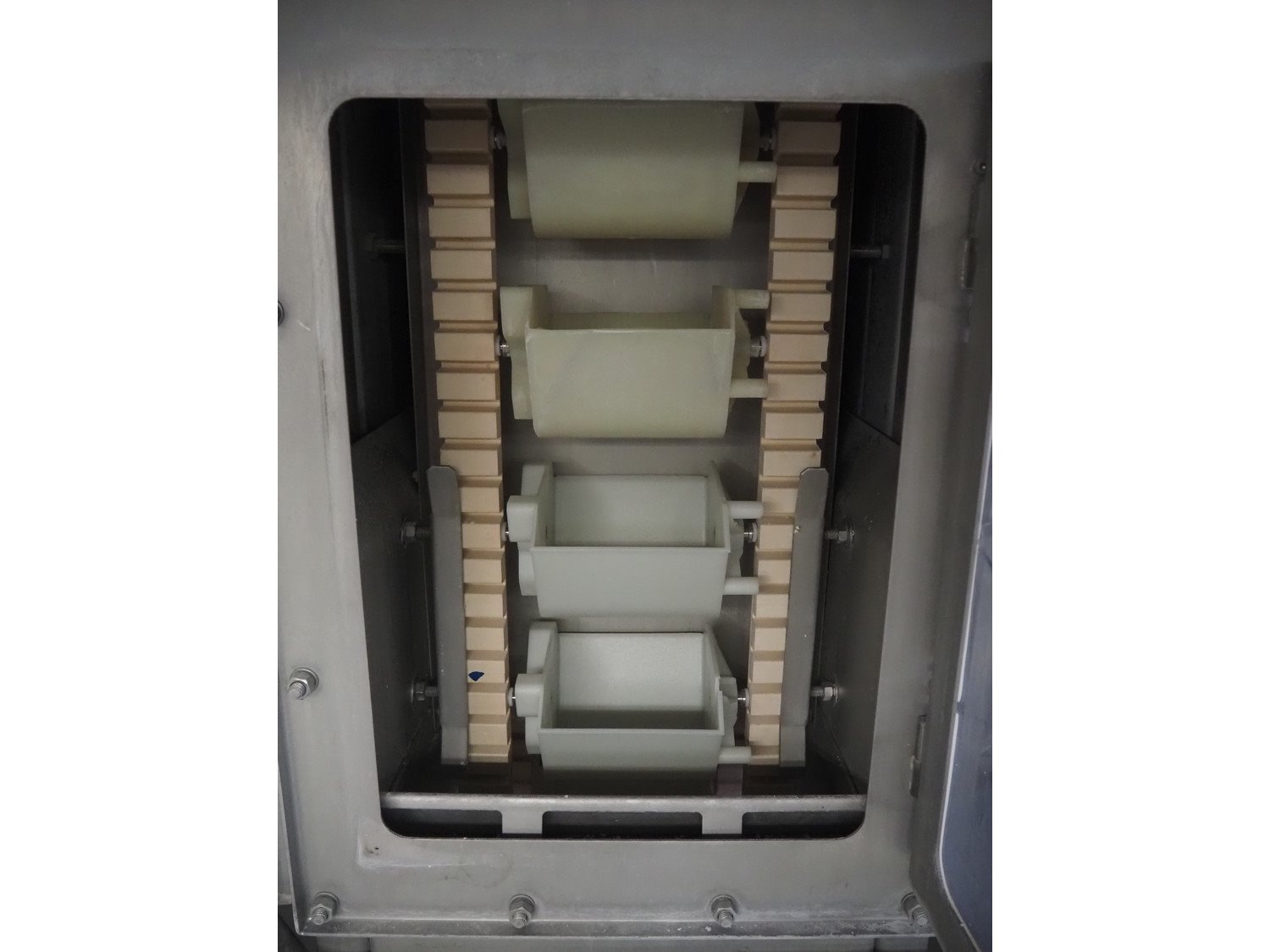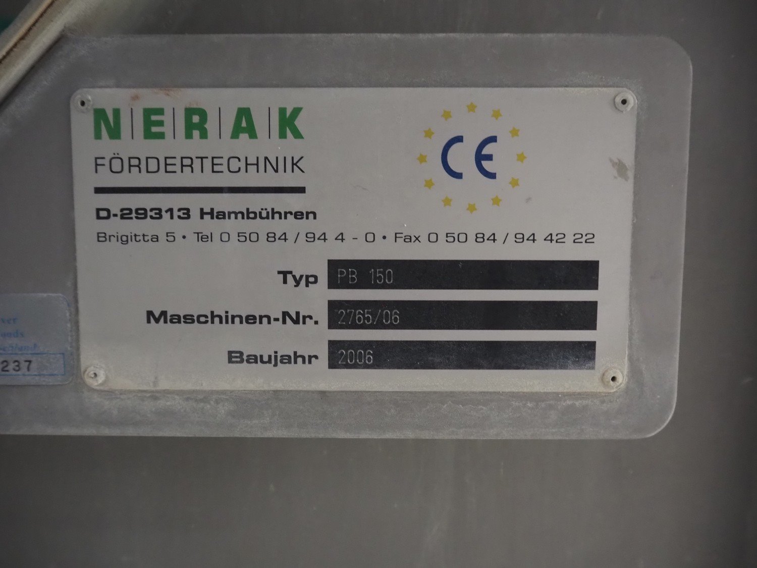 Nerak elevating belt, type: PB 150, machine number: 2765/06, year of construction: 2006, plastic bucket belt, dimensions each bucket: 190 mm x 160 mm x 140 mm, total dimensions: 4000 mm x 650 mm x 6000 mm. Kavel locatie: Schultetusstraße 37, 17153 Stavenhagen, Duitsland