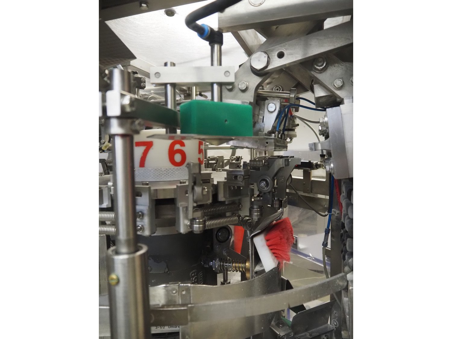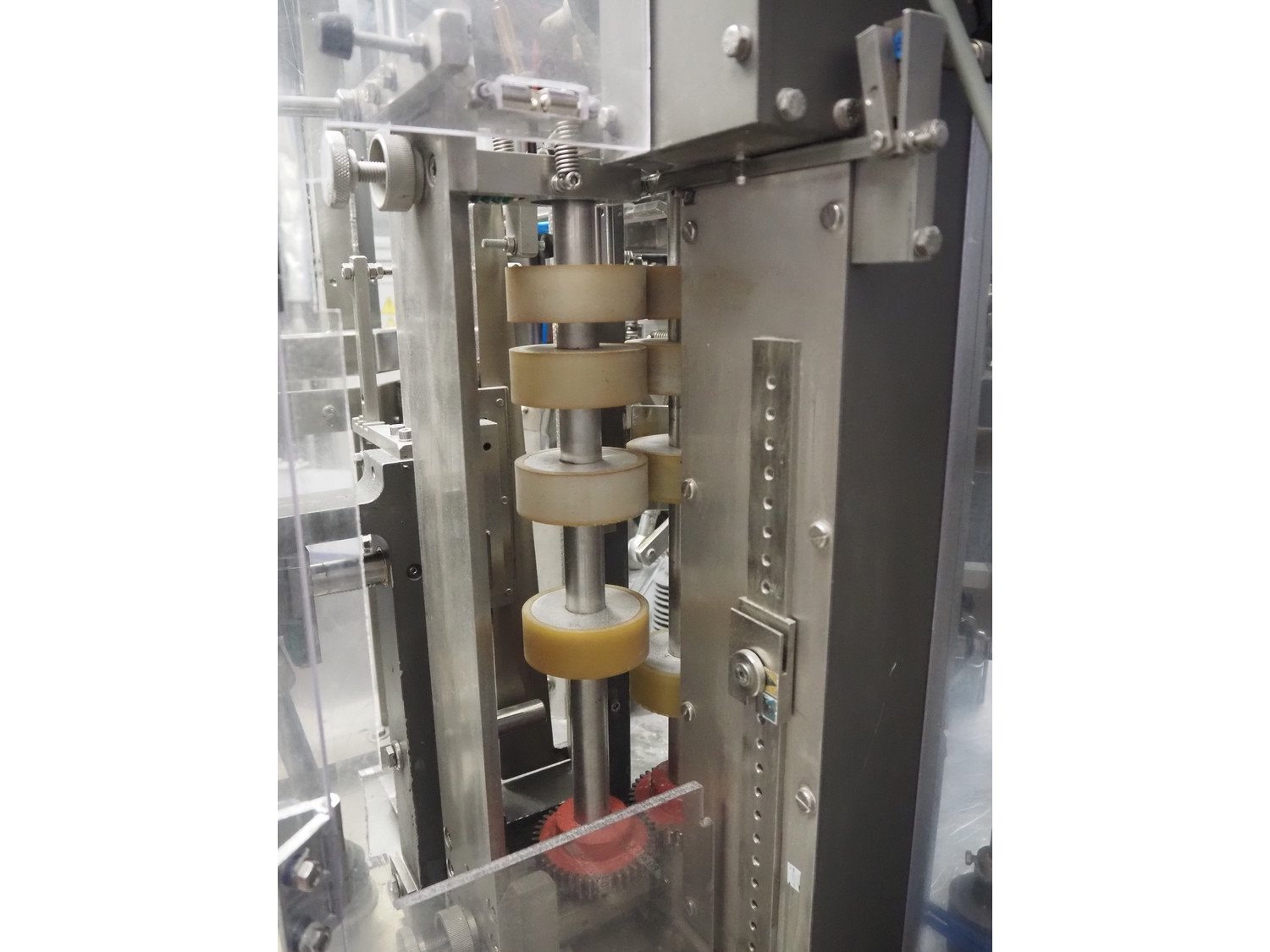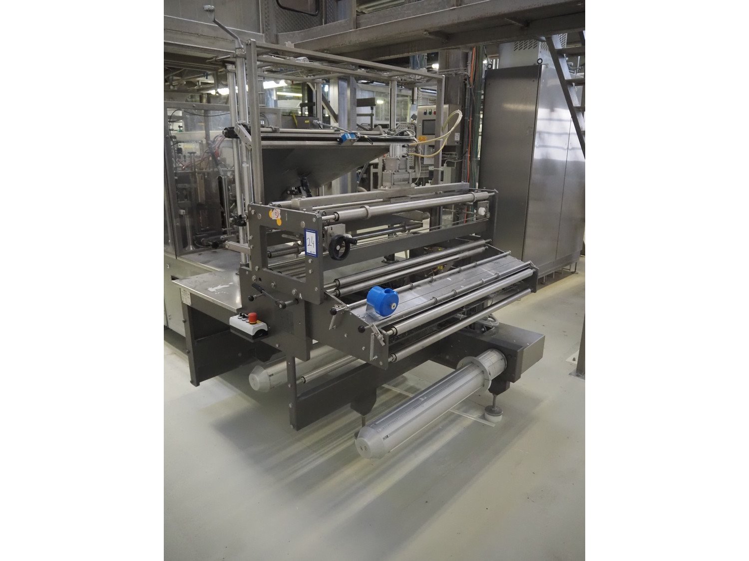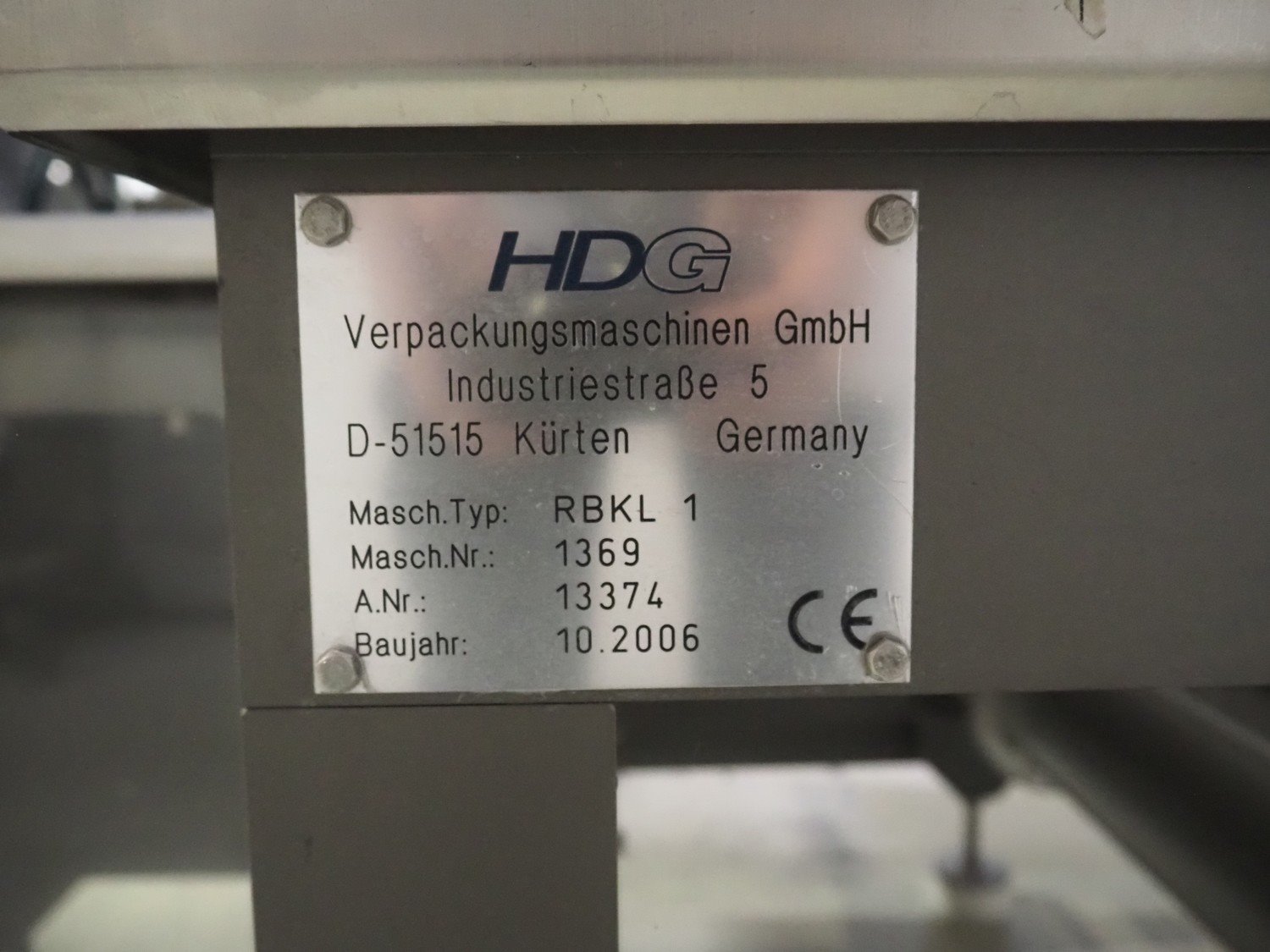 HDG Verpackungsmaschinen GmbH form- fill- and seal machine for pouches, type: RBKL 1, machine number: 1369, year of construction: 10.2006, rotary table system with 8 stations, plastic wire belt, belt width: 200 / 140 mm, total dimensions: 5550 mm x 1600 mm x 2300 mm. Kavel locatie: Schultetusstraße 37, 17153 Stavenhagen, Duitsland