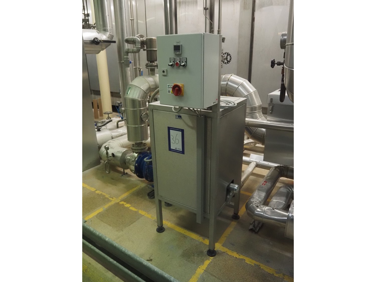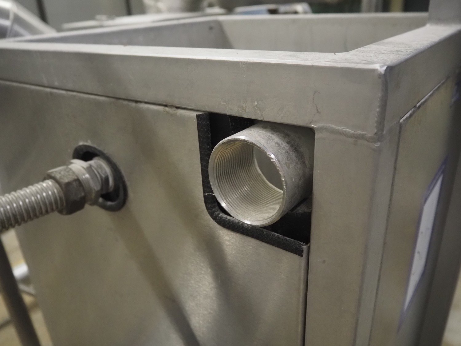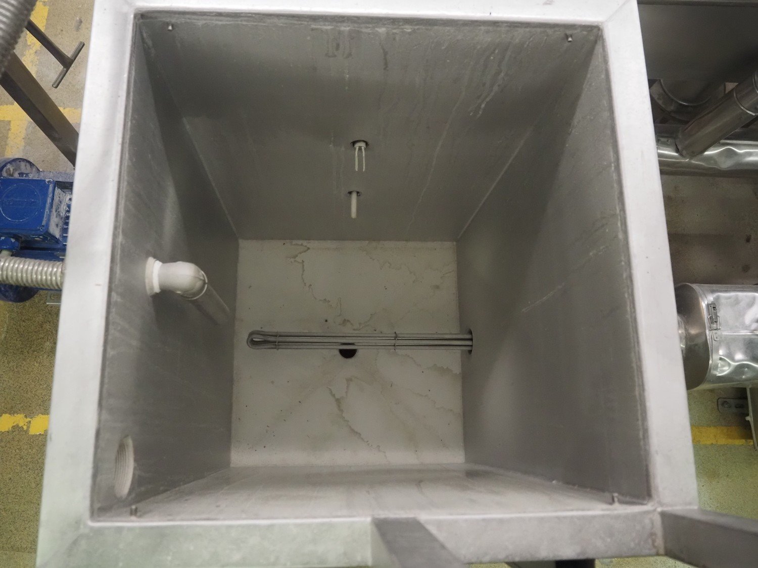 S/s balance tank with heating element, dimensions: 600 mm x 600 mm x 1650 mm. Kavel locatie: Schultetusstraße 37, 17153 Stavenhagen, Duitsland
