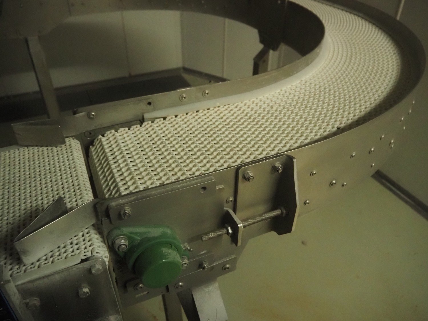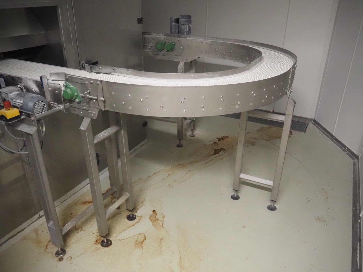 180° curve conveyor, plastic mesh belt, belt width: 240 mm, total dimensions: 2000 mm x 1150 mm x 1300 mm. Kavel locatie: Schultetusstraße 37, 17153 Stavenhagen, Duitsland