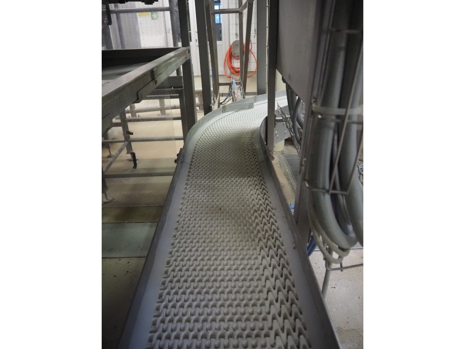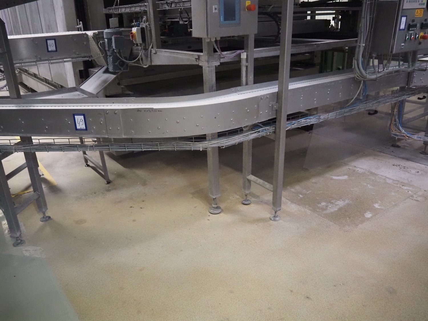 Transport belt, s/s mesh belt, belt width: 220 mm, total dimensions: 7300 mm x 1200 mm x 1170 mm. Without frame. Kavel locatie: Schultetusstraße 37, 17153 Stavenhagen, Duitsland