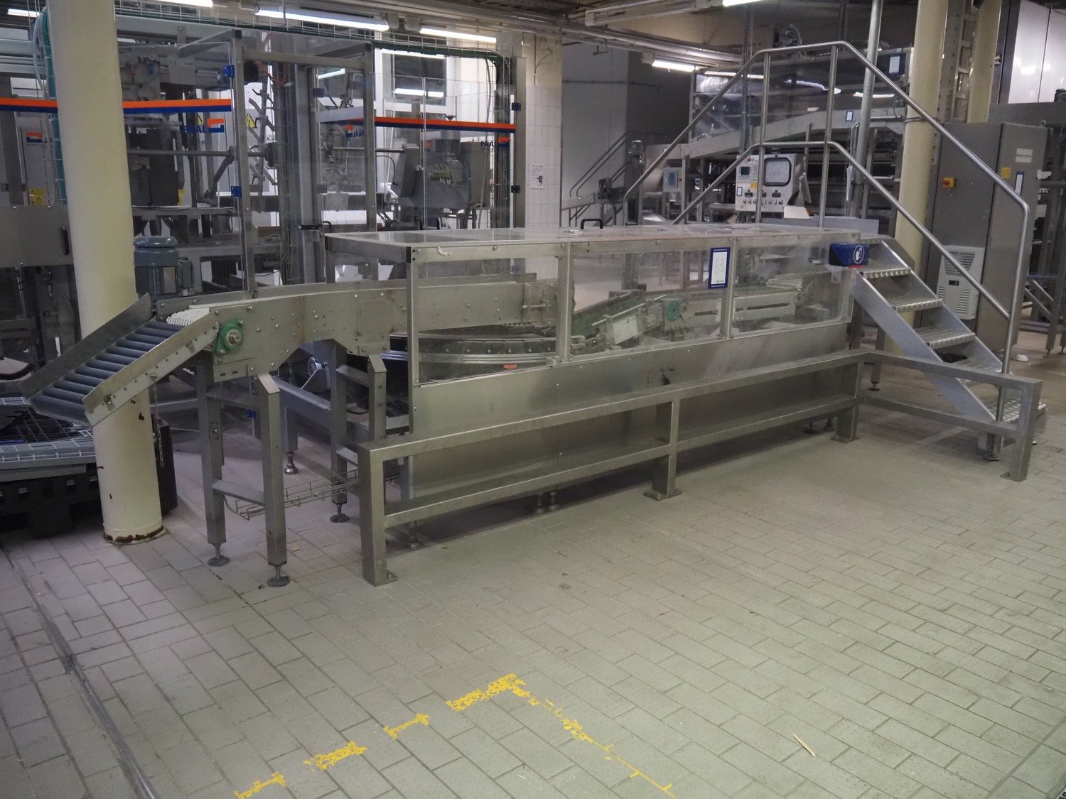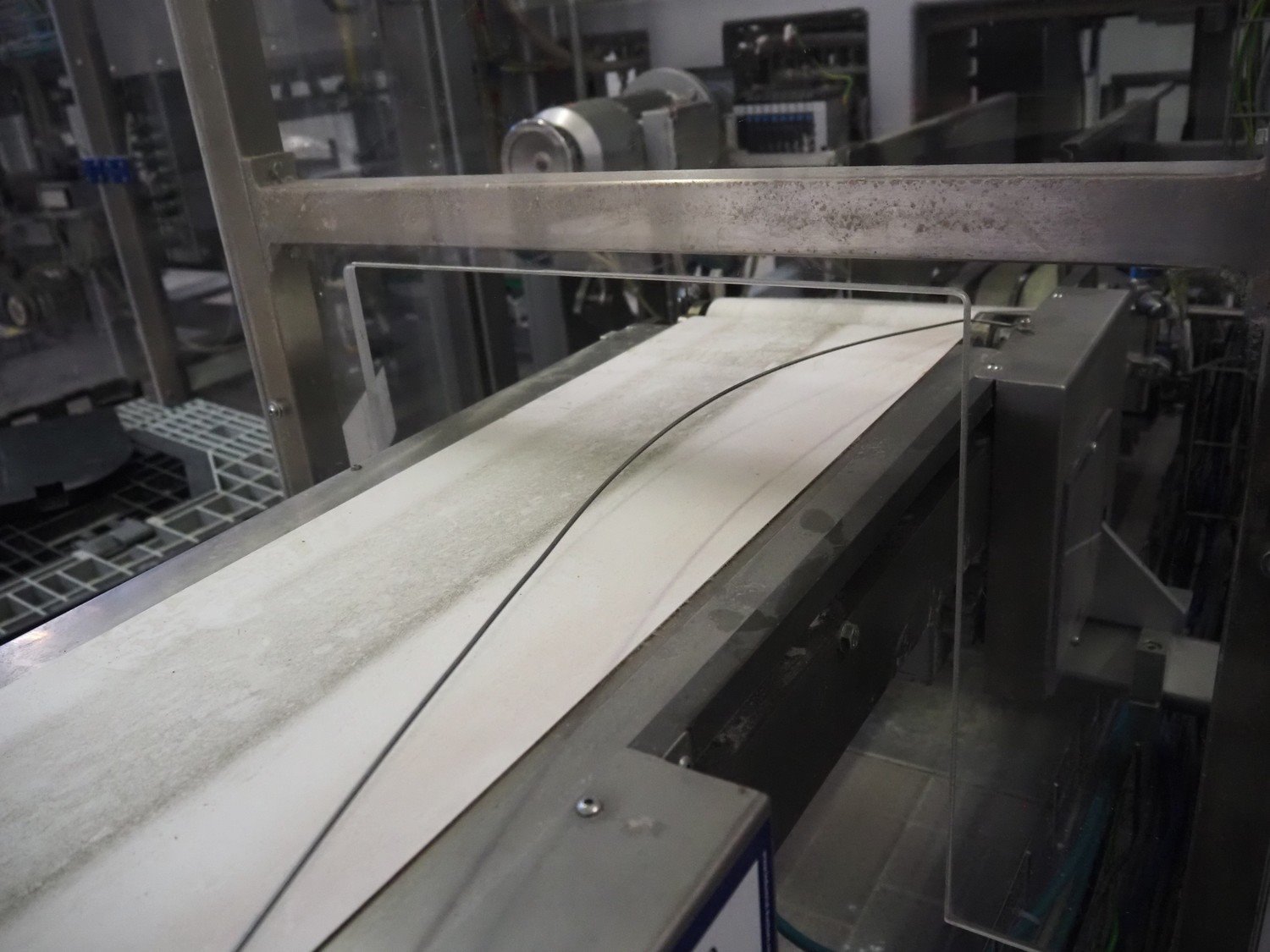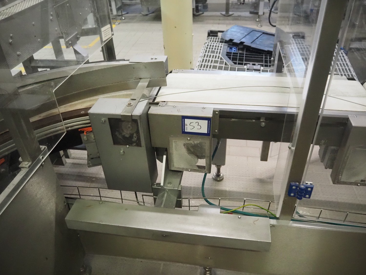 Ammeraal Beltech GmbH line dividing belt, plastic belt, belt width: 270 mm and 250 mm, plastic mesh belt, belt width: 260 mm, cloth belt, belt width: 300 mm, total dimensions: 3700 mm x 2300 mm x 1200 mm. Kavel locatie: Schultetusstraße 37, 17153 Stavenhagen, Duitsland