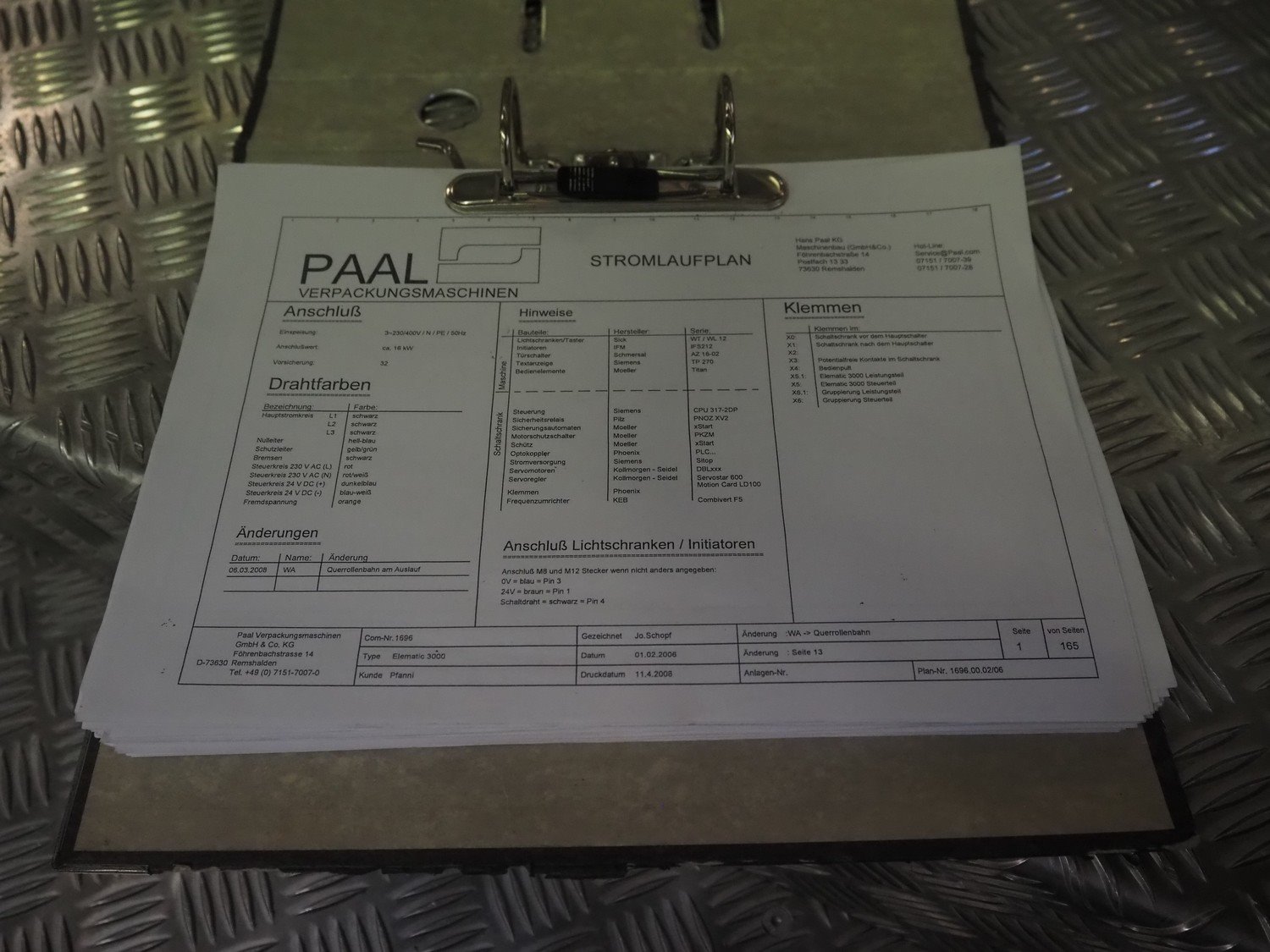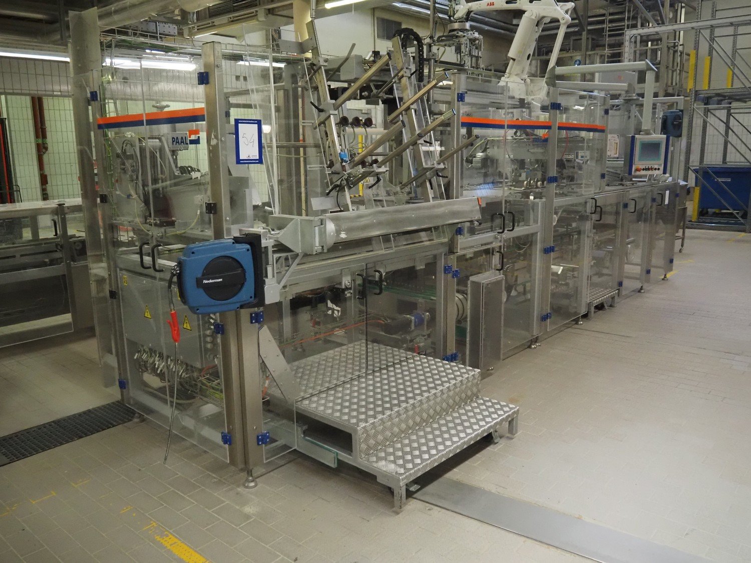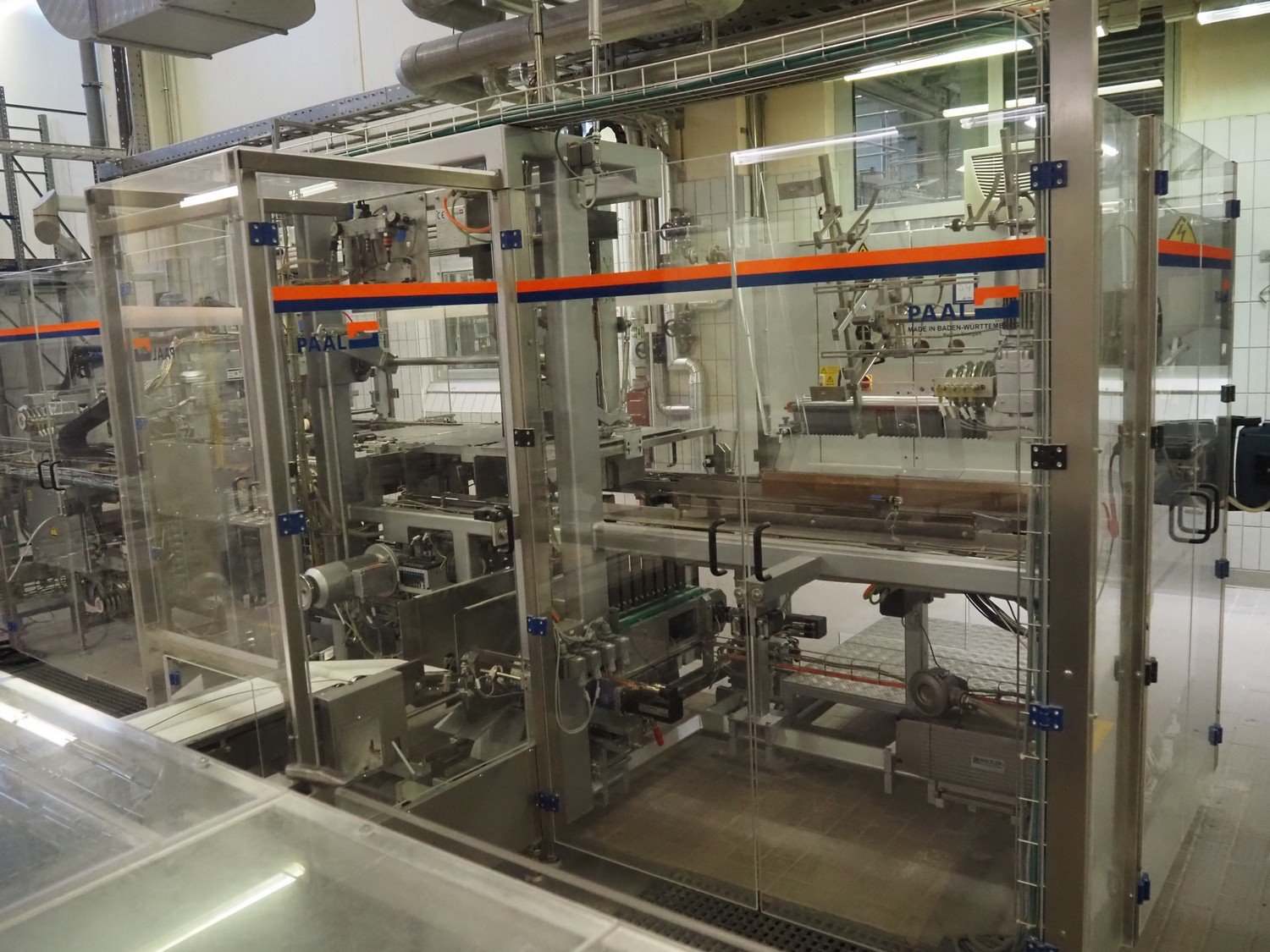 Hans Paal KG Maschinenbau GmbH & Co case packer, type: ELE 3000 S, year of construction: 2006, 230/400 V, 3 Ph, 50 Hz. 9.5 kW, 32/53 A, plastic infeed belt, belt width: (4x) 50 mm, s/s outfeed rollers, roller width: 300 mm, total dimensions: 6400 mm x 2500 mm x 2800 mm, steel switch cabinet, dimensions: 2800 mm x 500 mm x 2100 mm. Kavel locatie: Schultetusstraße 37, 17153 Stavenhagen, Duitsland