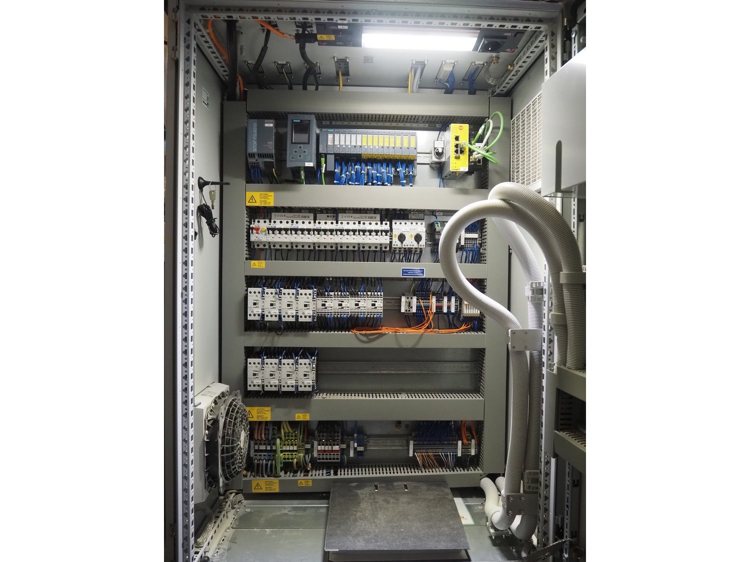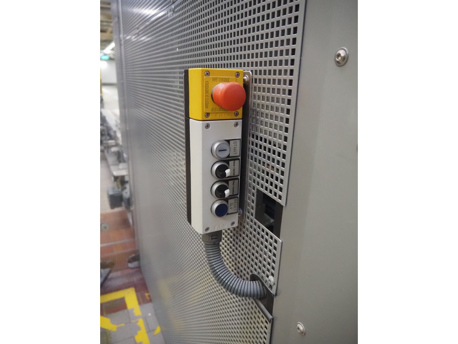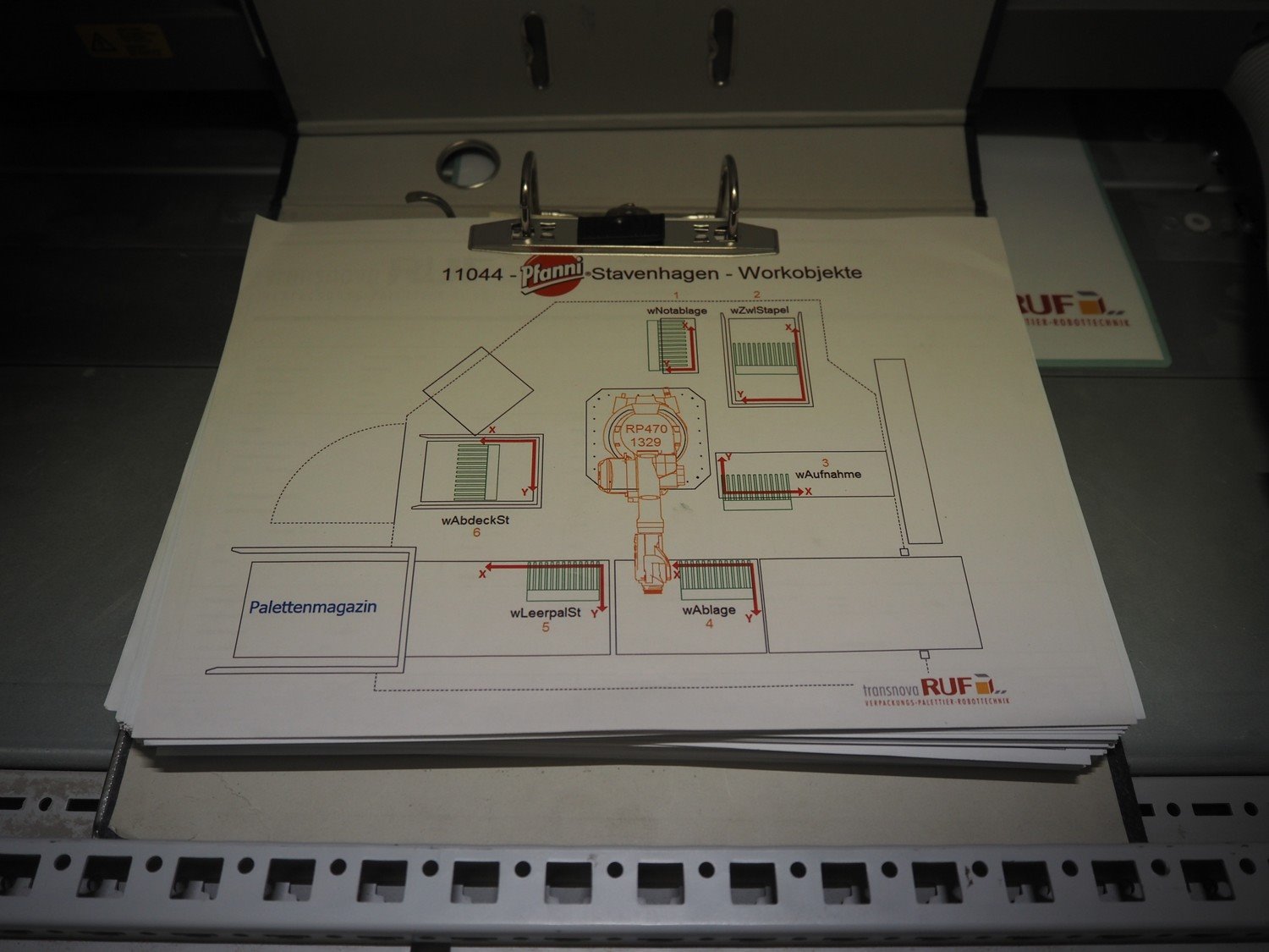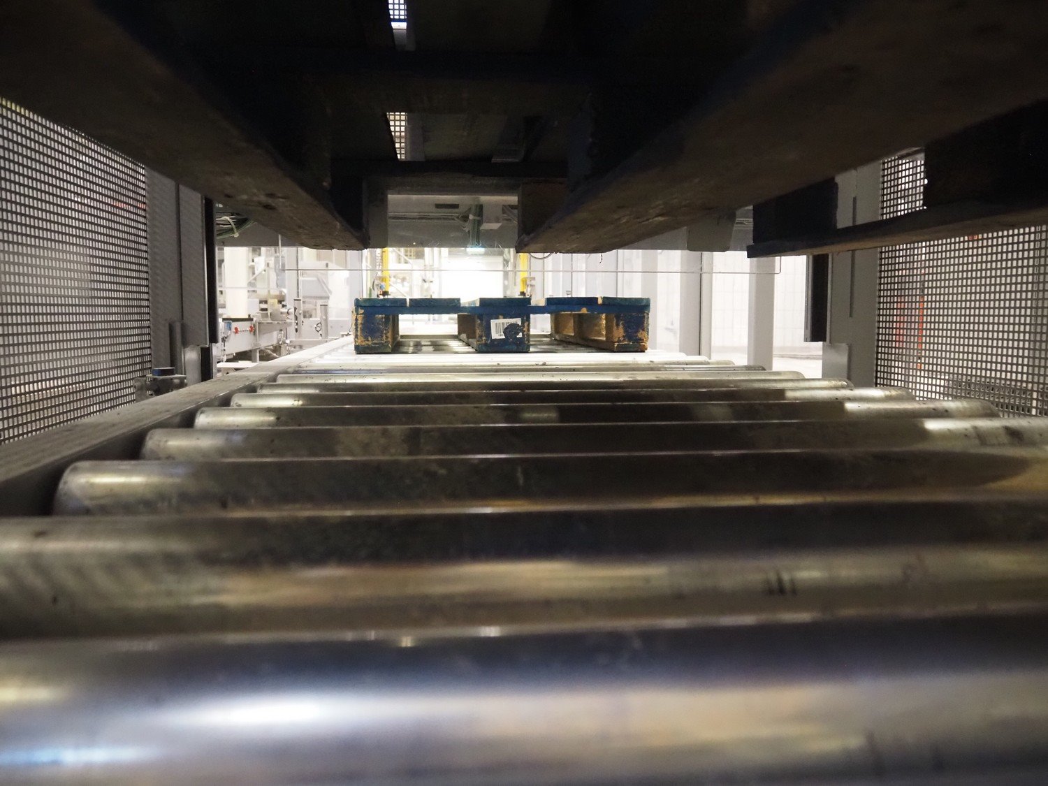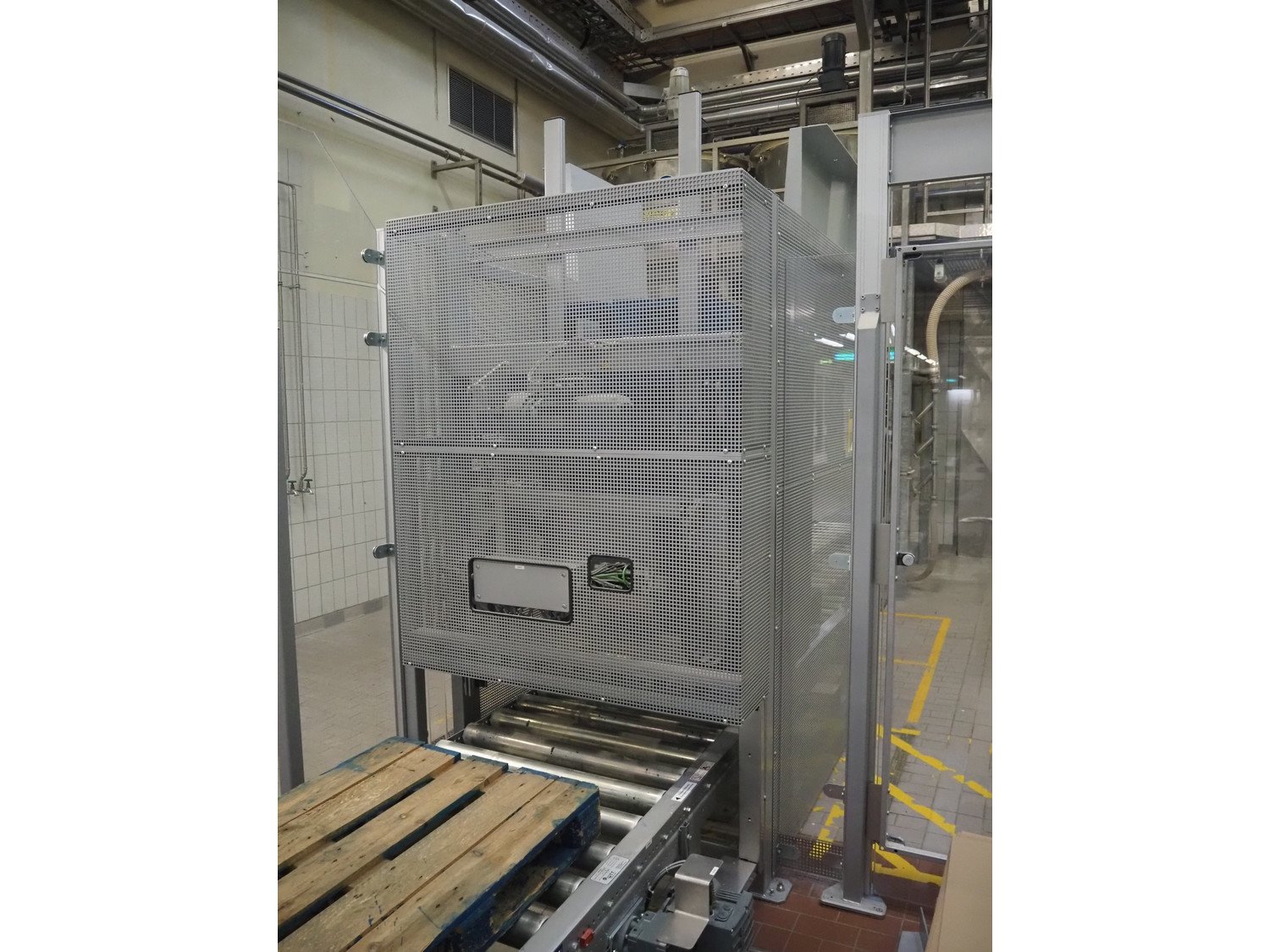 Transnova RUF / WTT Fördertechnik conveyor system with pallet de-stacker, type: 470, machine number: 1329, year of construction: 2019, 400/230 V, 50 Hz, 14.7 KVA, s/s rollers, roller width: 910 / 500 / 400 mm, dimensions de-stacker: 1800 mm x 1350 mm x 2870 mm, conveyor length: 6000 mm, 2000 mm and 3000 mm, steel switch cabinet, dimensions: 800 mm x 500 mm x 1180 mm. Kavel locatie: Schultetusstraße 37, 17153 Stavenhagen, Duitsland