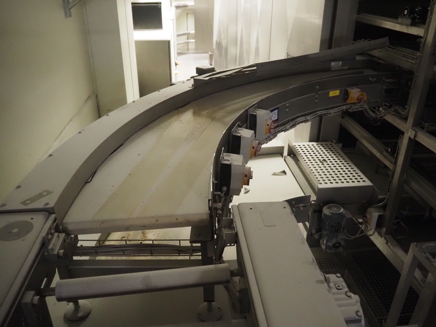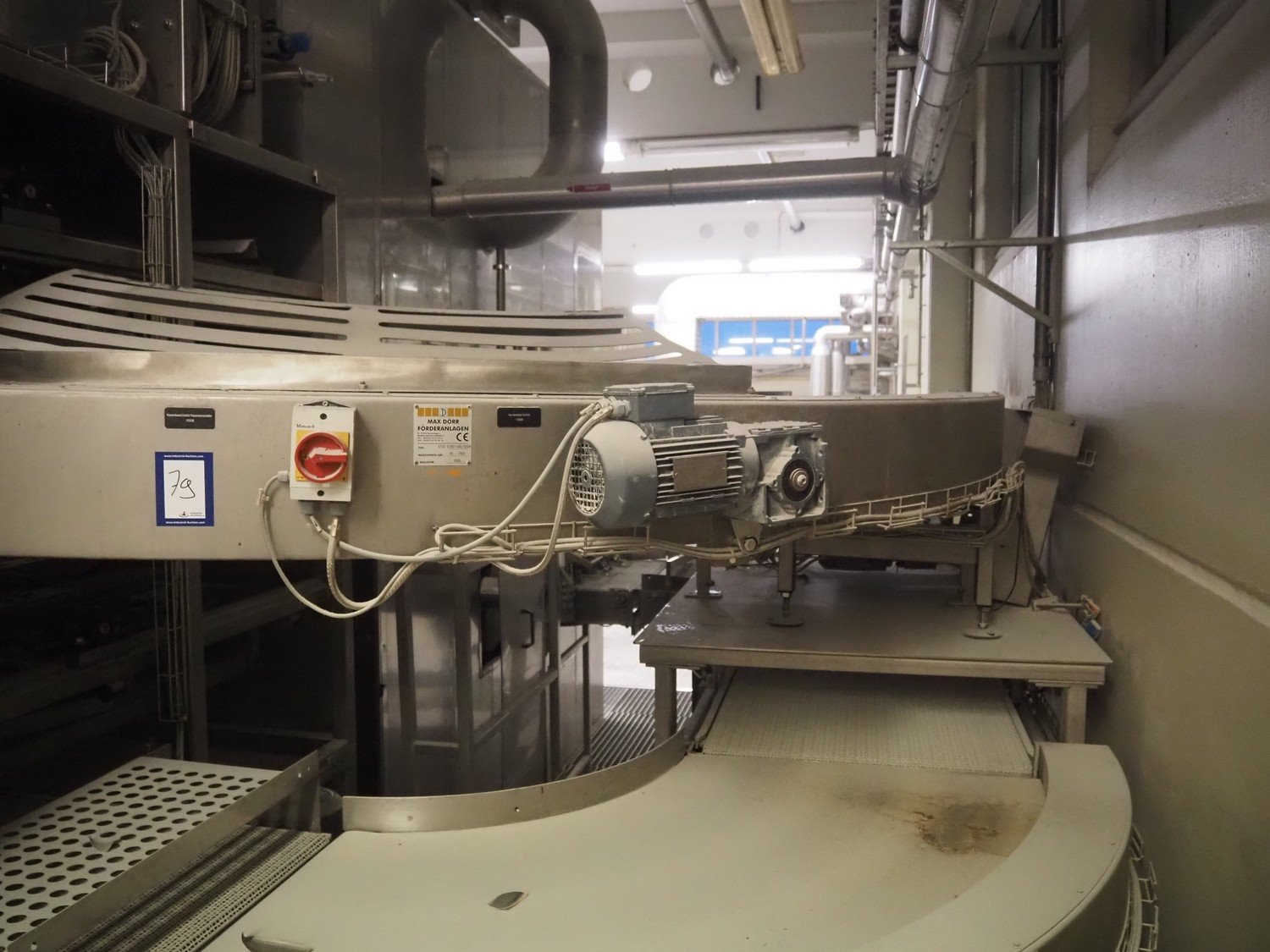 Max Dörr 90° curve conveyor, type: ST22 ES90°/400/1350R, machine number: 05-7103, year of construction: 2005, plastic belt, belt width: 400 mm, total dimensions: 1800 mm x 1600 mm x 650 mm. Kavel locatie: Schultetusstraße 37, 17153 Stavenhagen, Duitsland