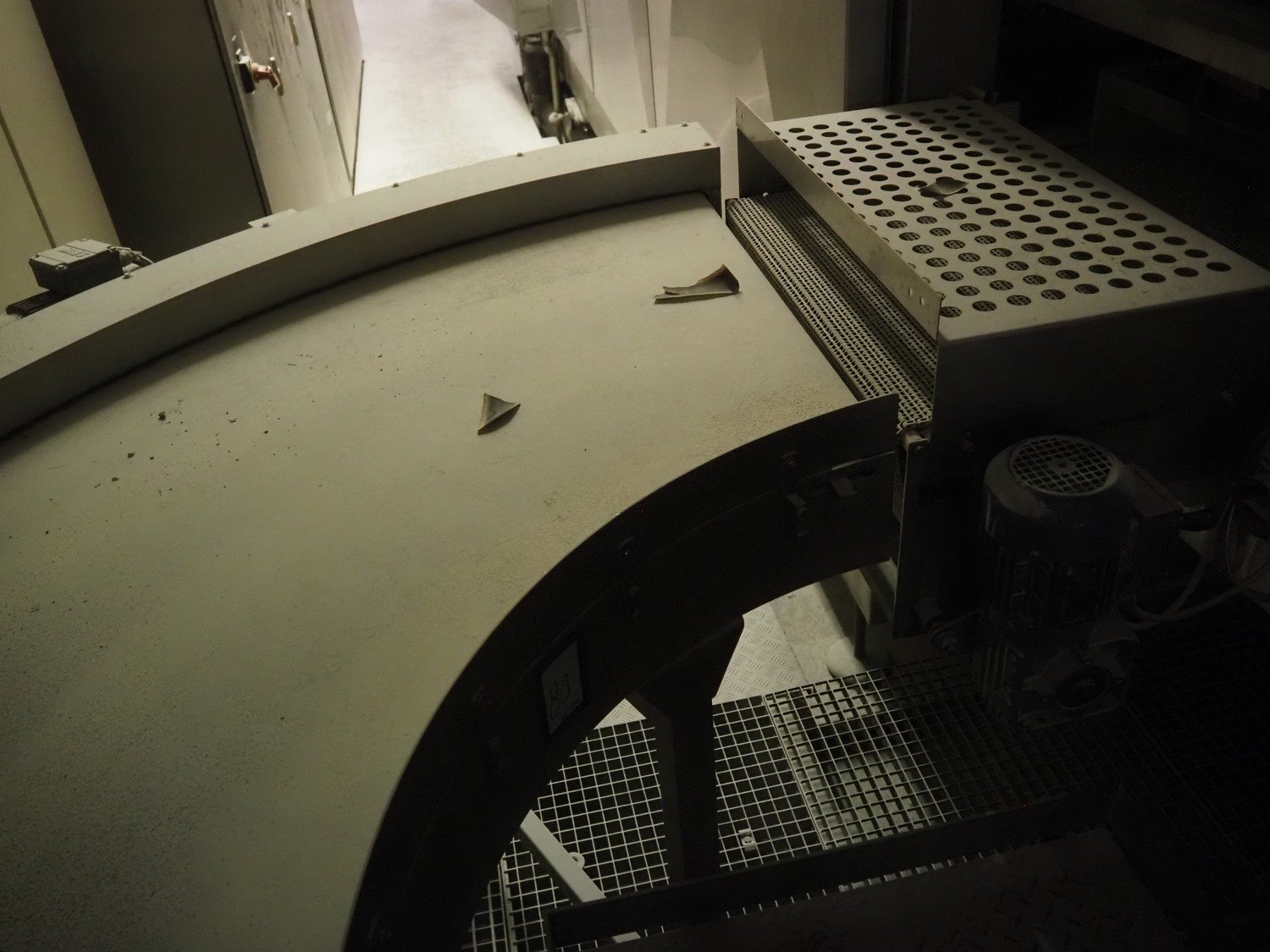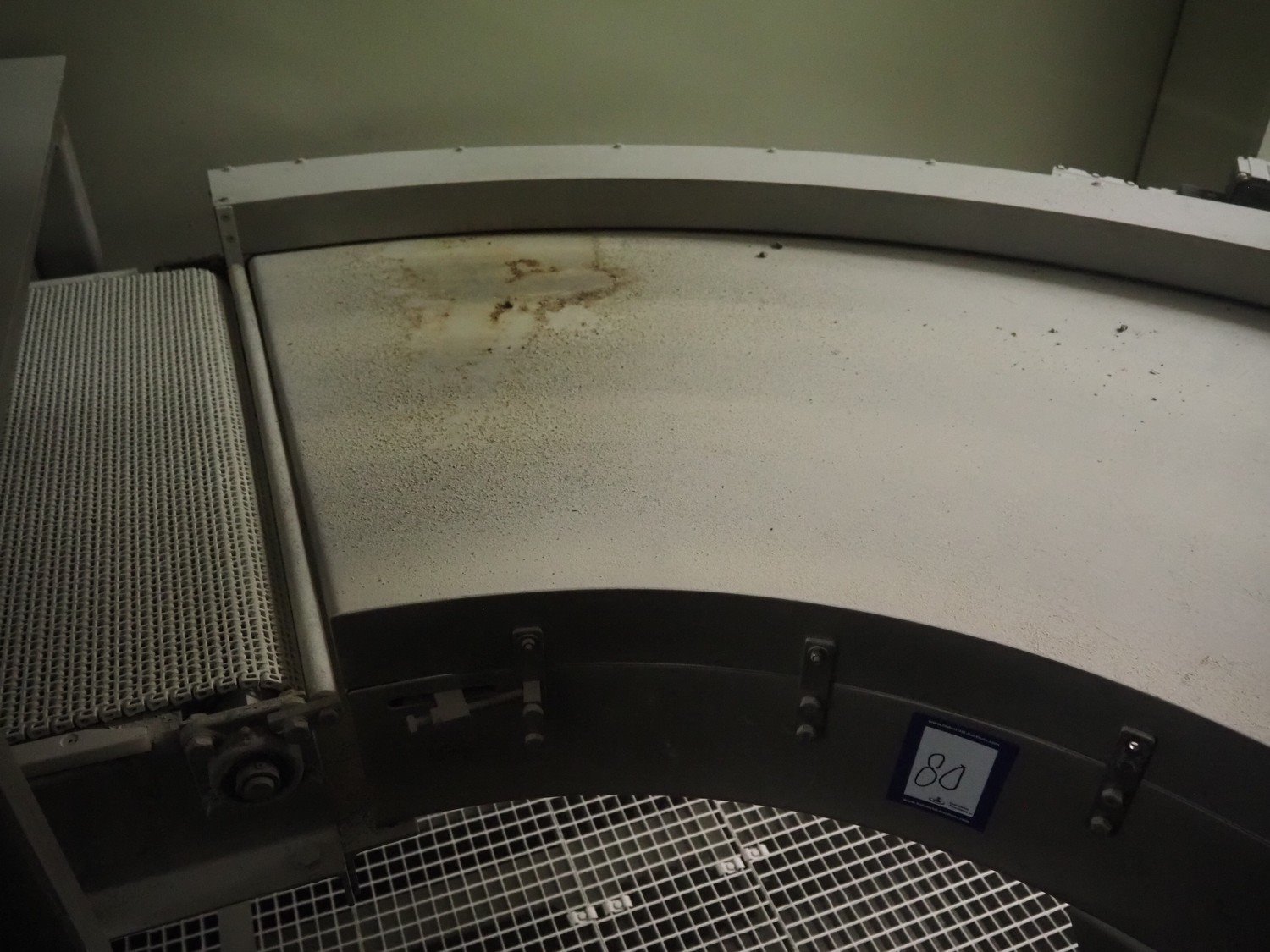 Max Dörr 90° curve conveyor, type: ST22 ES90°/790/600R, machine number: 05-7102, year of construction: 2005, plastic belt, belt width: 800 mm, total dimensions: 1600 mm x 1500 mm x 1400 mm. Kavel locatie: Schultetusstraße 37, 17153 Stavenhagen, Duitsland