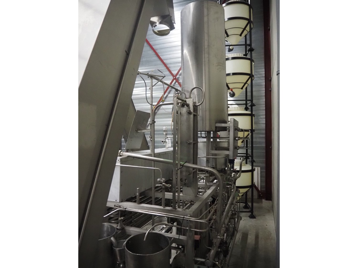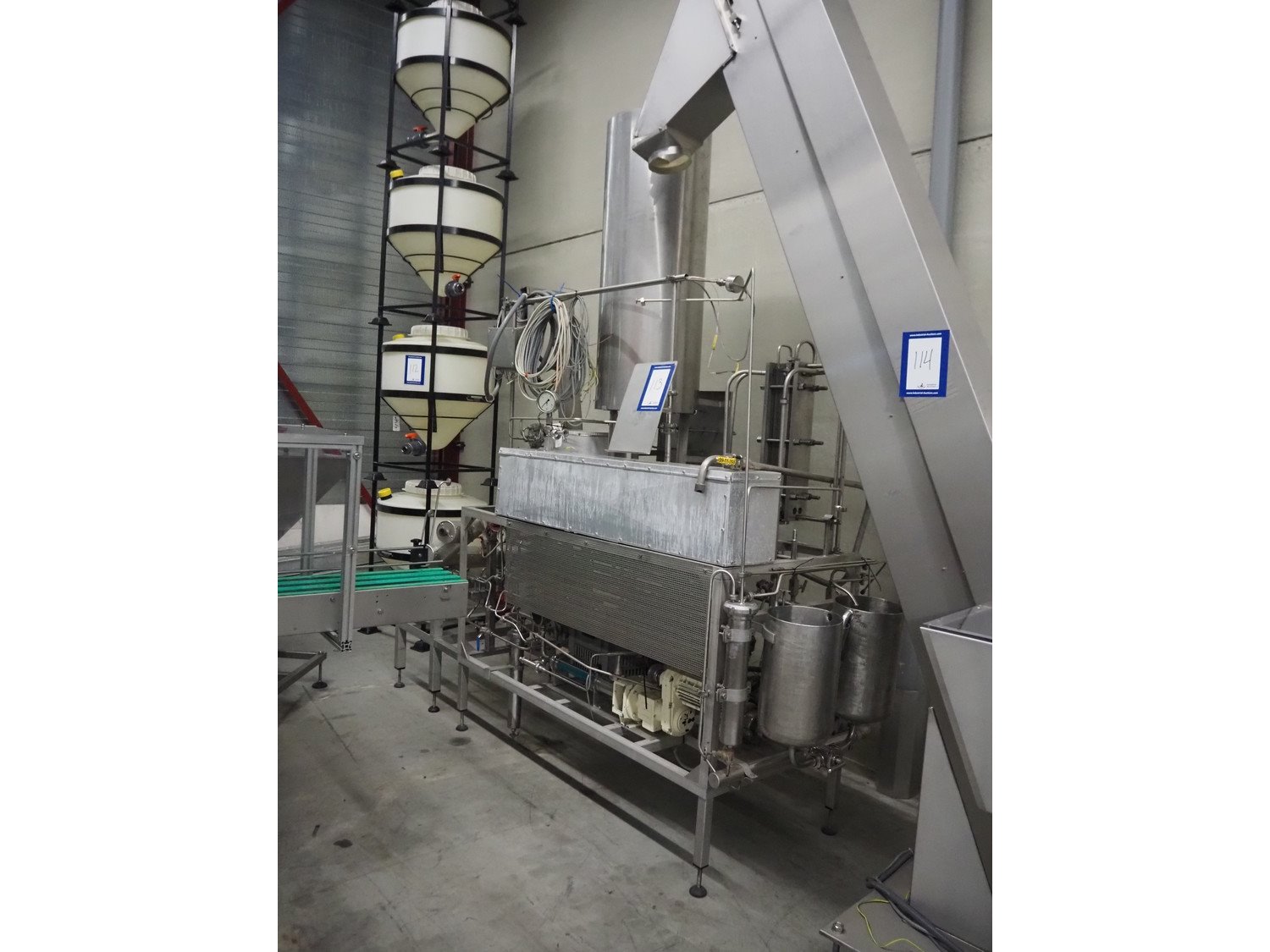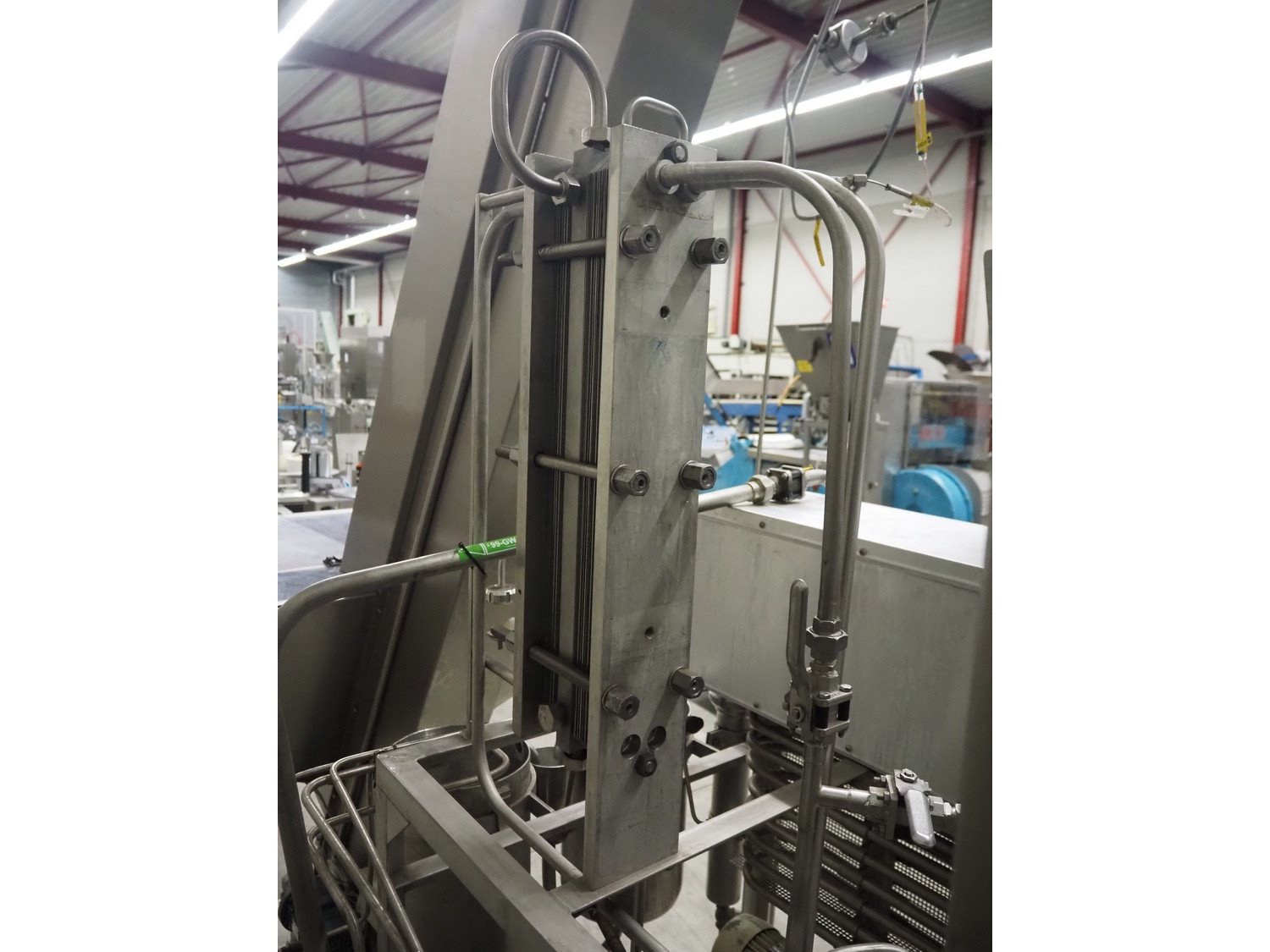 Homogenizing testing unit, consisting of: 2 plate heat exchangers, 1 tube heat exchanger and several pumps, dimensions: 2900 mm x 1000 mm x 3050 mm. Incomplete, missing homogenizer. Kavel locatie: Spoorstraat 7, 5975 RK Sevenum, Nederland