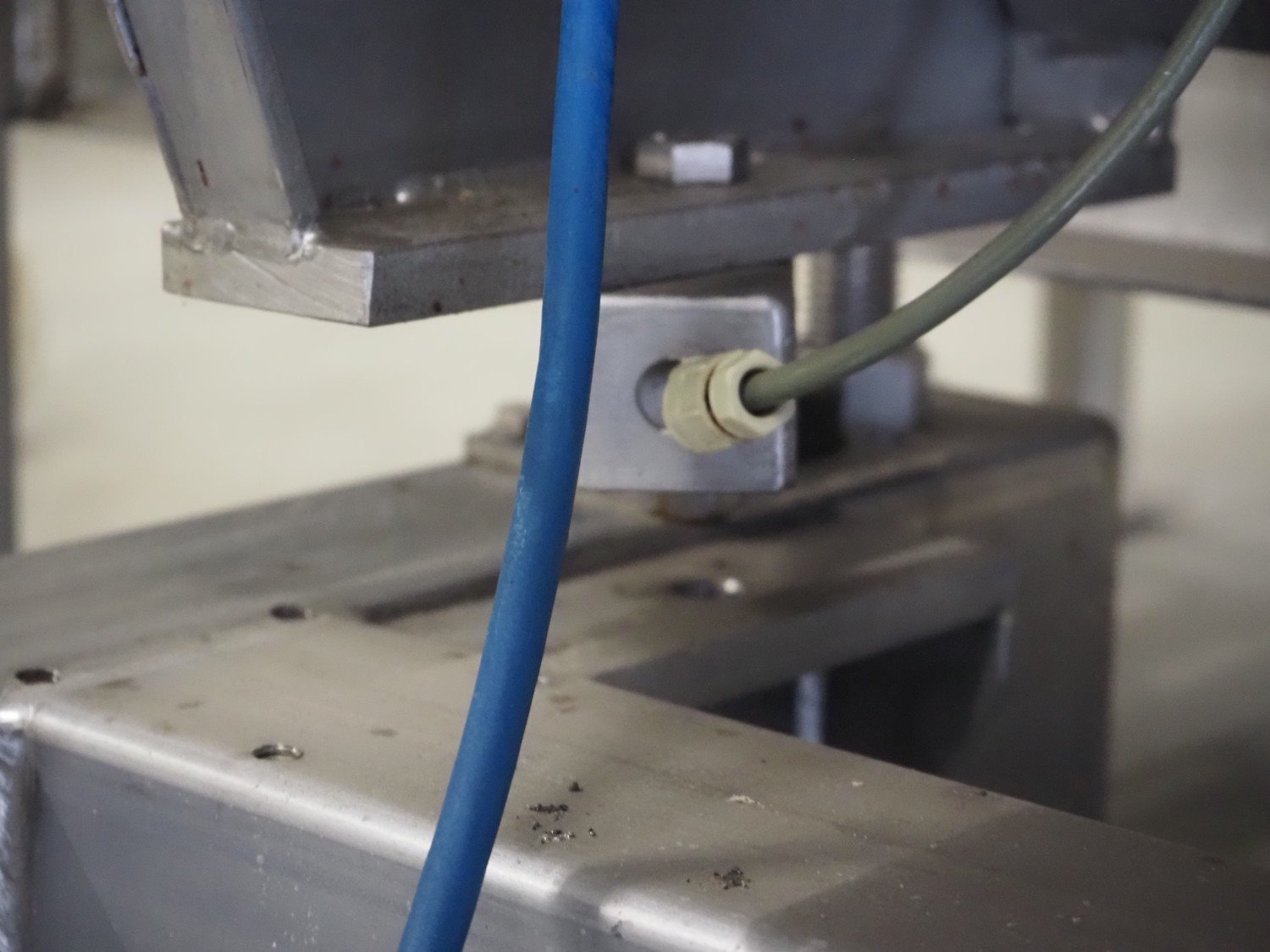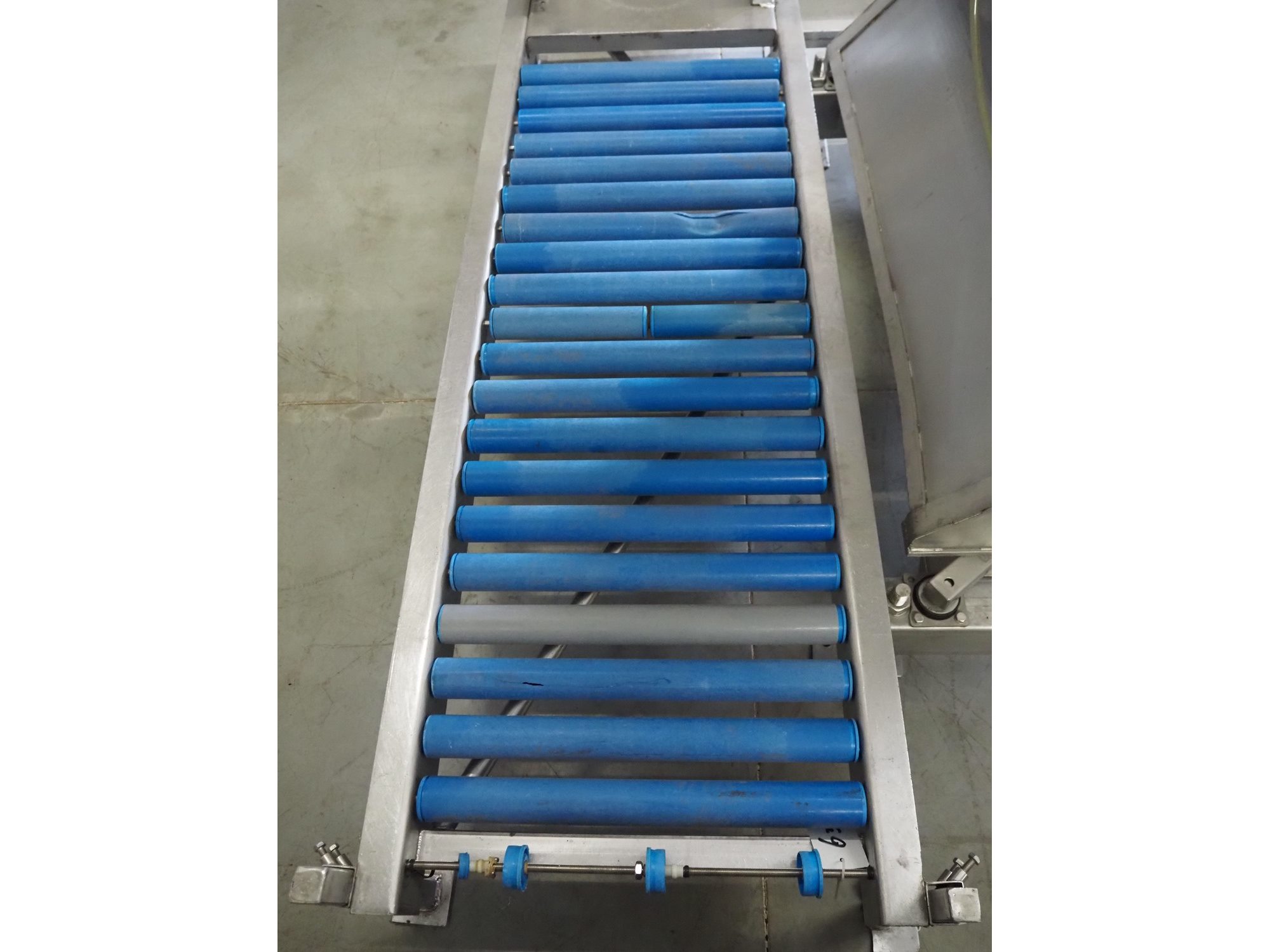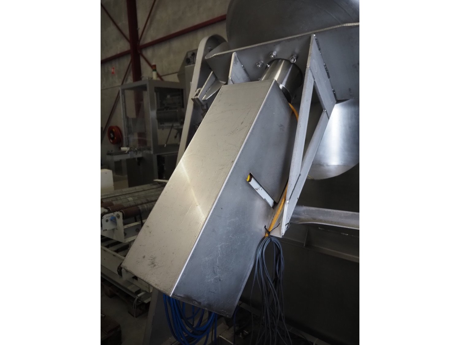 S/s tumbler on weighing cells with outfeed roller conveyor, dimensions mixer: 800 mm x 1250 mm x 2650 mm, roller conveyor, steel frame, plastic rollers, roller width: 500 mm, dimensions roller conveyor: 2070 mm x 720 mm x 400 mm. Without indicator. Kavel locatie: Spoorstraat 7, 5975 RK Sevenum, Nederland