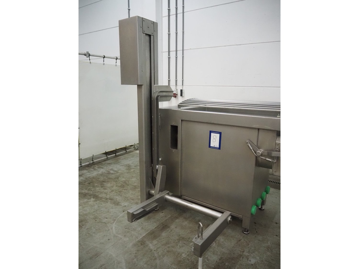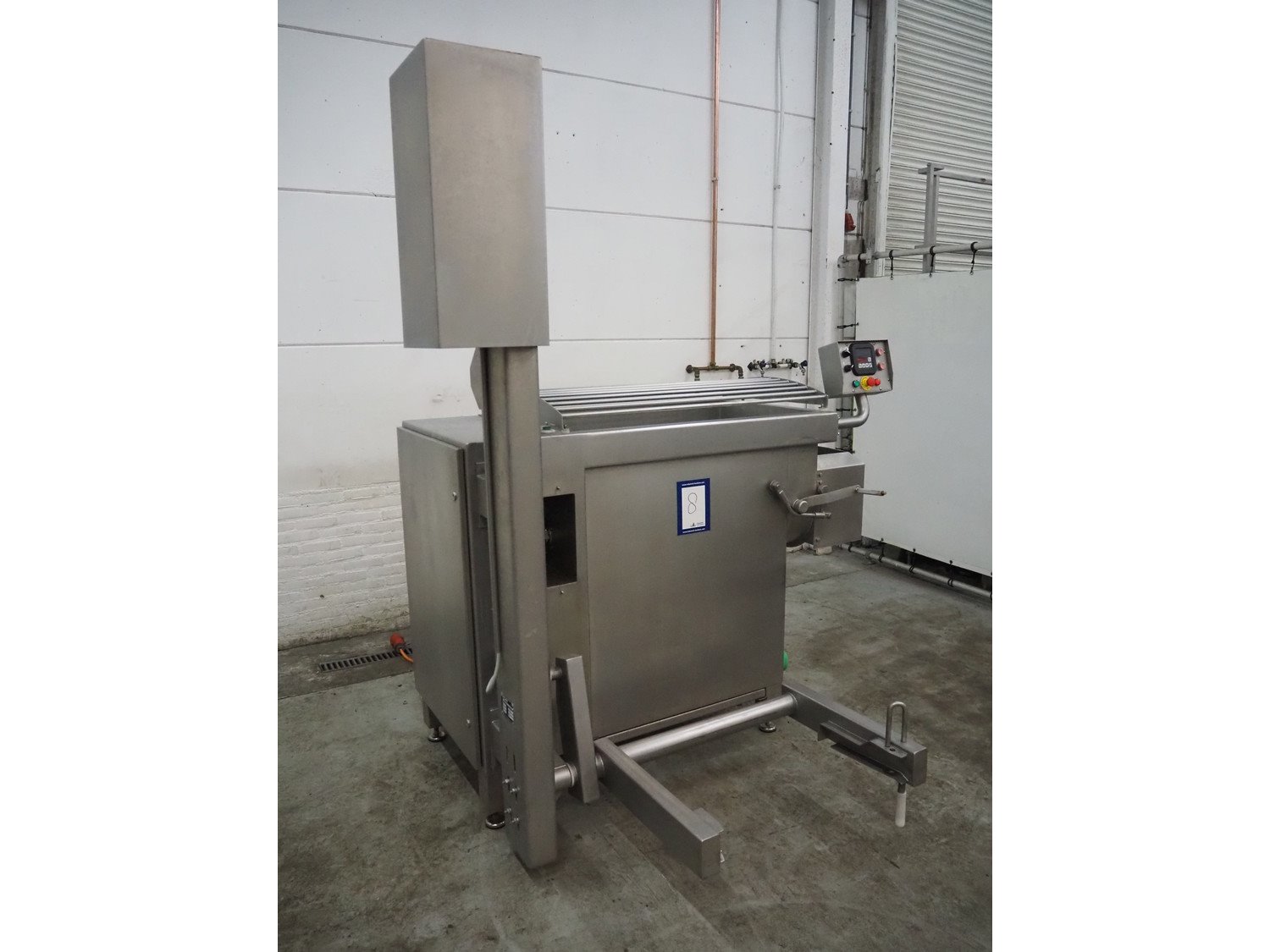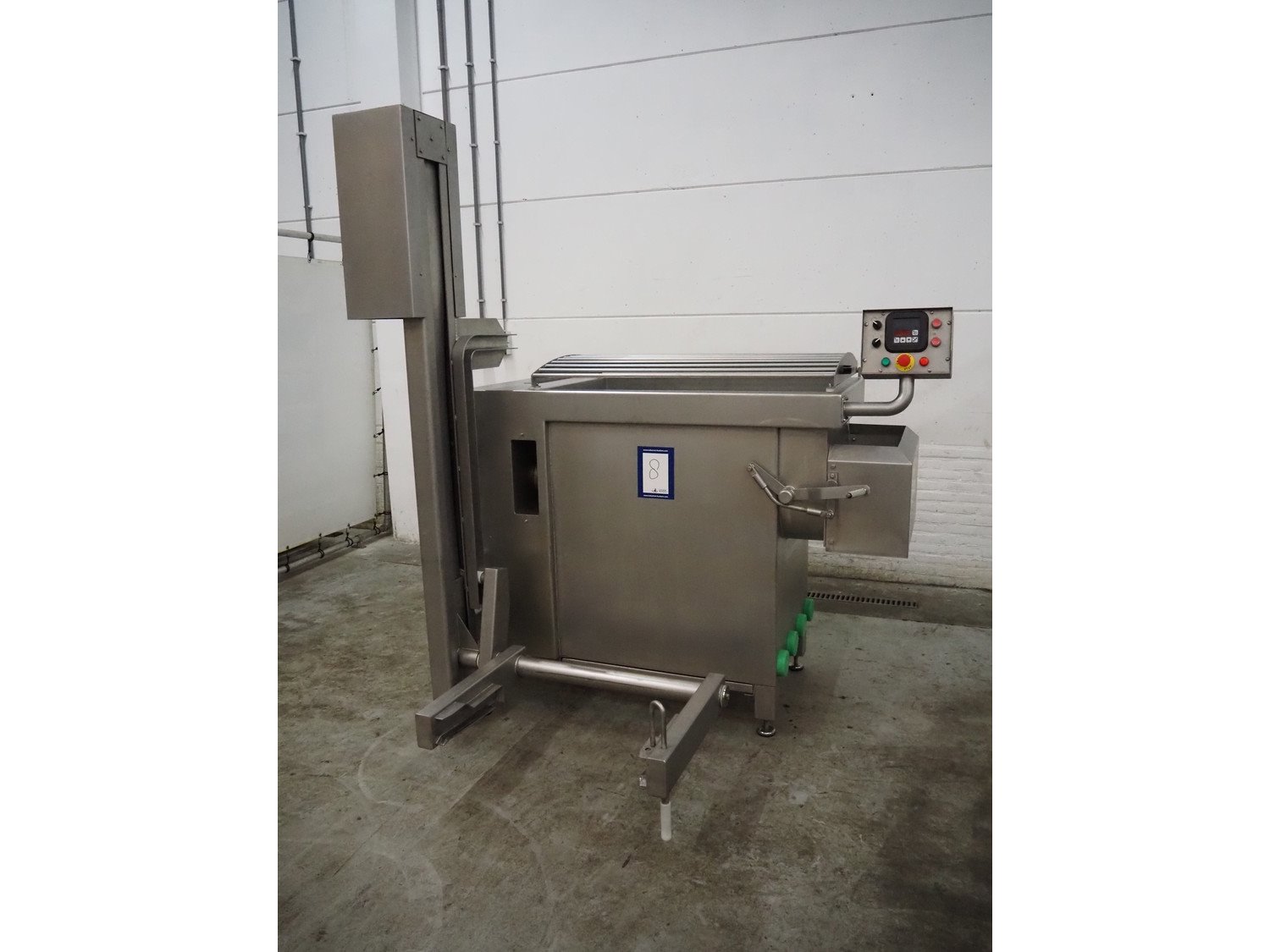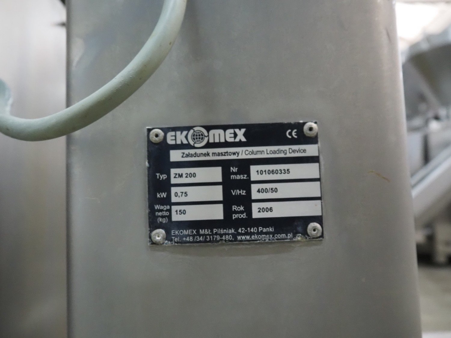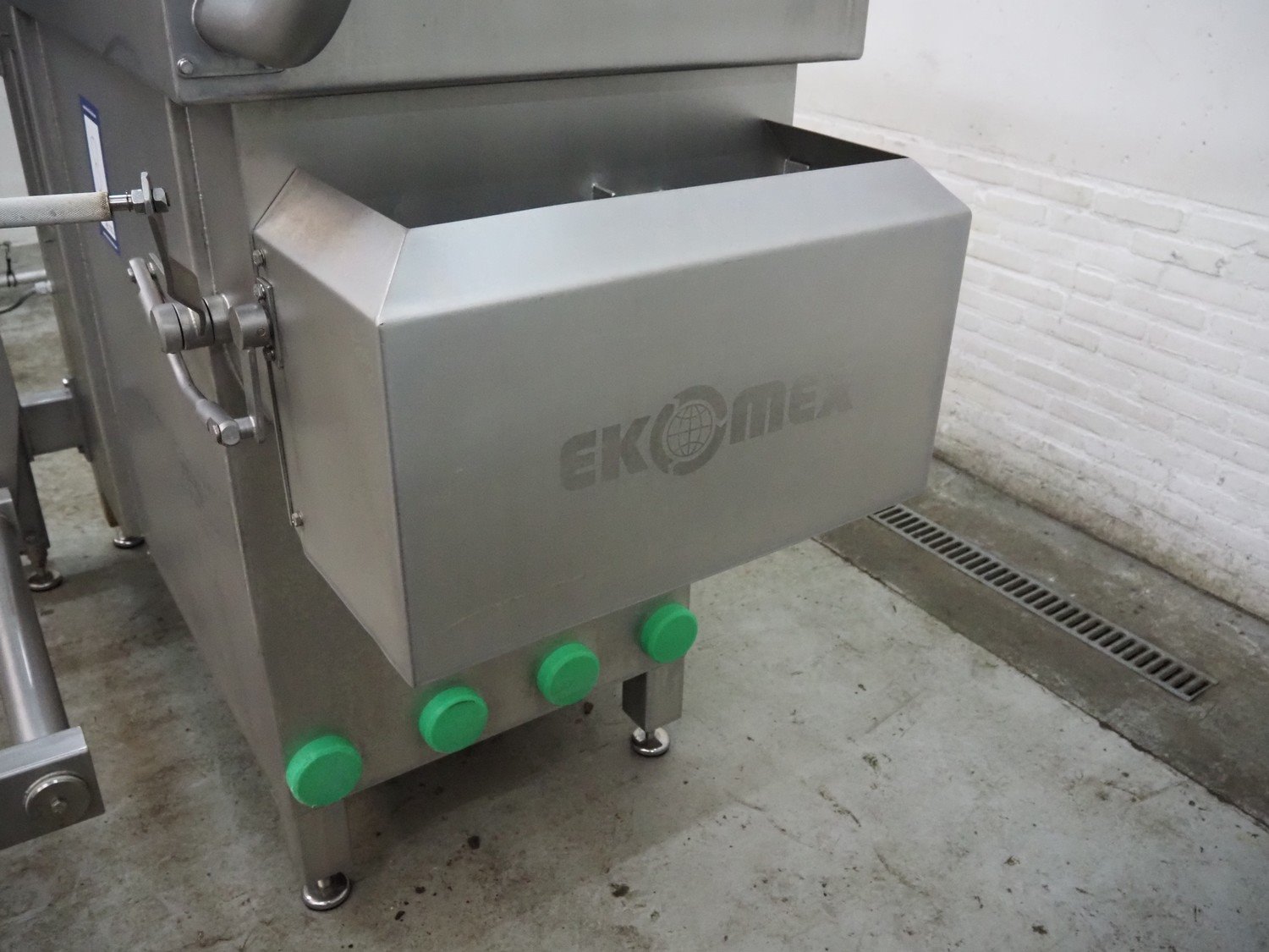 Ekomex double shaft paddle mixer with lifter for 200 liter meat bins, type lifter: ZM 200, serial number: 101060335, year of construction: 2006, type mixer: ML350, serial number: 03060306, year of construction: 2006, 400 V, 50 Hz, 2.0/2.4 kW, inside dimensions: 640 mm x 1100 mm x 540 mm, total dimensions: 1600 mm x 2000 mm x 2300 mm. Kavel locatie: Denariusstraat 20, 4903 RC Oosterhout, Nederland