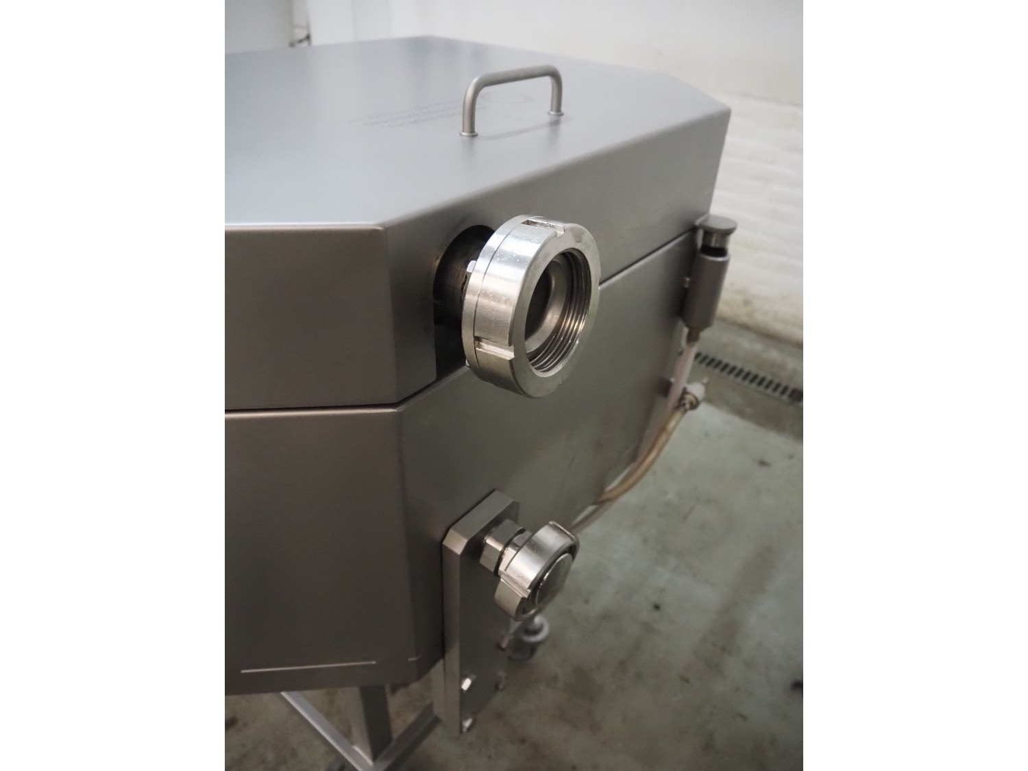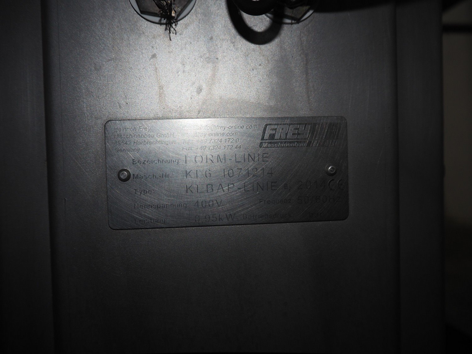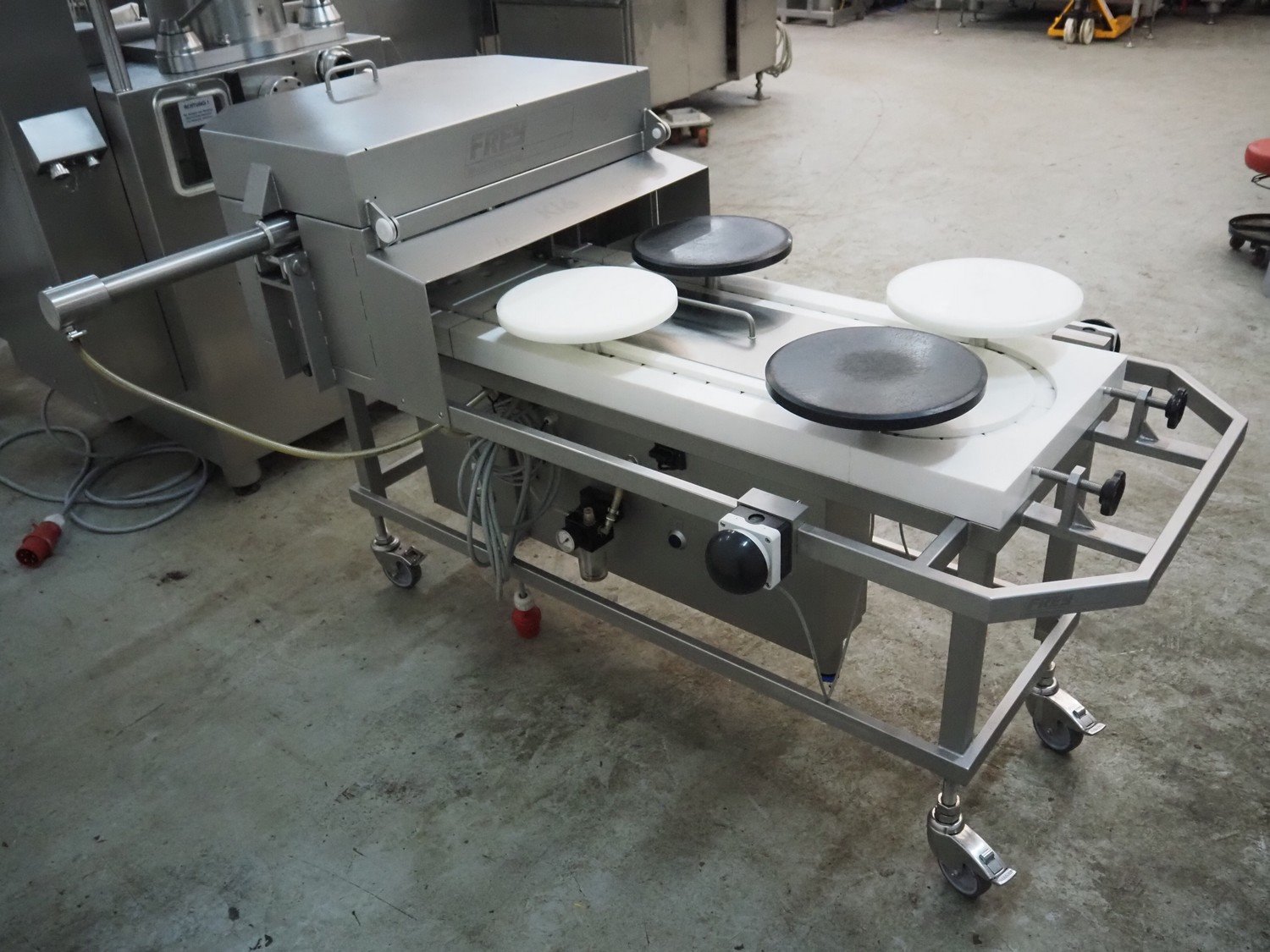 Frey Maschinenbau GmbH mobile kebab filling machine, type: Kebap-line, model: KL6, serial number: KL6 1071214, year of construction: 2014, 400 V, 50/60 Hz, 0.95 kW, 6 stations, station diameter: Ø 300 mm, total dimensions: 2000 mm x 950 mm x 1180 mm. Kavel locatie: Denariusstraat 20, 4903 RC Oosterhout, Nederland