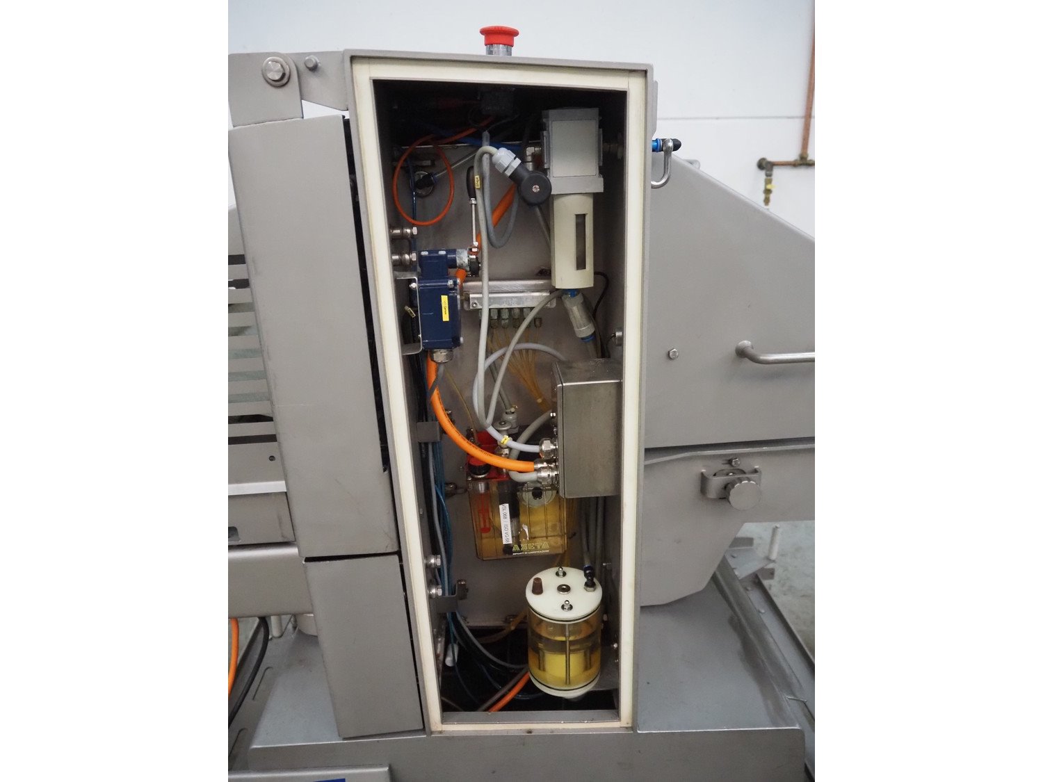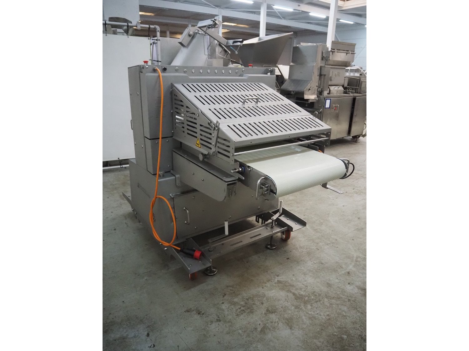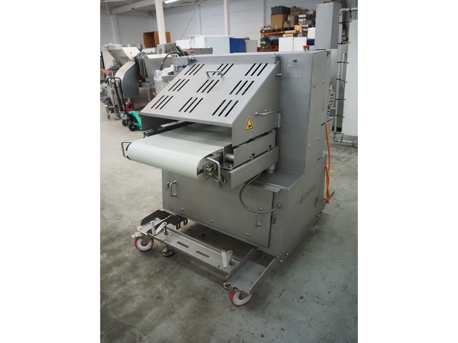 Grasselli S.p.A. mobile slicer, model: NSA600, serial number: S23R03/1043, year of construction: 2012, 400 V, 3 Ph, 50 Hz, 9.4 A, 4 kW, plastic belt, belt width: 600 mm, distance between knives: 5 mm, total dimensions: 2200 mm x 1300 mm x 1600 mm. Including spare belt. Kavel locatie: Denariusstraat 20, 4903 RC Oosterhout, Nederland
