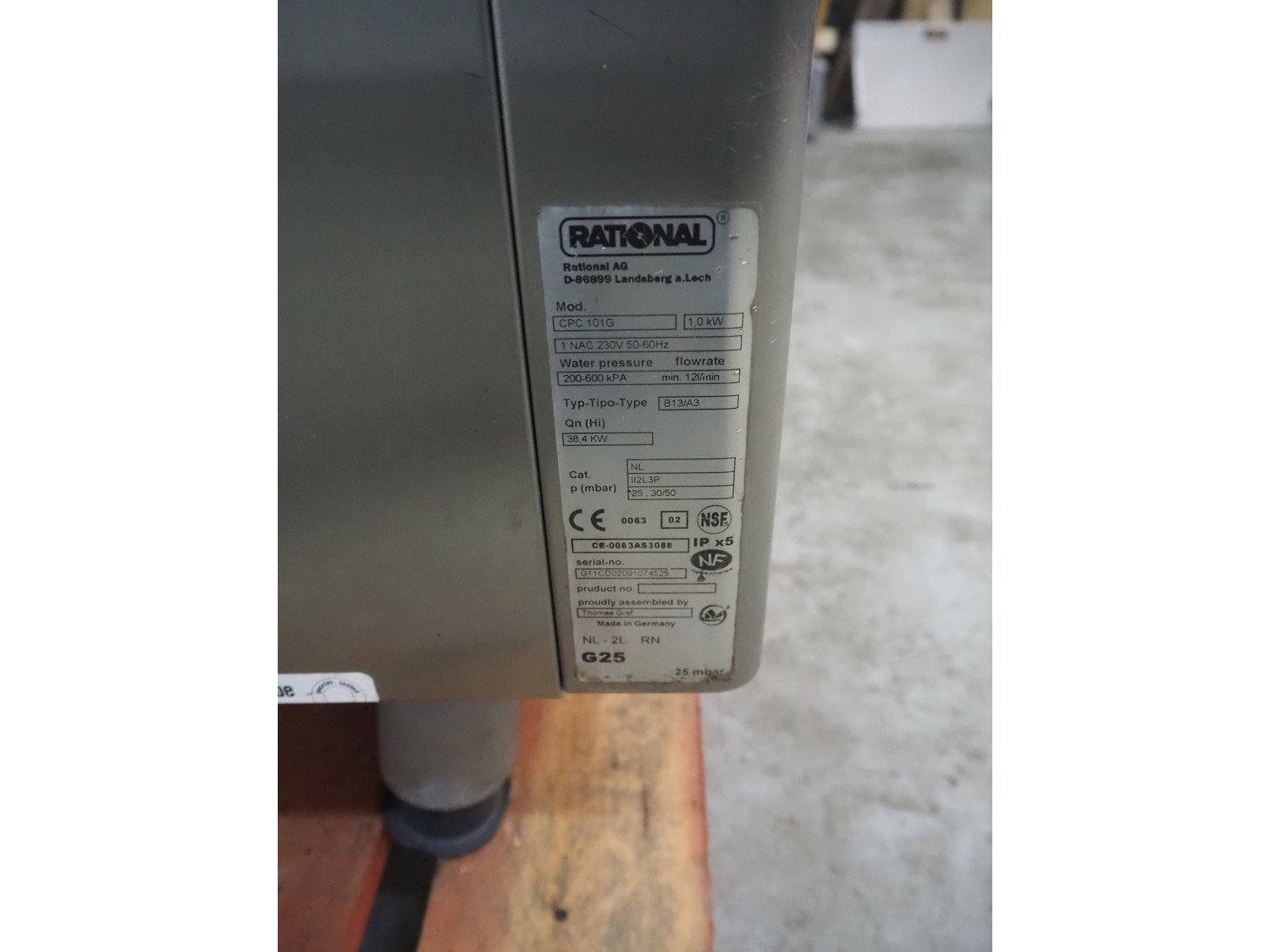 Rational combi steamer, model: CPC 101G, serial number: G11CD02091074525, 230 V, 50-60 Hz, 1.0 kW, 10 floors, gas heated, weight: 150 kg, dimensions: 900 mm x 850 mm x 1060 mm. Kavel locatie: Denariusstraat 20, 4903 RC Oosterhout, Nederland