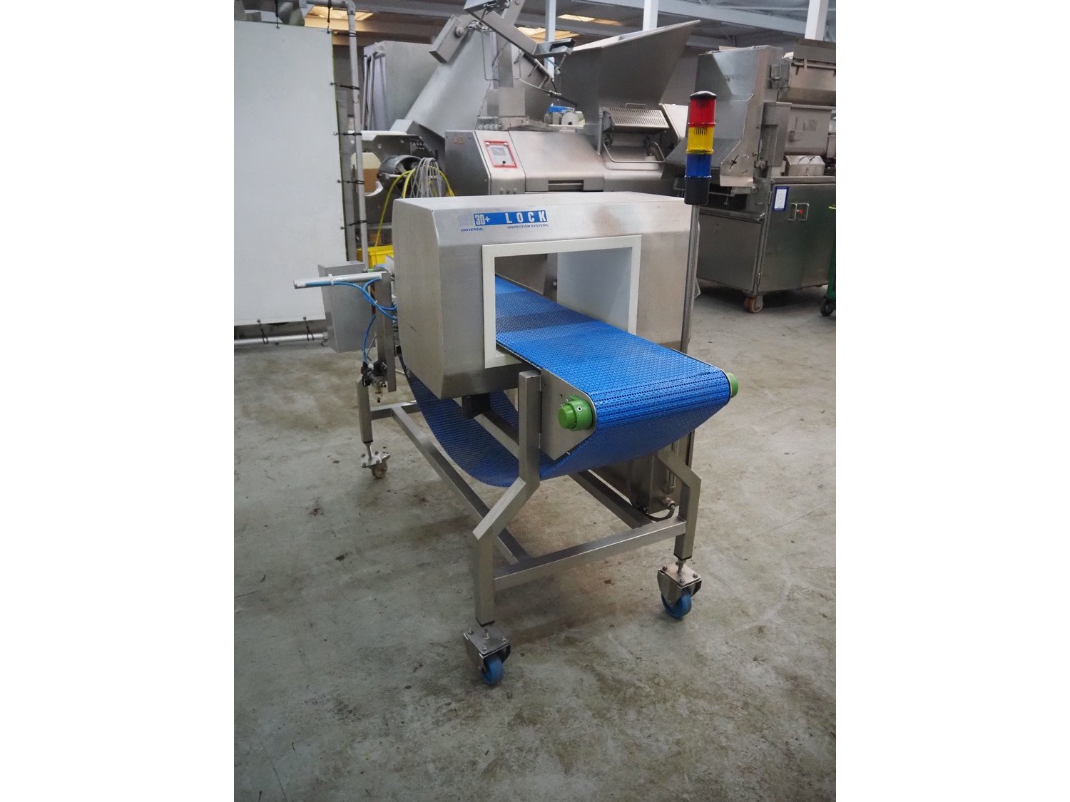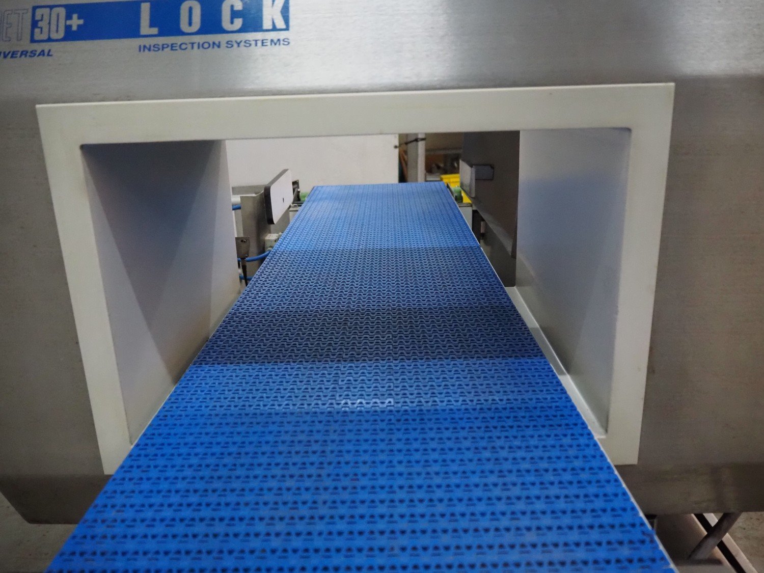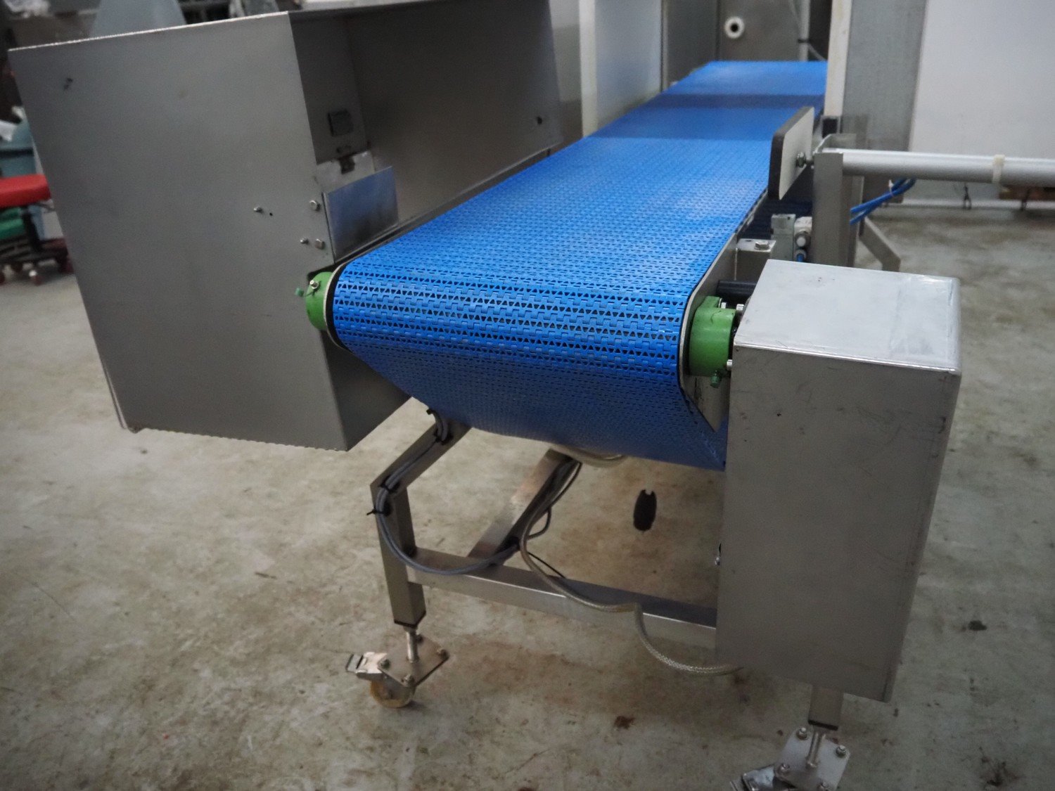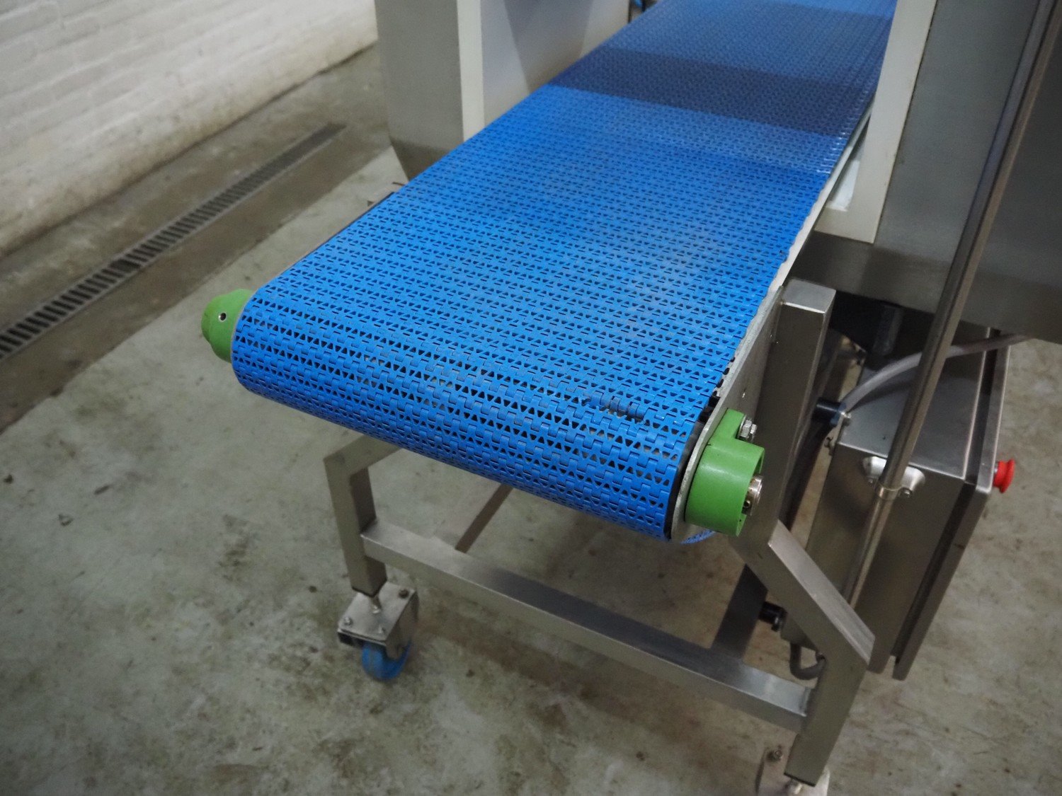 Lock Inspection Systems Ltd. mobile metal detector with rejector, model: MET30+, serial number: 5342611, year of construction: 2013, 230 V, 1 Ph, 50 Hz, 0.7 A, 5.5 bar, plastic mesh belt, belt width: 350 mm, clearance: 400 mm x 225 mm, total dimensions: 1850 mm x 1300 mm x 1550 mm. Kavel locatie: Denariusstraat 20, 4903 RC Oosterhout, Nederland