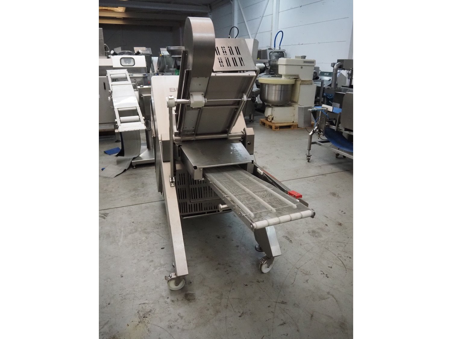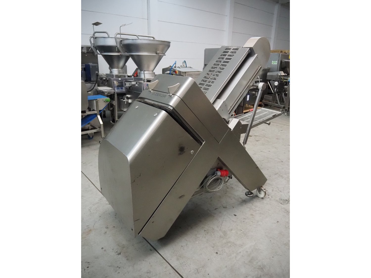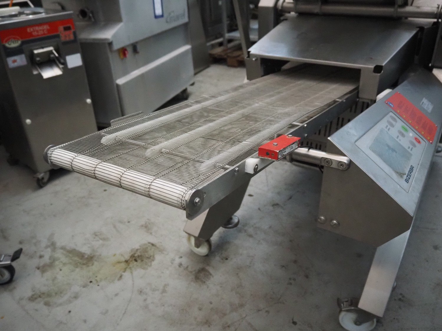 Bizerba mobile slicer, model: A510, serial number: 10770583, year of construction: 2011, 380/415 V, 3 Ph, 47/63 Hz, 4.15 A, 2.3 kW, s/s mesh belt, belt width: 300 mm, total dimensions: 2500 mm x 900 mm x 1950 mm. Technical condition unknown, control panel broken. Kavel locatie: Denariusstraat 20, 4903 RC Oosterhout, Nederland