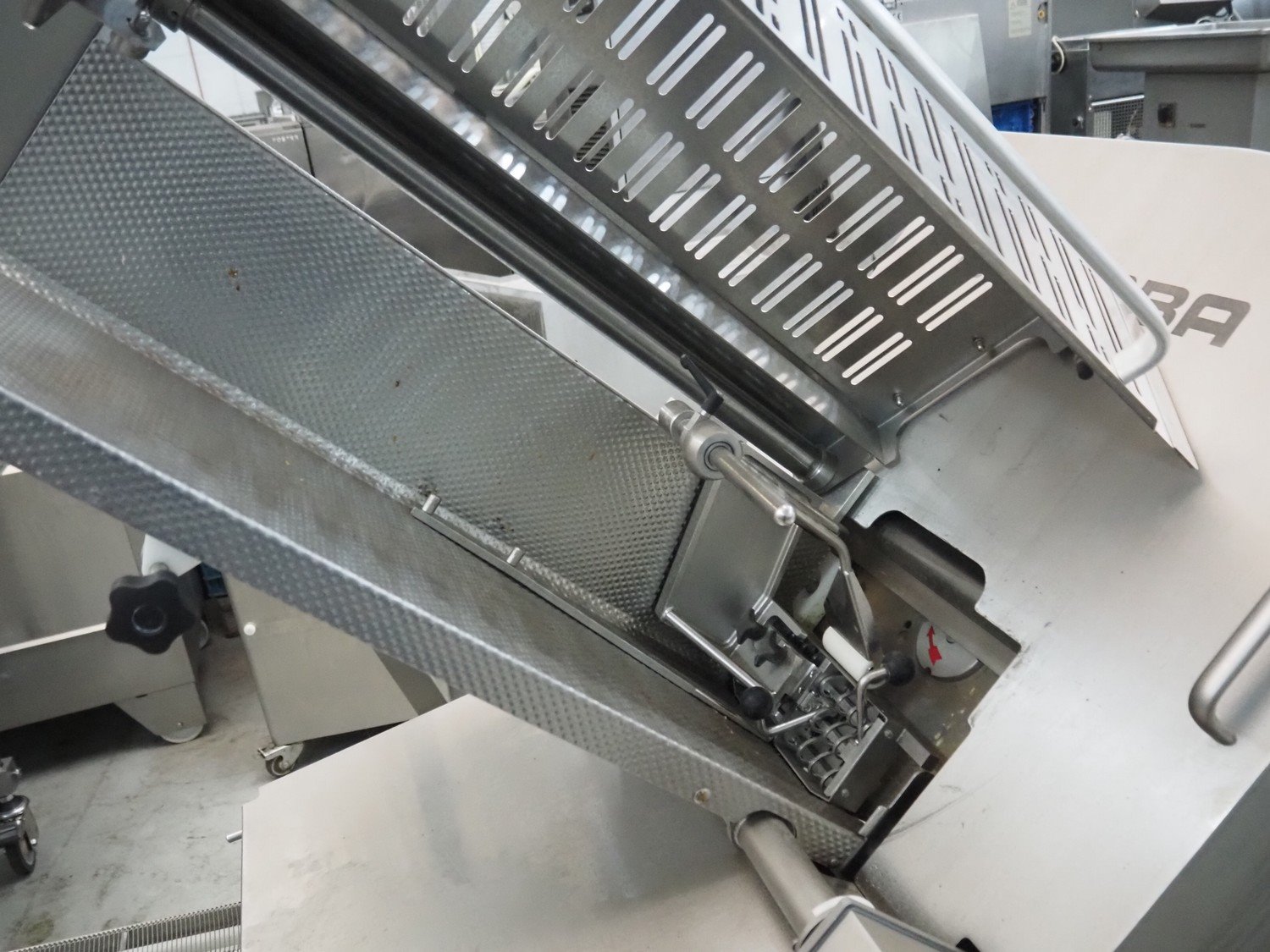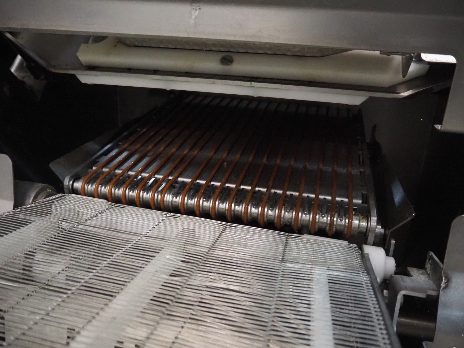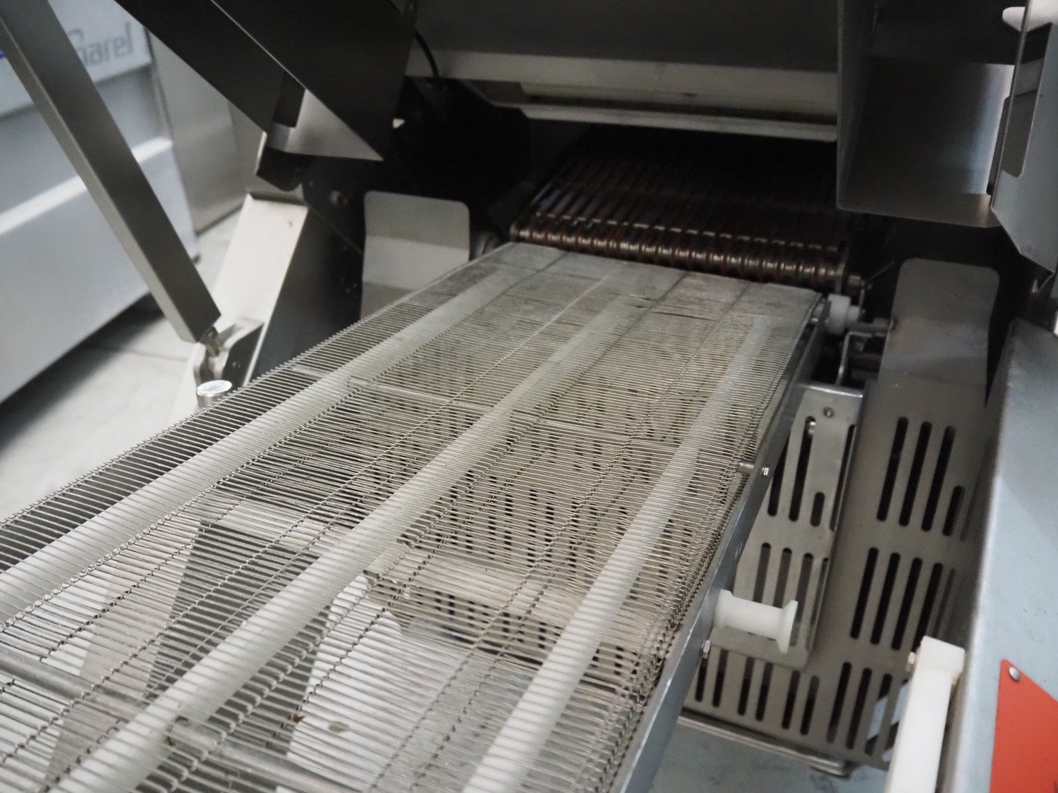 Bizerba mobile slicer, model: A510, serial number: 10770583, year of construction: 2011, 380/415 V, 3 Ph, 47/63 Hz, 4.15 A, 2.3 kW, s/s mesh belt, belt width: 300 mm, total dimensions: 2500 mm x 900 mm x 1950 mm. Technical condition unknown, control panel broken. Kavel locatie: Denariusstraat 20, 4903 RC Oosterhout, Nederland