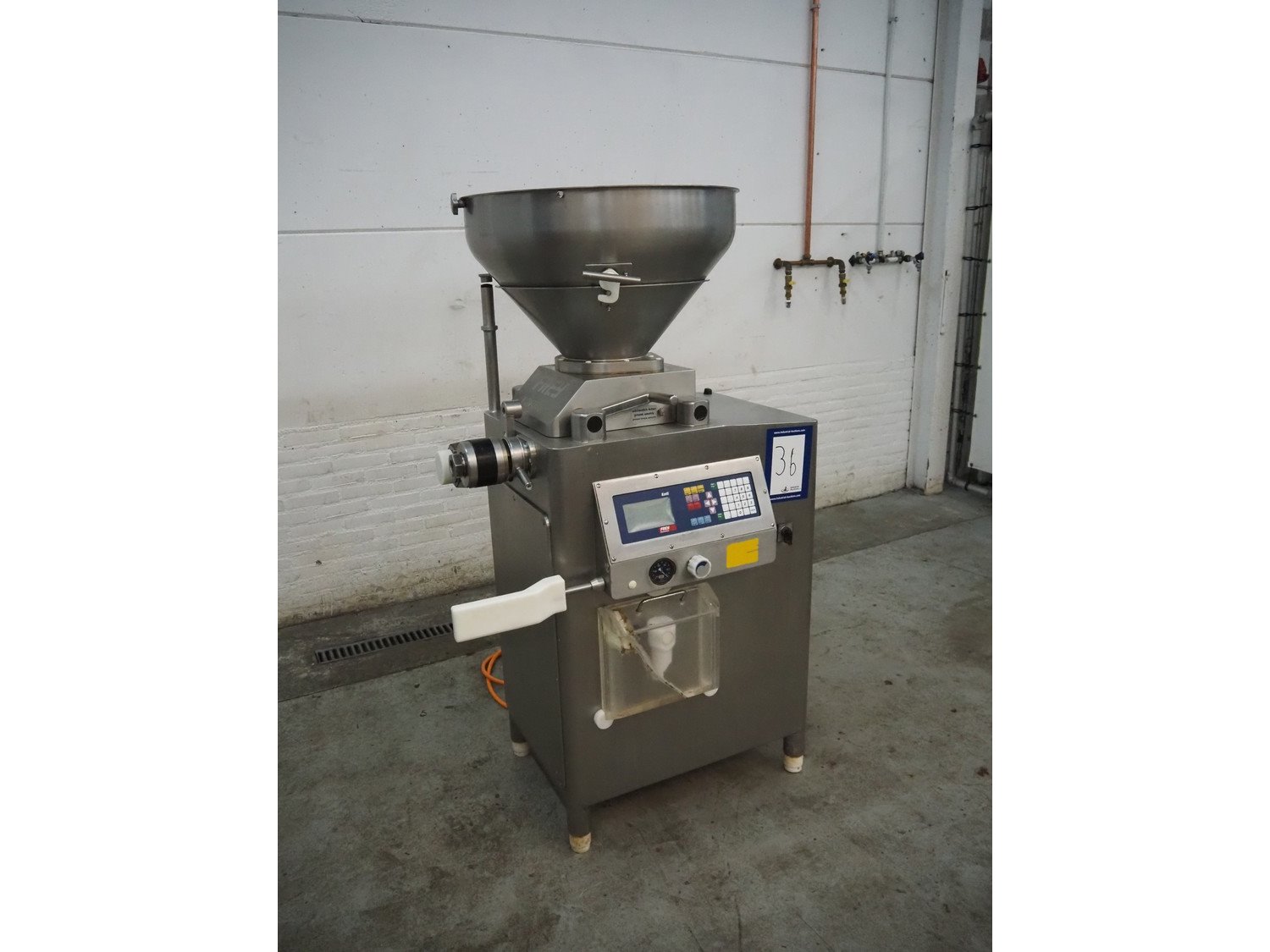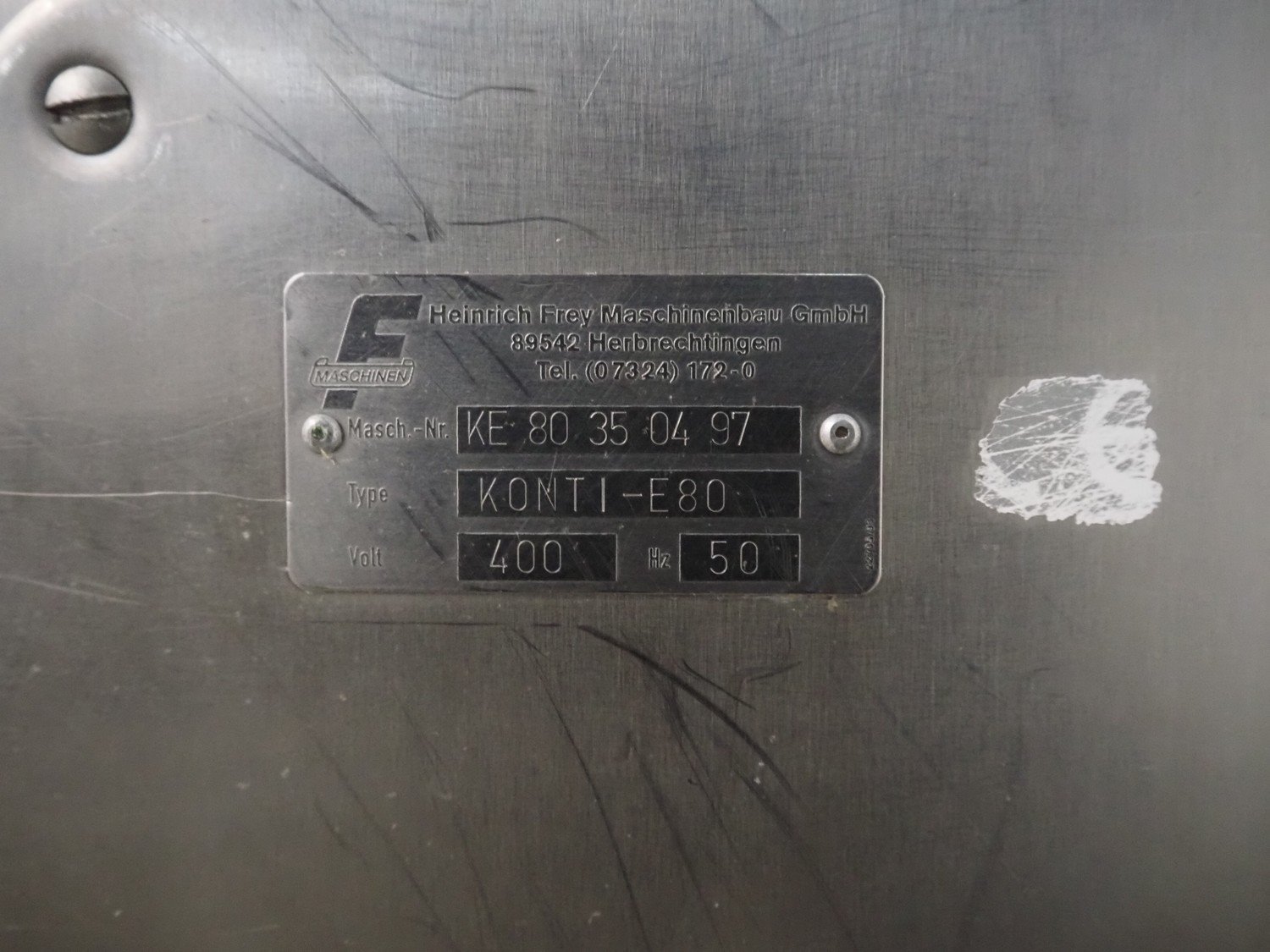 Frey Maschinenbau GmbH vacuum filling machine, type: KONTI-E80, machine number: KE 80 35 04 97, 400 V, 50 Hz, vacuum pump, dimensions: 1050 mm x 650 mm x 1650 mm. Kavel locatie: Denariusstraat 20, 4903 RC Oosterhout, Nederland