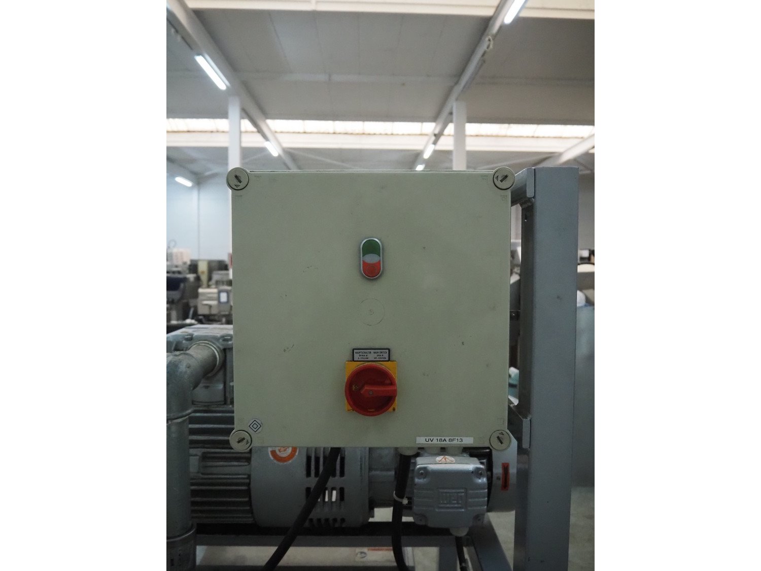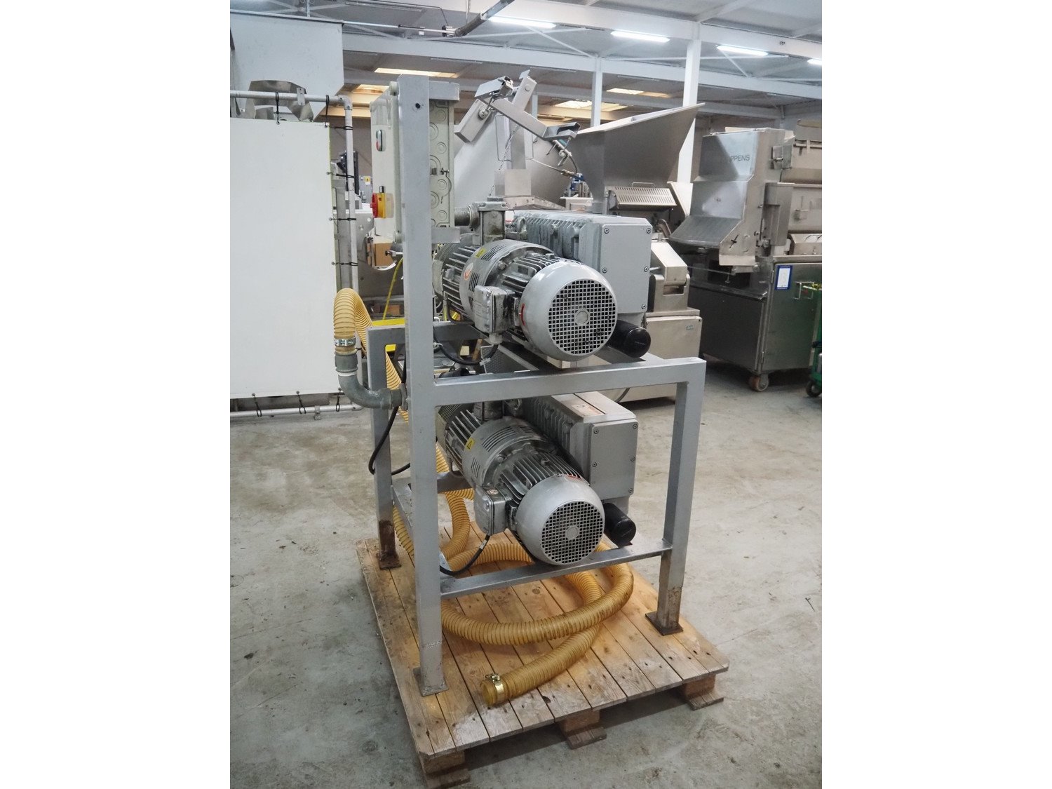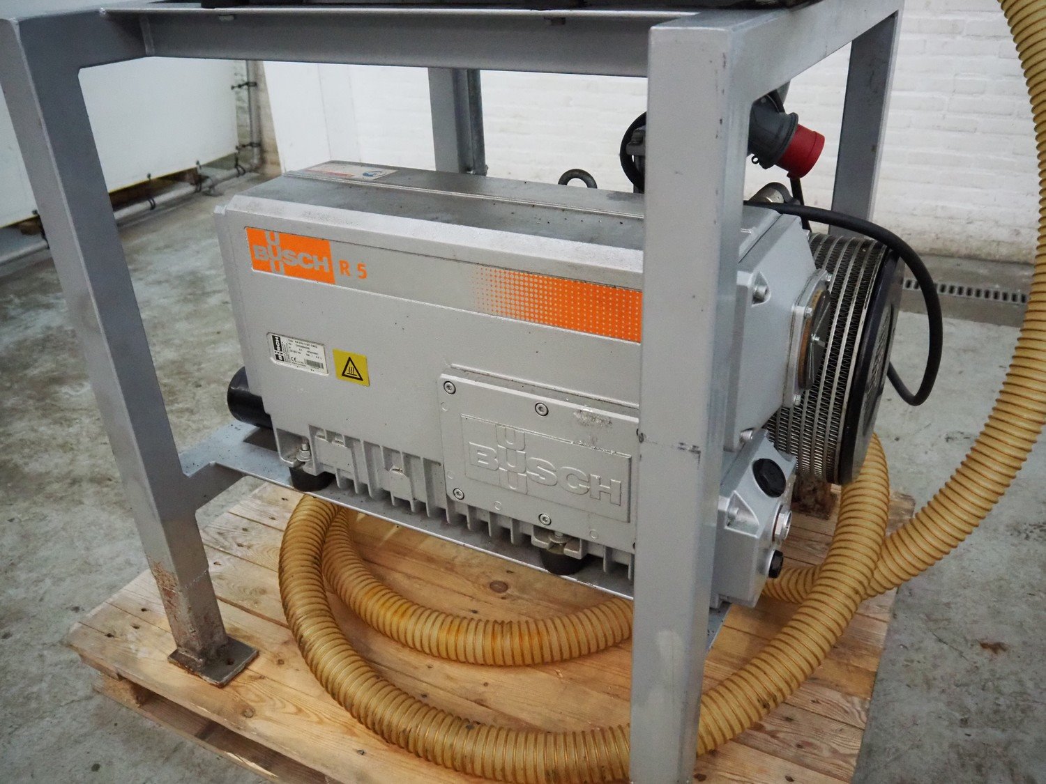 Steel frame with 2 Busch vacuum pumps, type: RA 0302 D 5Z1 CUZZ / RA 0302 D 5Z1 CWZZ, serial number: C0831000199 / C0939000266, year of construction: 2008 / 2009, capacity: (2x) 300 m³ per hour, dimensions: 1000 mm x 950 mm x 1650 mm. Kavel locatie: Denariusstraat 20, 4903 RC Oosterhout, Nederland