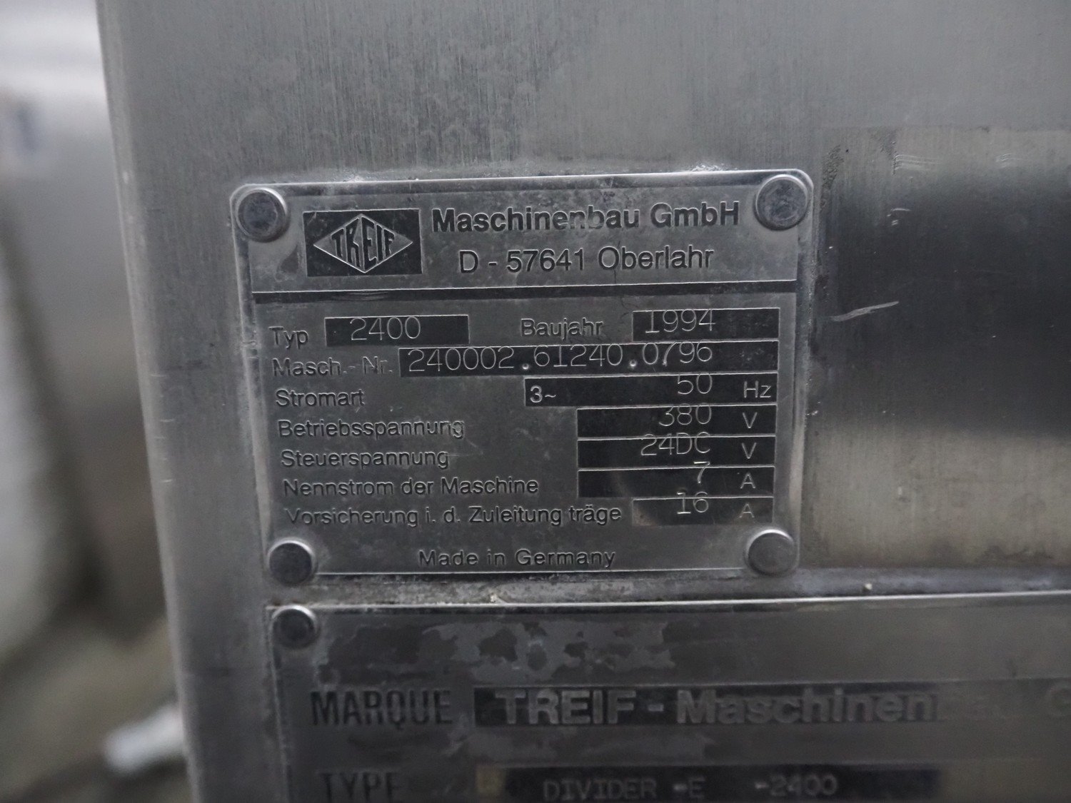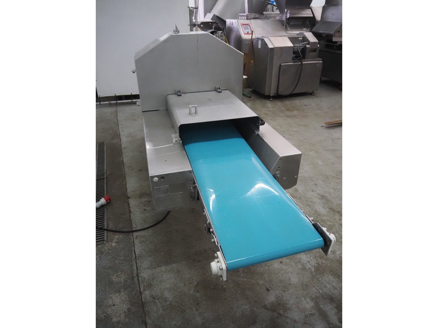 Treif Maschinenbau GmbH slicer, model: Divider-E, type: 2400, machine number: 240002.61240.0796, year of construction: 1994, 380 V, 3 Ph, 50 Hz, 7 A, dimensions chamber: 1000 mm x 220 mm x 200 mm, plastic belt, belt width: 440 mm, total dimensions: 3220 mm x 930 mm x 1500 mm. Kavel locatie: Denariusstraat 20, 4903 RC Oosterhout, Nederland