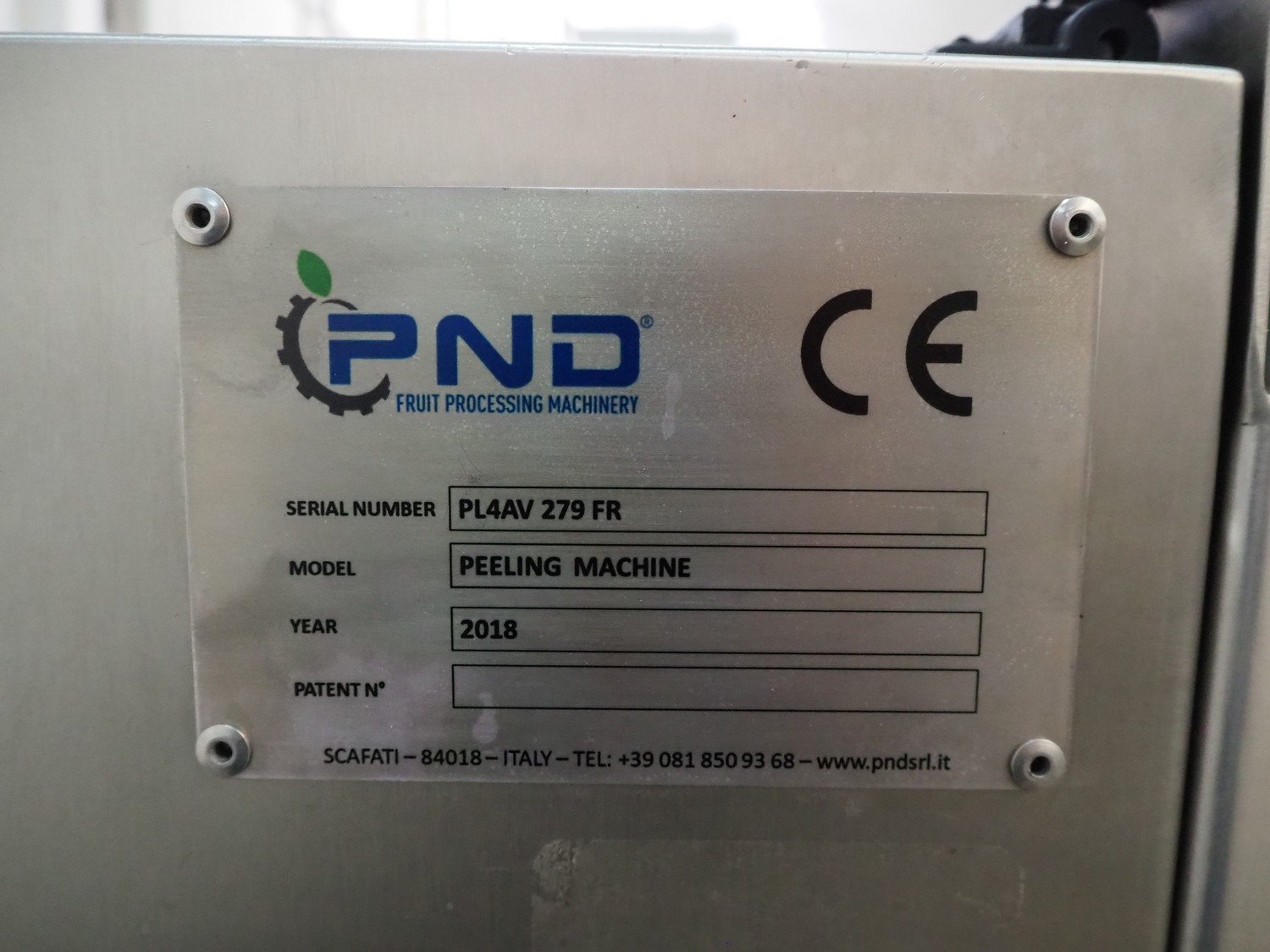 PND Fruit Processing Machinery peeling machine, serial number: PL4AV 279 FR, year of construction: 2018, 400 V, 3 Ph, 50 Hz, 6 A, 3 kW, plastic belt, belt width: 200 mm, total dimensions: 3400 mm x 1500 mm x 2300 mm. Kavel locatie: Denariusstraat 20, 4903 RC Oosterhout, Nederland