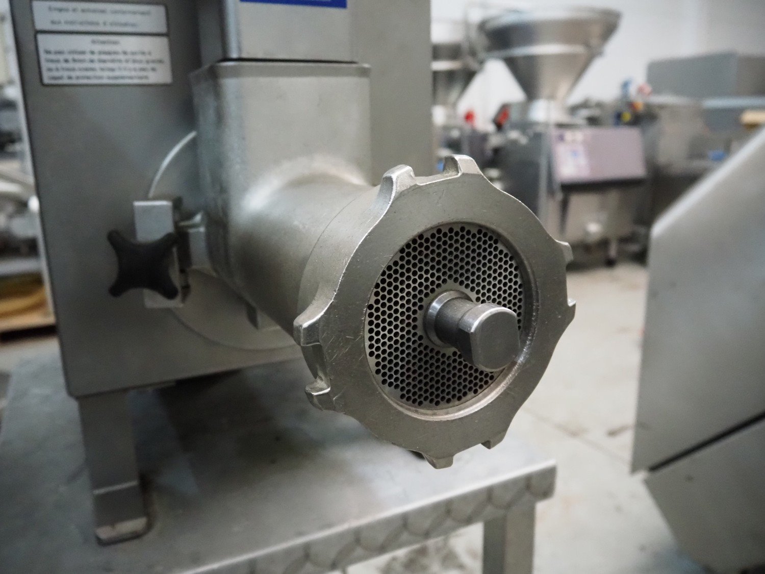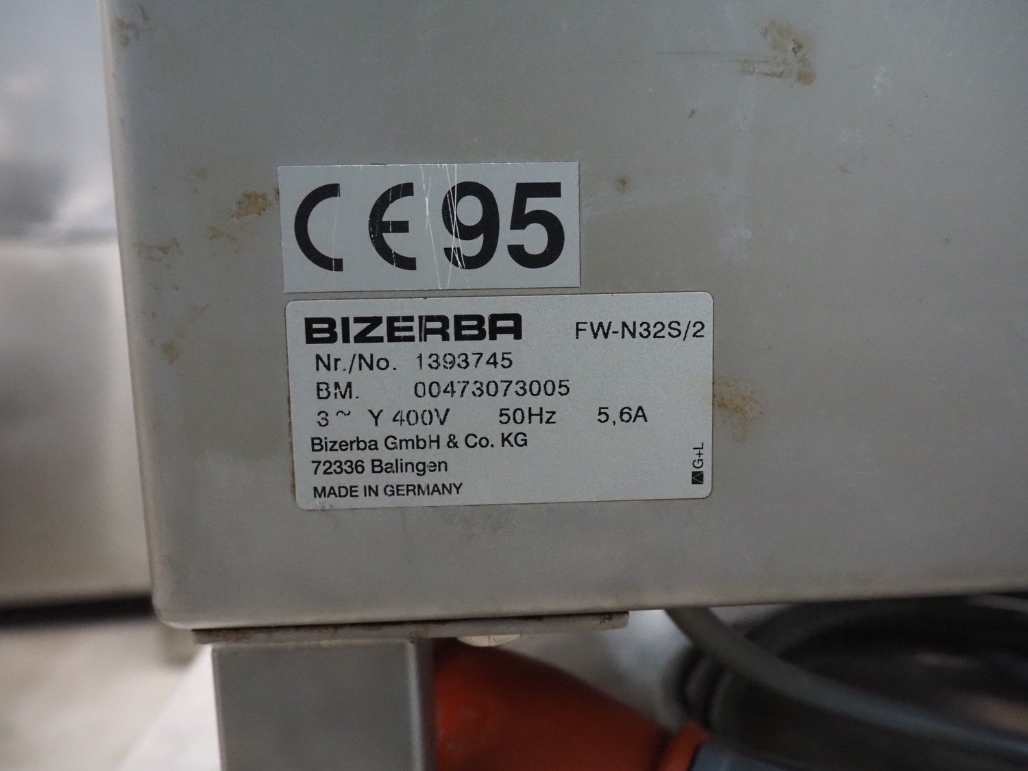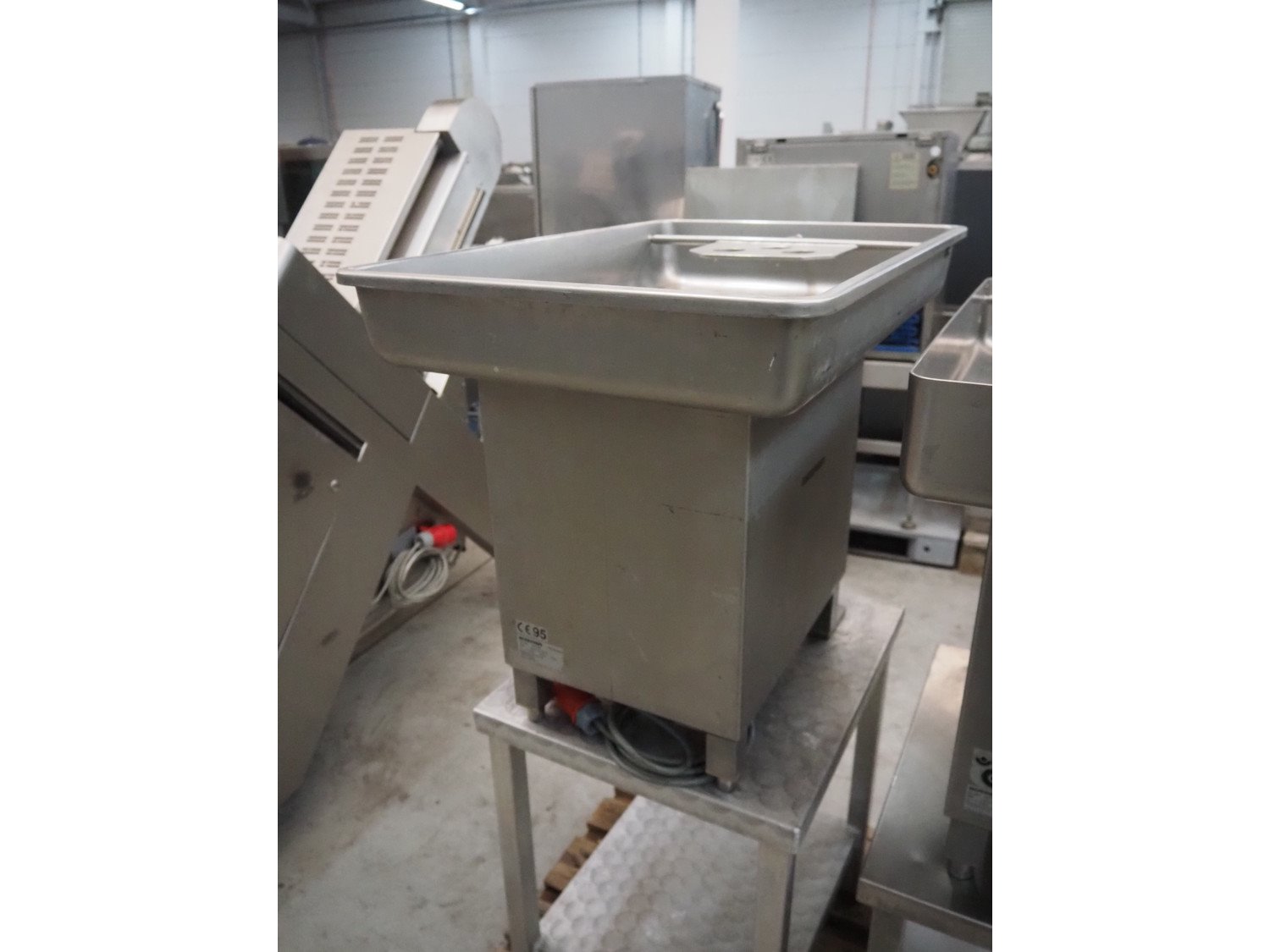 Bizerba grinder, type: FW-N32S/2, number: 1393745, 400 V, 3 Ph, 50 Hz, 5.6 A, ø plate: 98 mm, on s/s table, total dimensions: 950 mm x 500 mm x 1360 mm. Kavel locatie: Denariusstraat 20, 4903 RC Oosterhout, Nederland