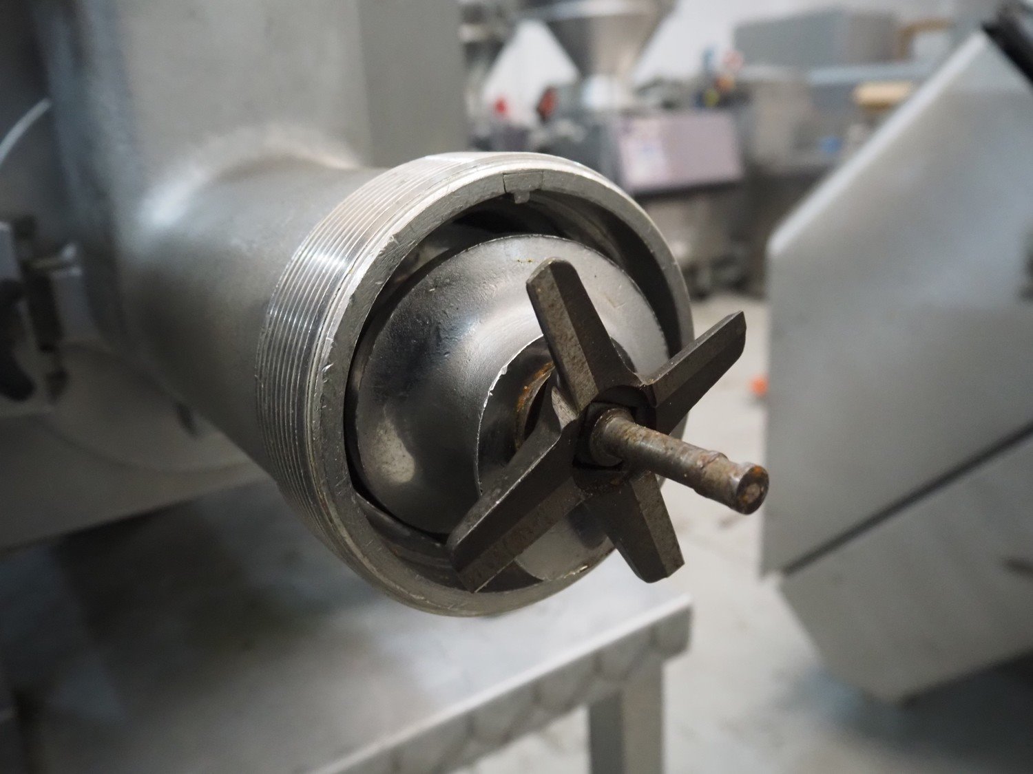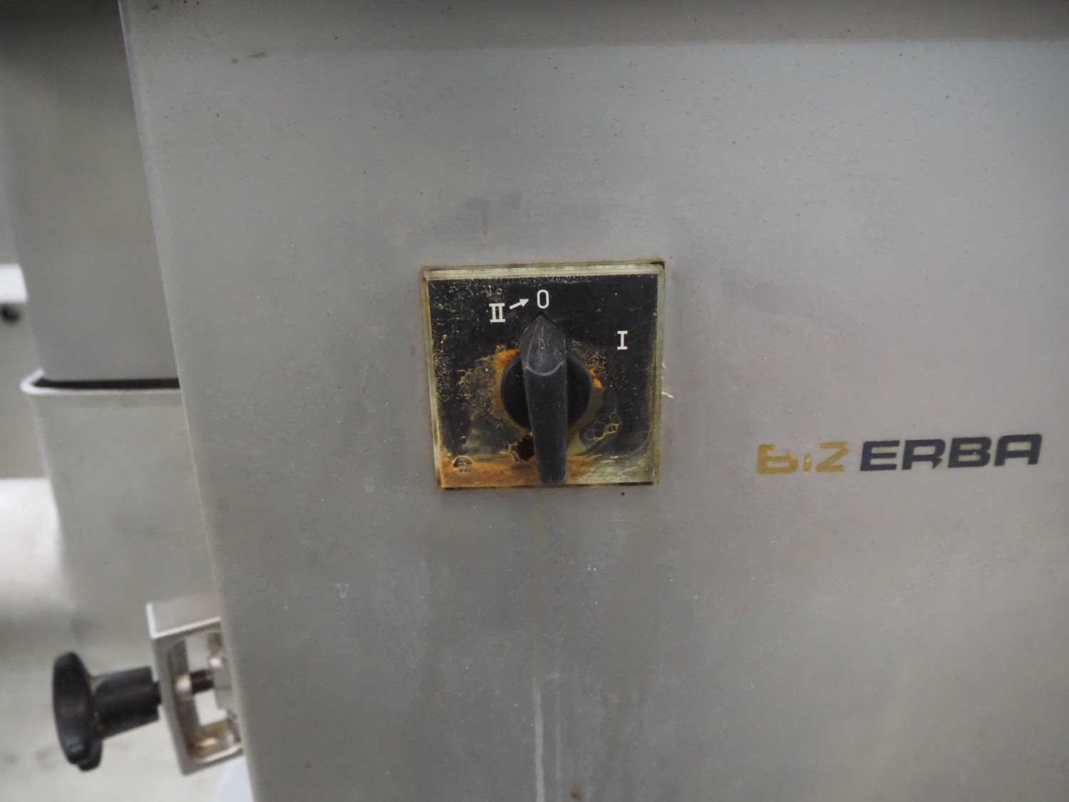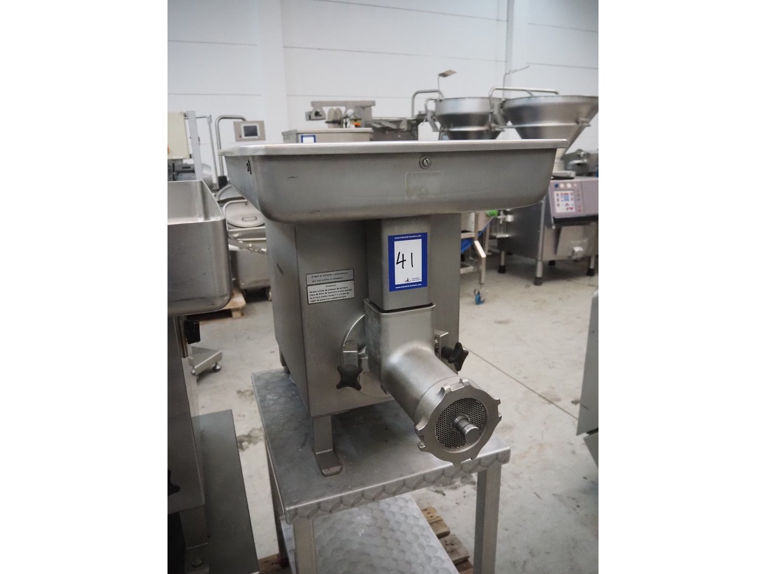 Bizerba grinder, type: FW-N32S/2, number: 1393745, 400 V, 3 Ph, 50 Hz, 5.6 A, ø plate: 98 mm, on s/s table, total dimensions: 950 mm x 500 mm x 1360 mm. Kavel locatie: Denariusstraat 20, 4903 RC Oosterhout, Nederland