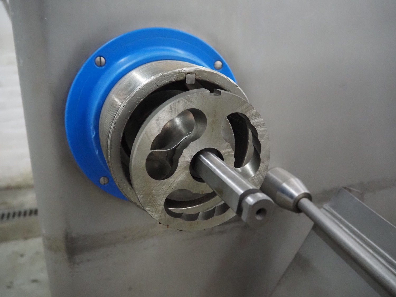 TEC MAQ grinder, model: Alimat 130, number: 53006031, year of construction: 11/06, 380 V, 38 A, 11 kW, plate diameter: 130 mm, total dimensions: 1100 mm x 950 mm x 1500 mm. Kavel locatie: Denariusstraat 20, 4903 RC Oosterhout, Nederland