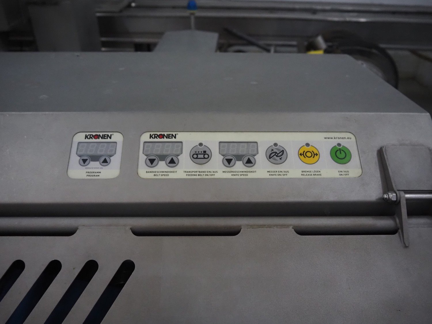 Kronen mobile vegetable slicer, type: GS 10-2, serial number: 2531, year of construction: 2017, 230 V, 1 Ph, 50/60 Hz, 1.8 kW, plastic belt, belt width: 130 mm, total dimensions: 1750 mm x 650 mm x 1430 mm. Kavel locatie: Denariusstraat 20, 4903 RC Oosterhout, Nederland