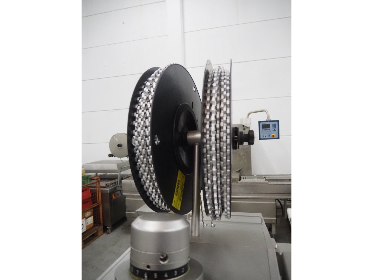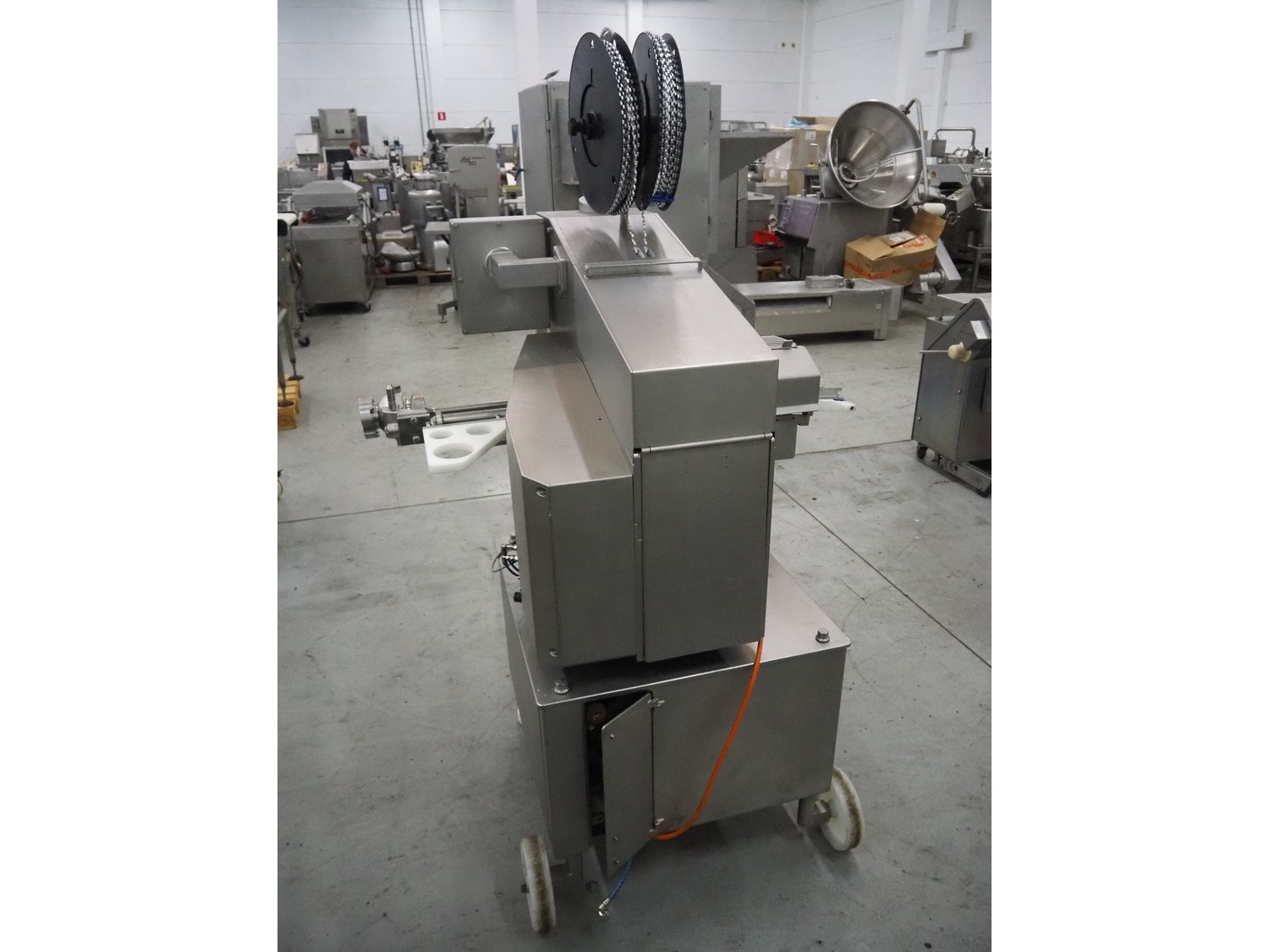 Poly-clip System GmbH & Co.KG mobile double automatic clipper, model: FCA, plastic belt, belt width: (2x) 75 mm, total dimensions: 1500 mm x 1200 mm x 2000 mm. Kavel locatie: Denariusstraat 20, 4903 RC Oosterhout, Nederland